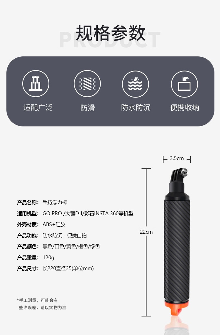 Aixia Gou GOPRO 스포츠 카메라 액세서리 다이빙 셀카 핸드 헬드 부양 스틱 워터 플로팅 로드 Dajiang 섀도우 스톤스토어 가기
