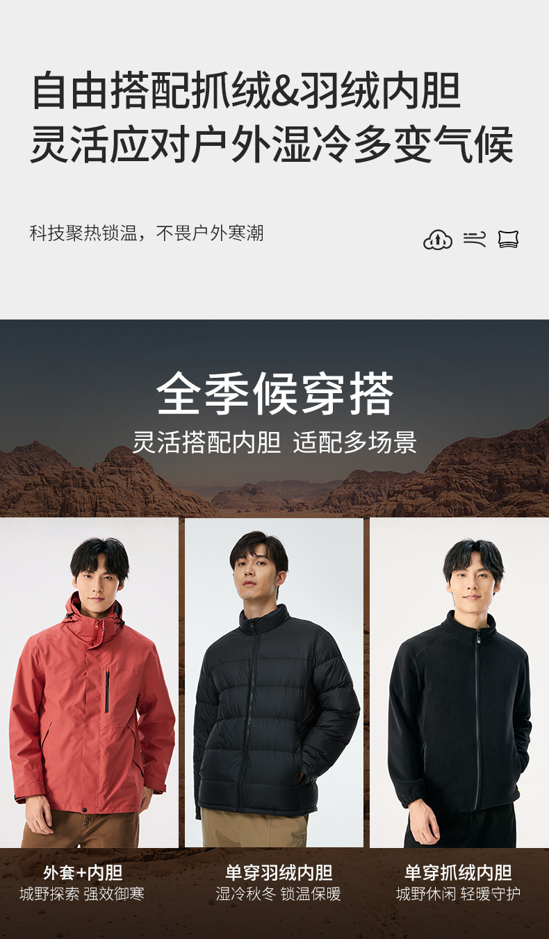 브랜드 같은 스타일 재킷 남성용 플리스 다운 라이너 3-in-1 0.05kg 피스 세트 여성용 등산복 작업복 맞춤형스토어 가기