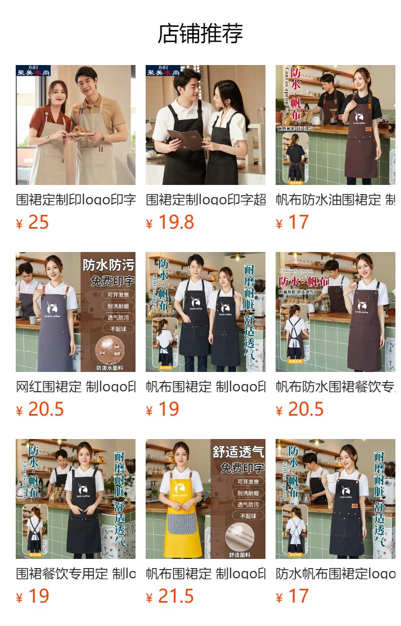 앞치마 커스텀 로고 케이터링 핫 팟 커피 숍 웨이터 작업 옷 인쇄 슈퍼마켓 밀크 티 여름 여성 허리스토어 가기