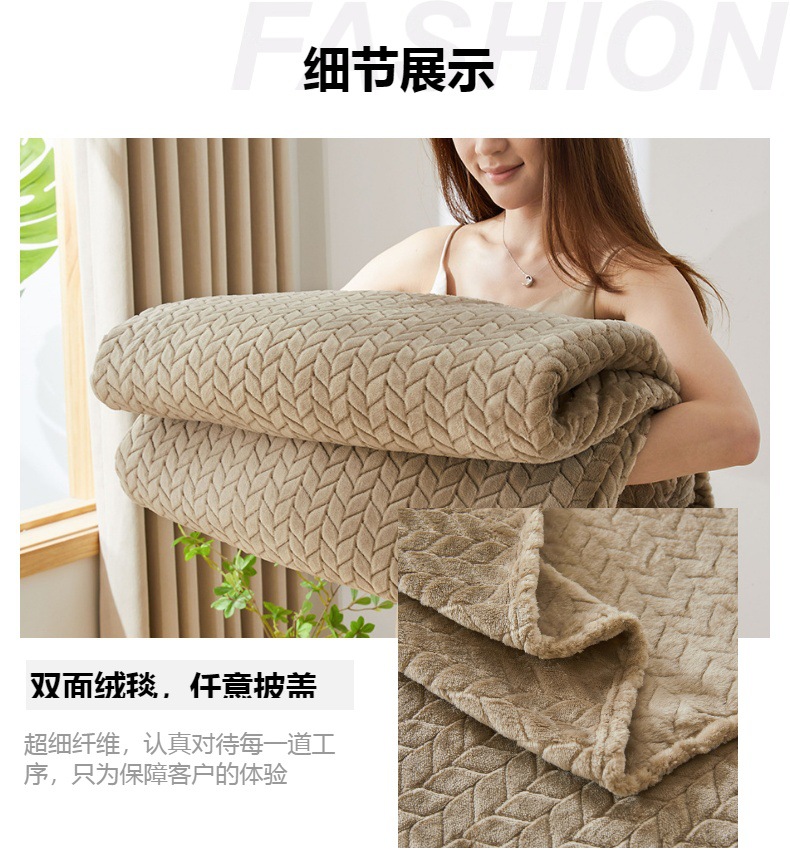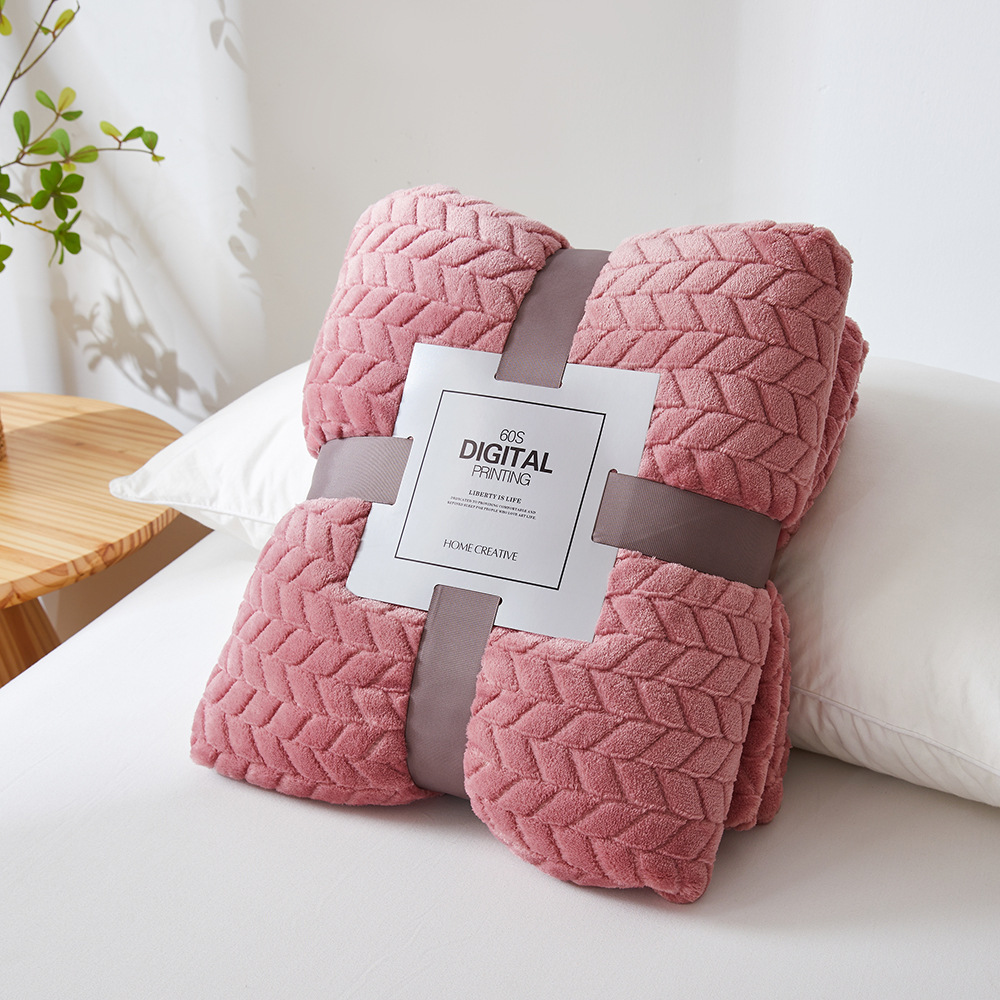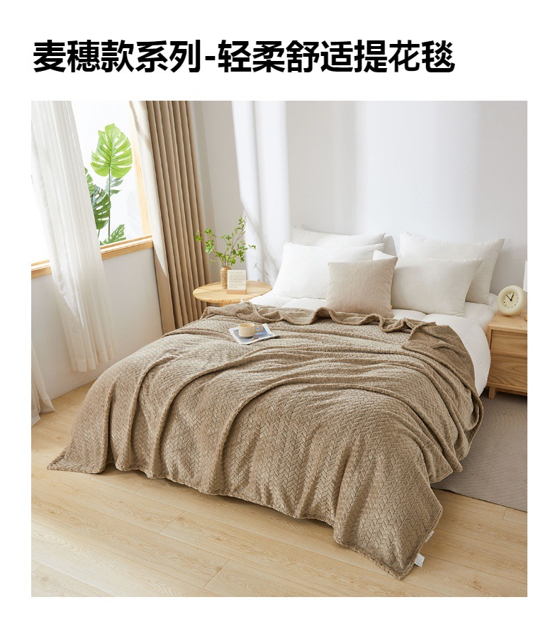 보리 귀 국경 간 재고 단색 자카드 담요 산호 양털 담요 두꺼운 담요 선물 담요 대외 무역스토어 가기