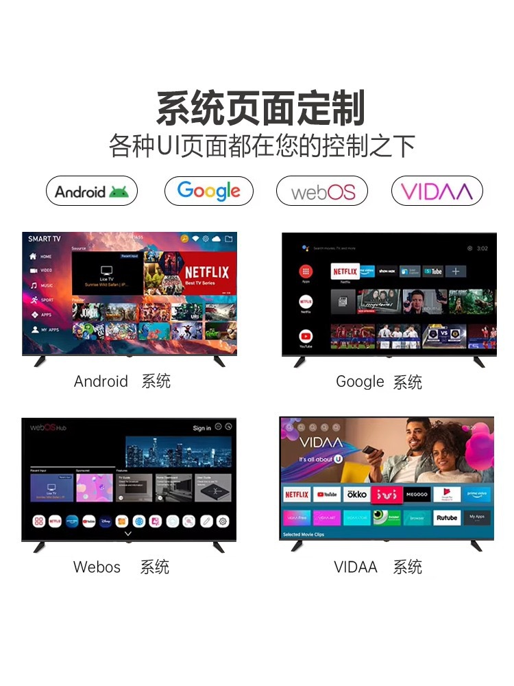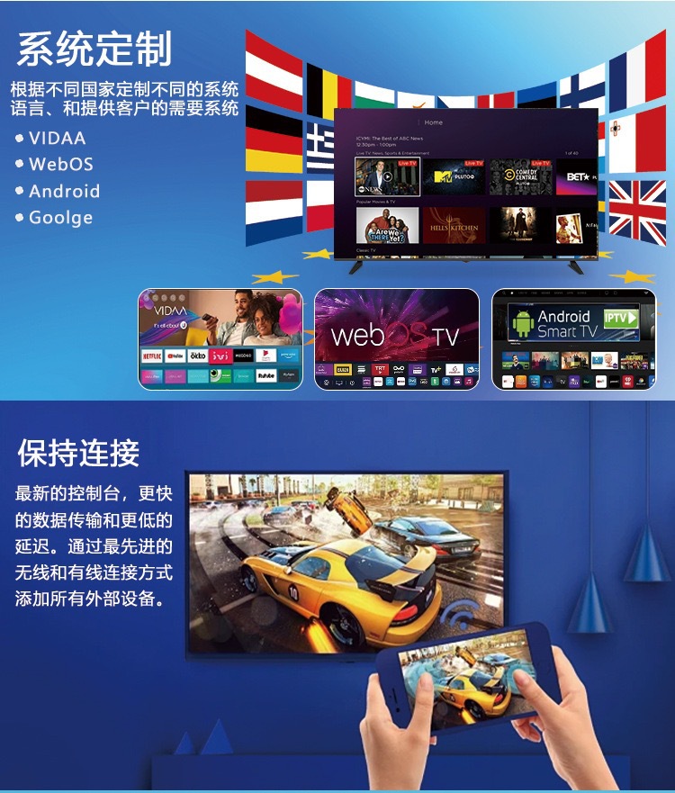 외국어 버전 TV 도매 50/55/65/75/ 85inch 스마트 고화질 풀스크린 초박형 방폭 TV스토어 가기