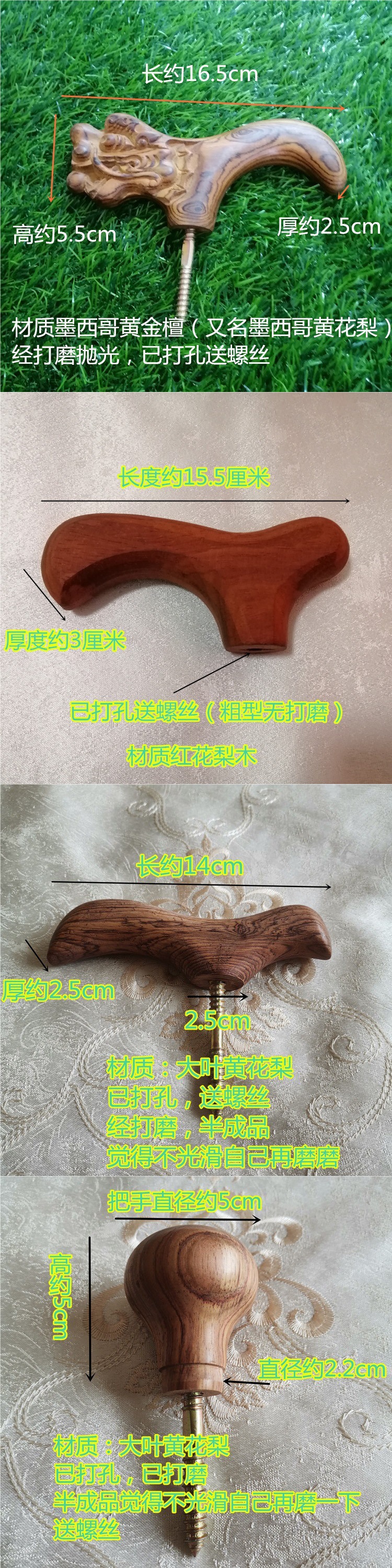 • 황금 백단 손잡이 나무 15*5*2.5cm