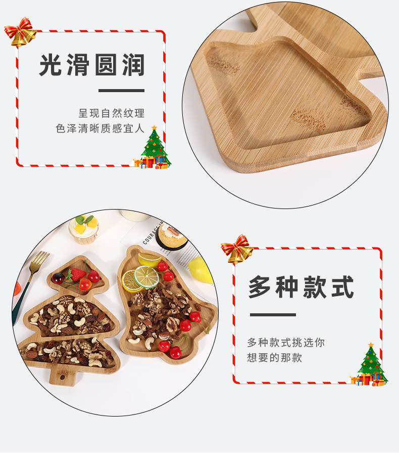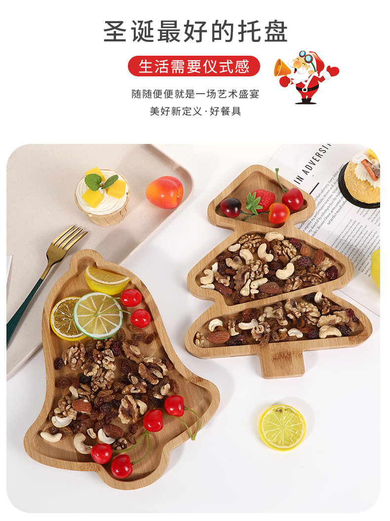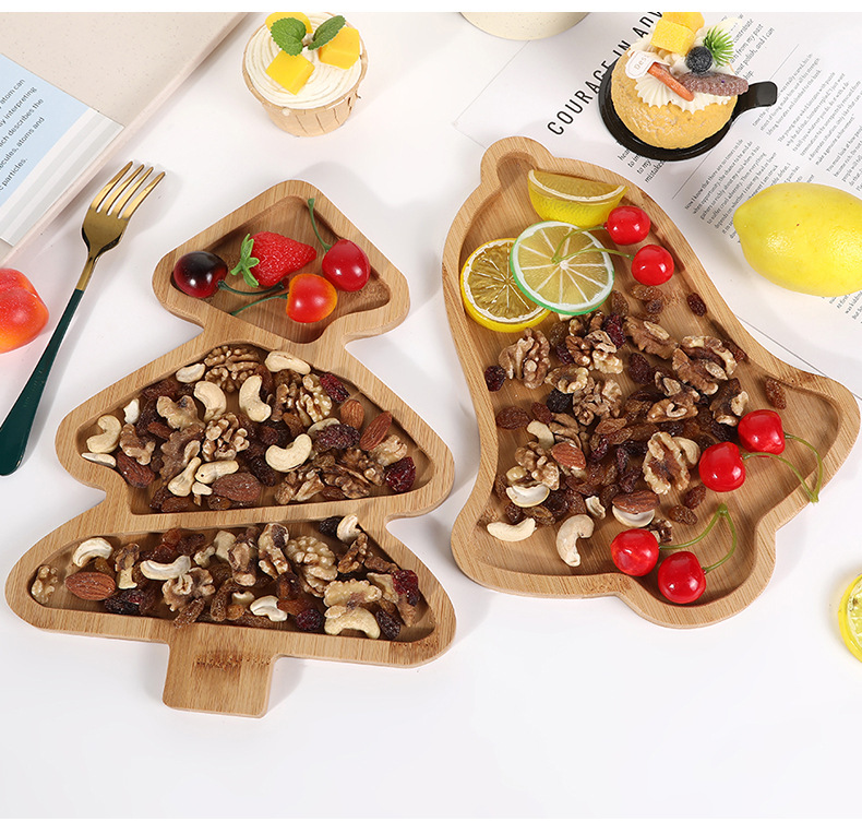 귀여운 크리스마스 트리 모양의 나무로 만든 칸막이 장식품 테마 파티 식기 레스토랑 디저트 과일 간식 트레이
