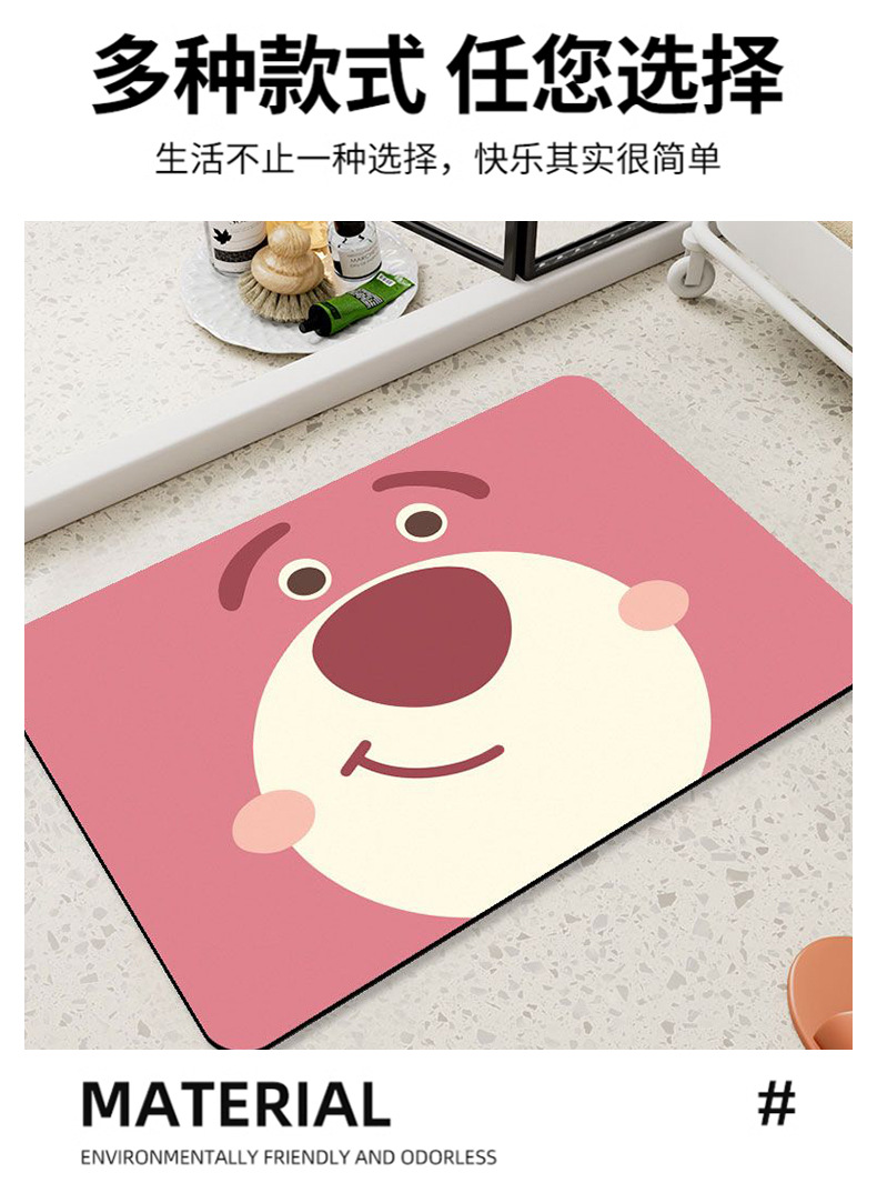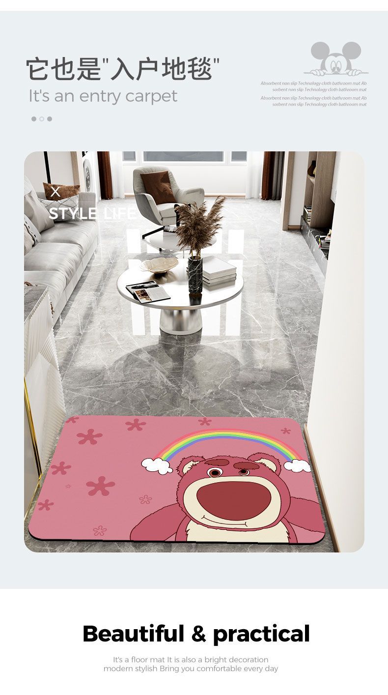 만화 Diatom Mud Upholered 변기 물 흡수 바닥 매트 욕실 문 미끄럼 방지 발 매트 착용 방지 도어 매트스토어 가기