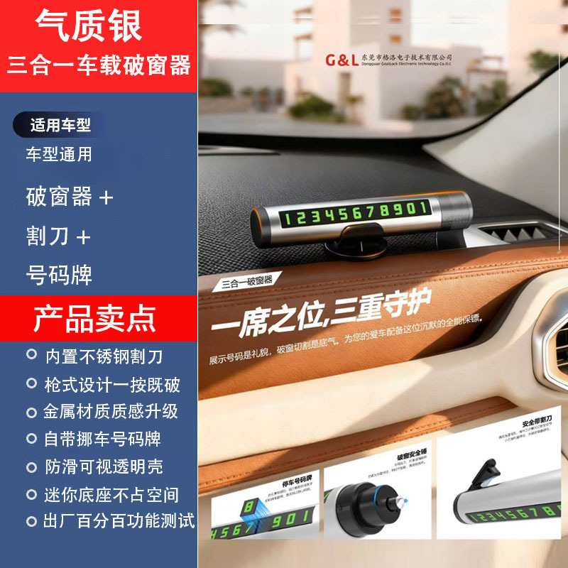 • 업그레이드된 3-in-1(기질 실버 합금) 창문 망치 + 커터 + 차량 이동 번호판)