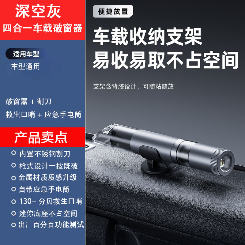 • 업그레이드된 4-in-1(딥 스페이스 그레이 합금) 창문 망치 + 커터 + 손전등 + 구조 호루라기