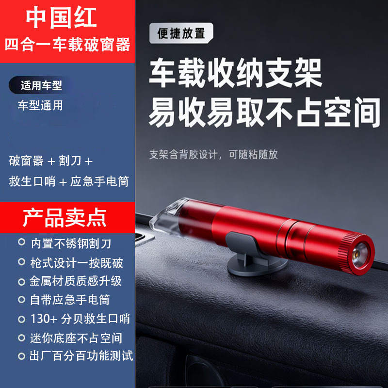 • 업그레이드된 4-in-1(중국 레드 합금) 창문 망치 + 커터 + 손전등 + 구조 호루라기