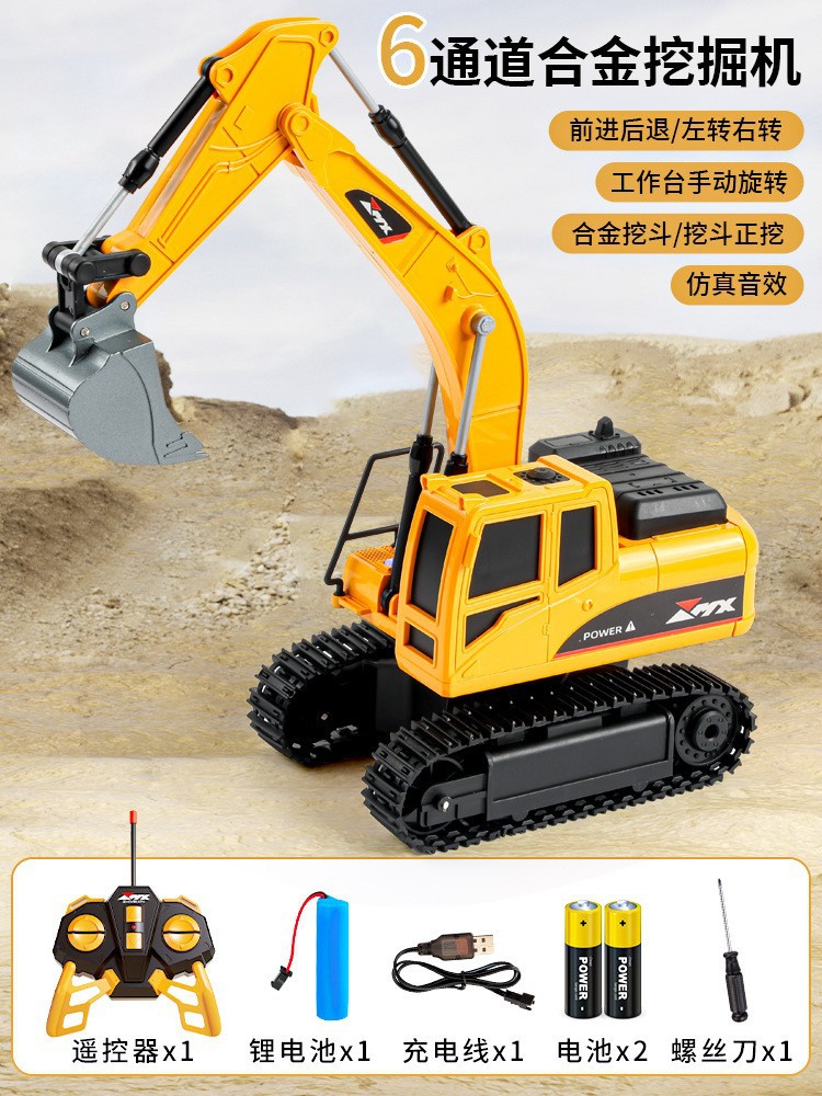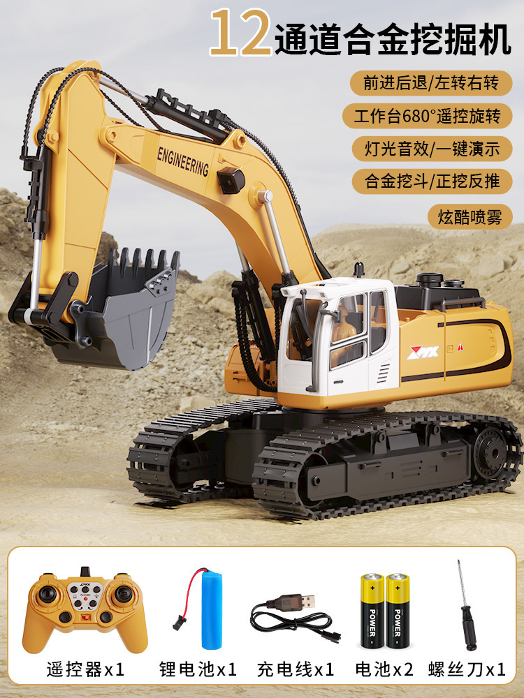 어린이 대형 원격 제어 굴삭기 합금 충전식 전기 장난감 엔지니어링 자동차 파는 자동차 야외 소년 장난감