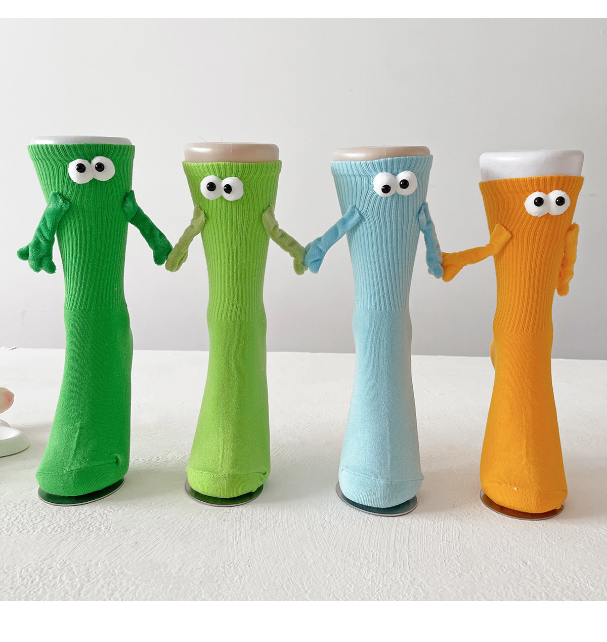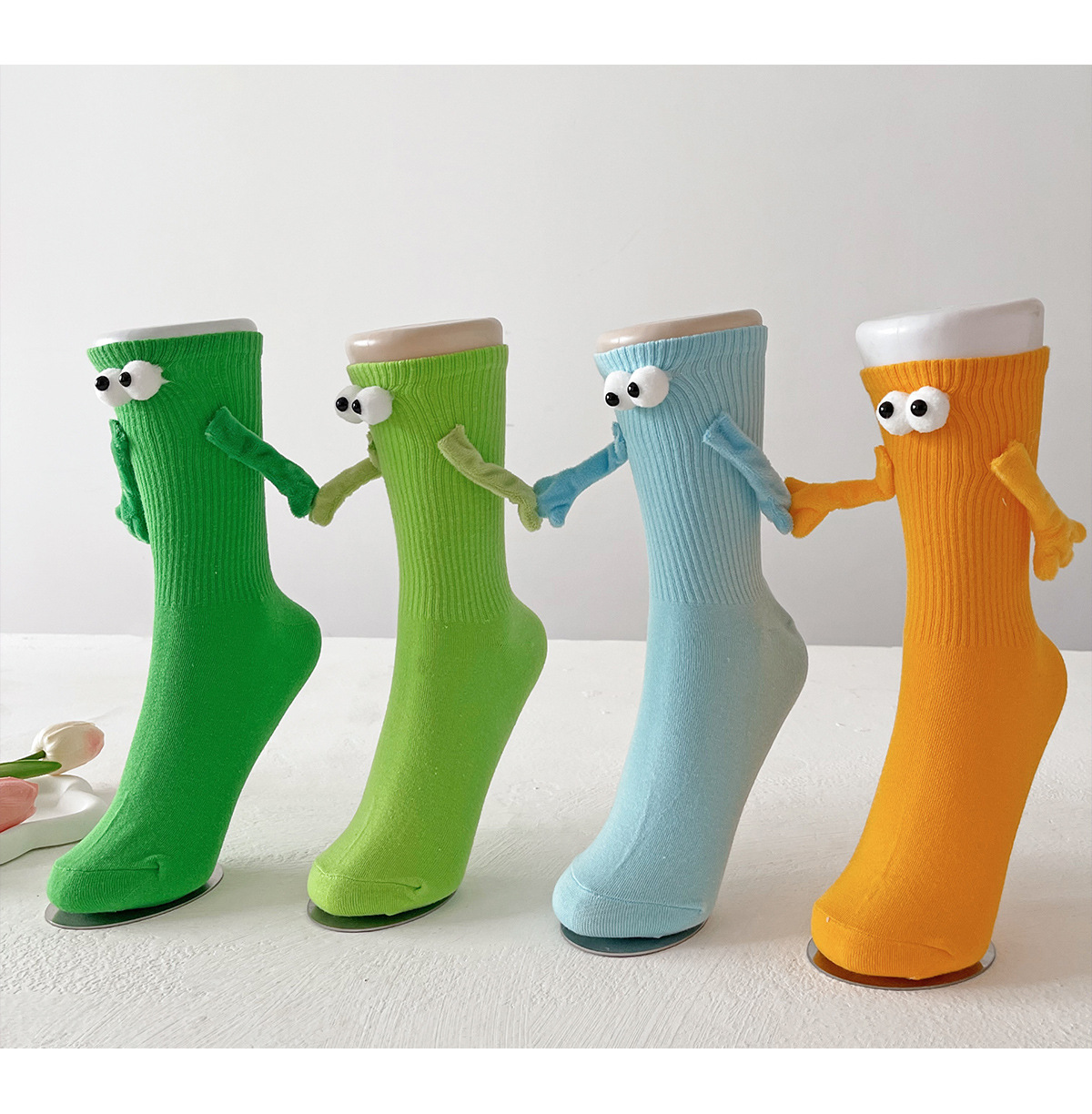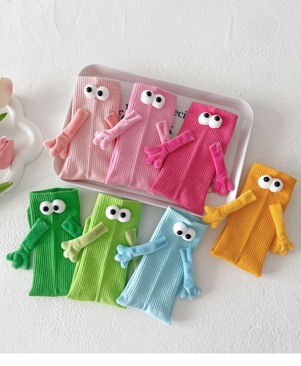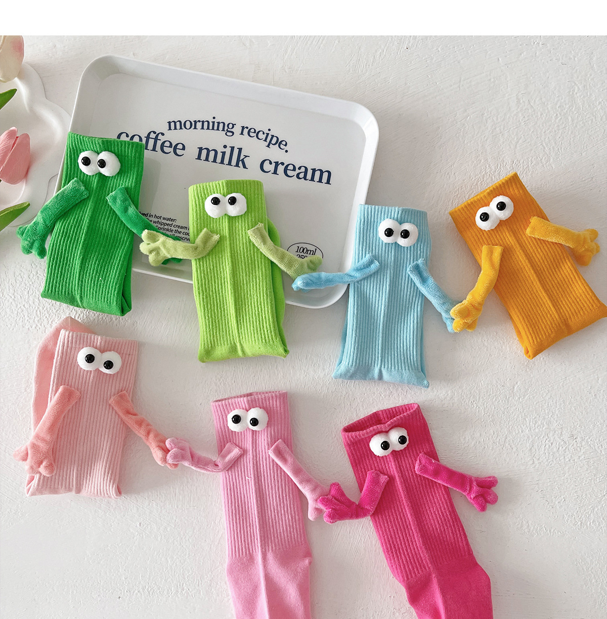 도파민 캔디 컬러 커플 손을 잡고 자기 흡입 손잡이 중간 길이 양말 여성용 핑크 귀여운 매력적인 스택스토어 가기