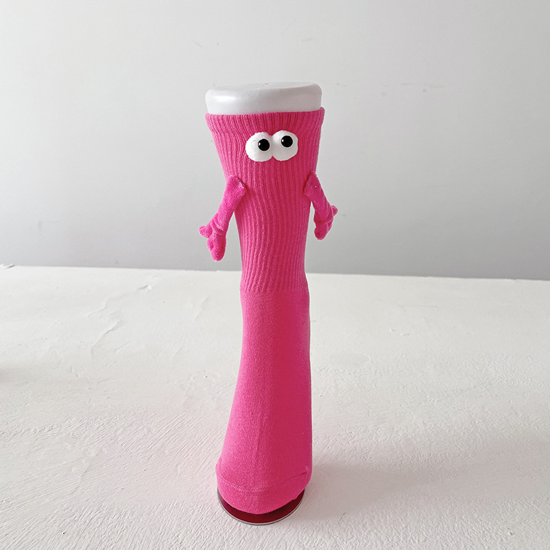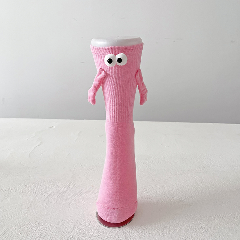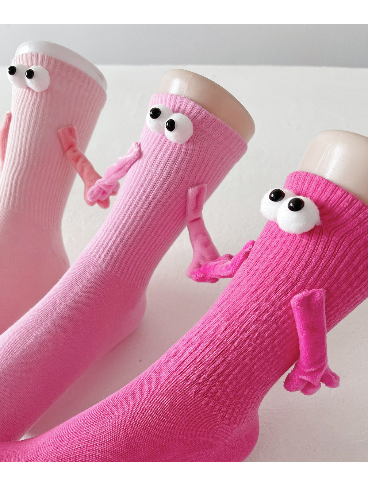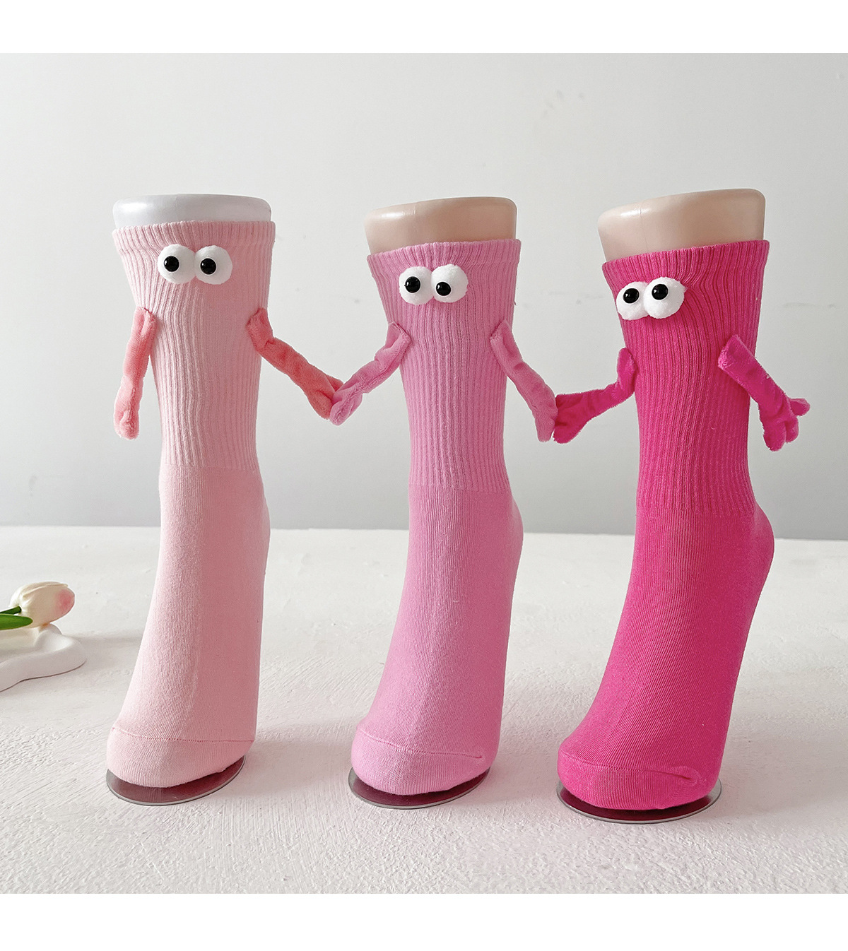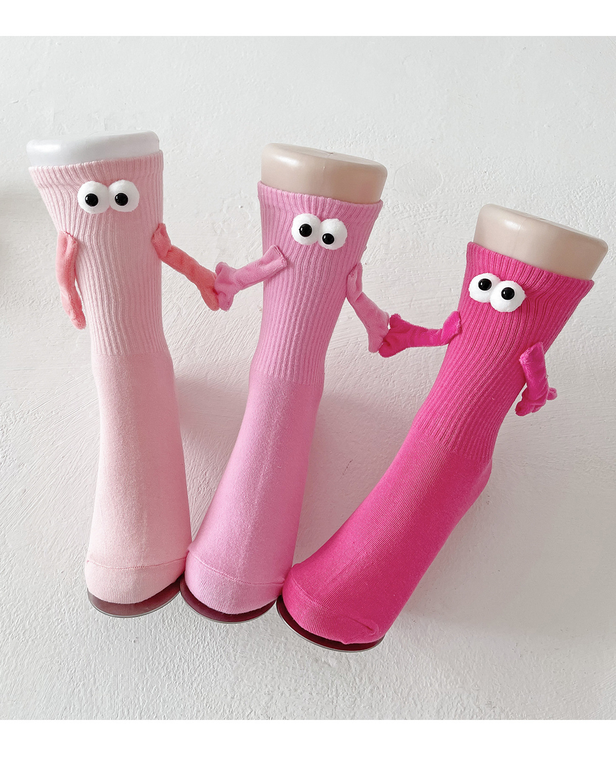 도파민 캔디 컬러 커플 손을 잡고 자기 흡입 손잡이 중간 길이 양말 여성용 핑크 귀여운 매력적인 스택