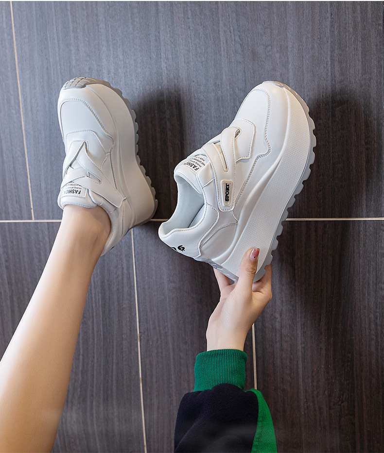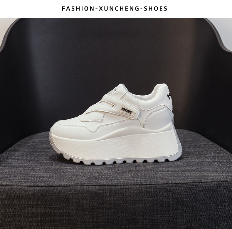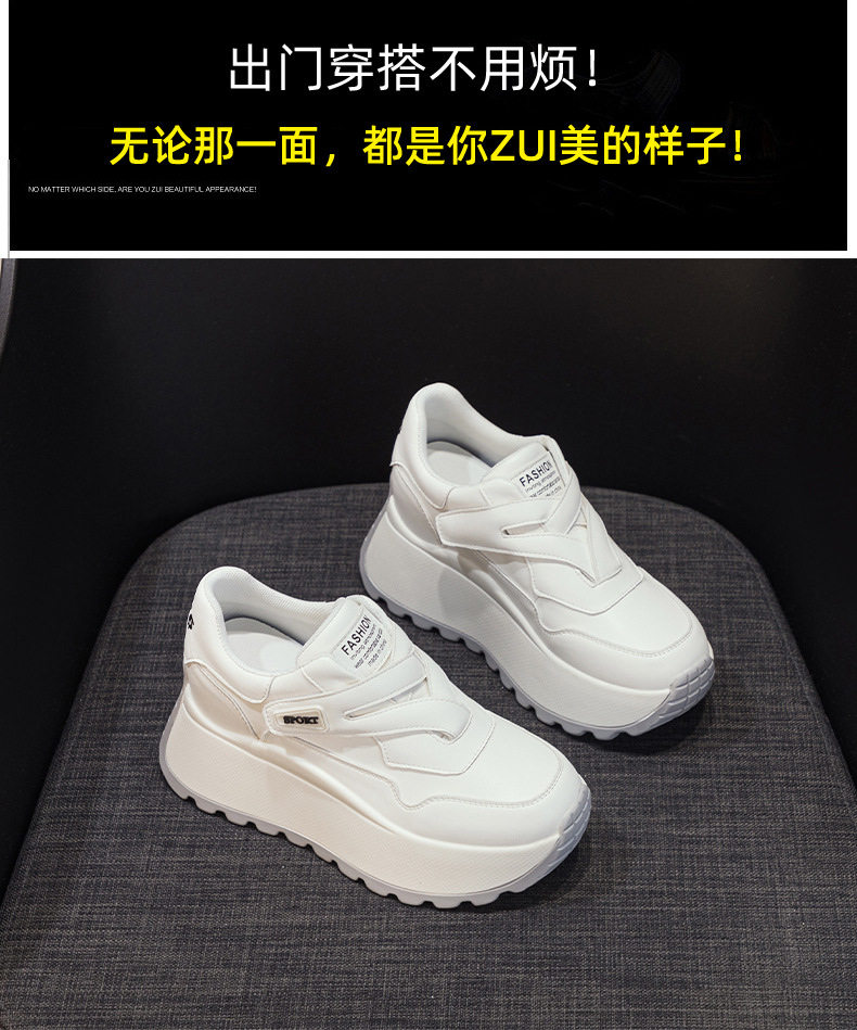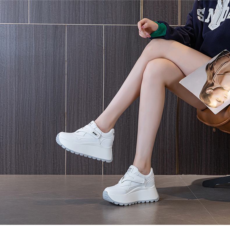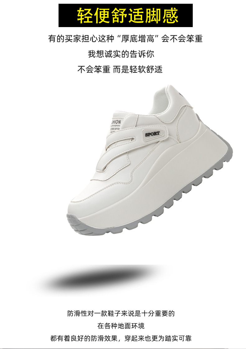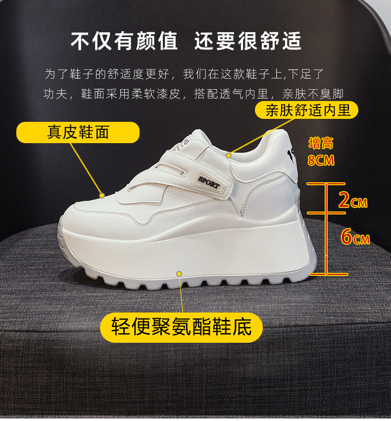 가을 2024 새로운 8cm 머핀 두꺼운 바닥 증가 여성 신발 한국식 다용도 라운드 헤드 캐주얼 작은 흰색 신발 여성 패션스토어 가기