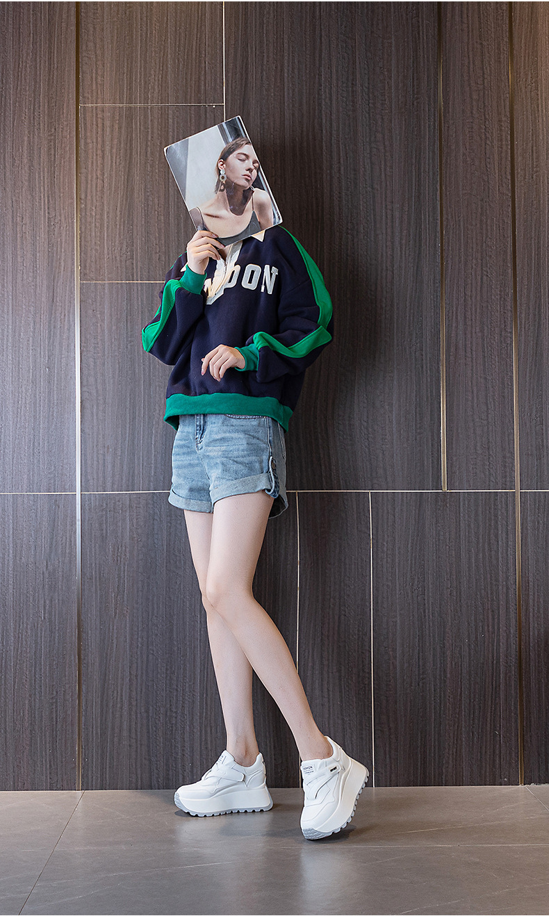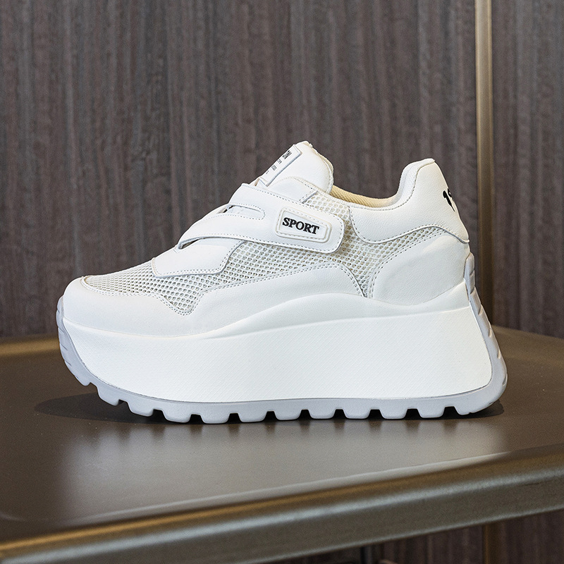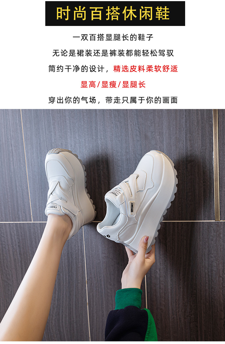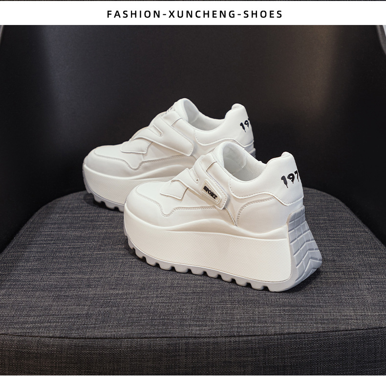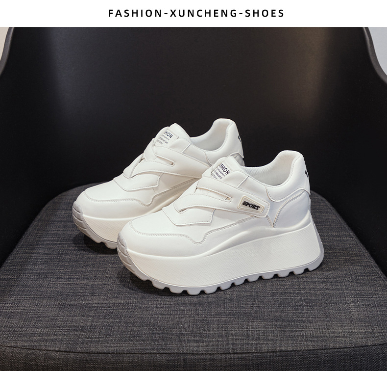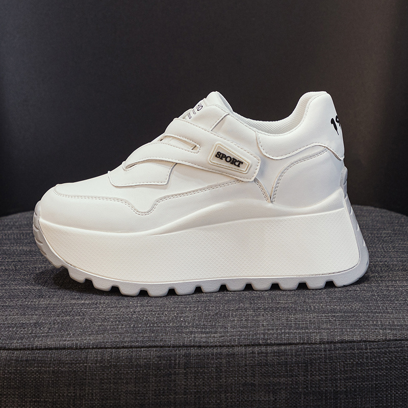 가을 2024 새로운 8cm 머핀 두꺼운 바닥 증가 여성 신발 한국식 다용도 라운드 헤드 캐주얼 작은 흰색 신발 여성 패션스토어 가기