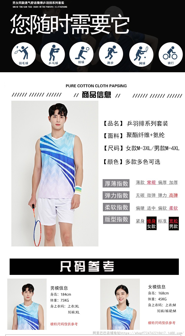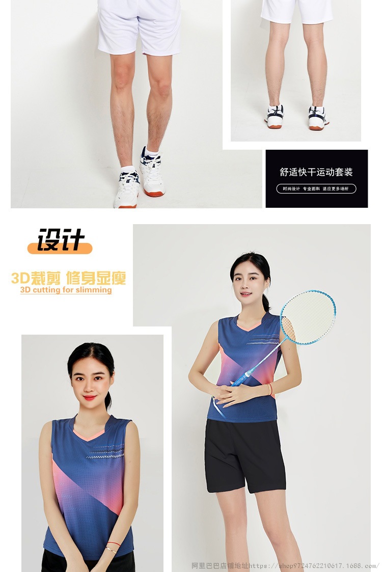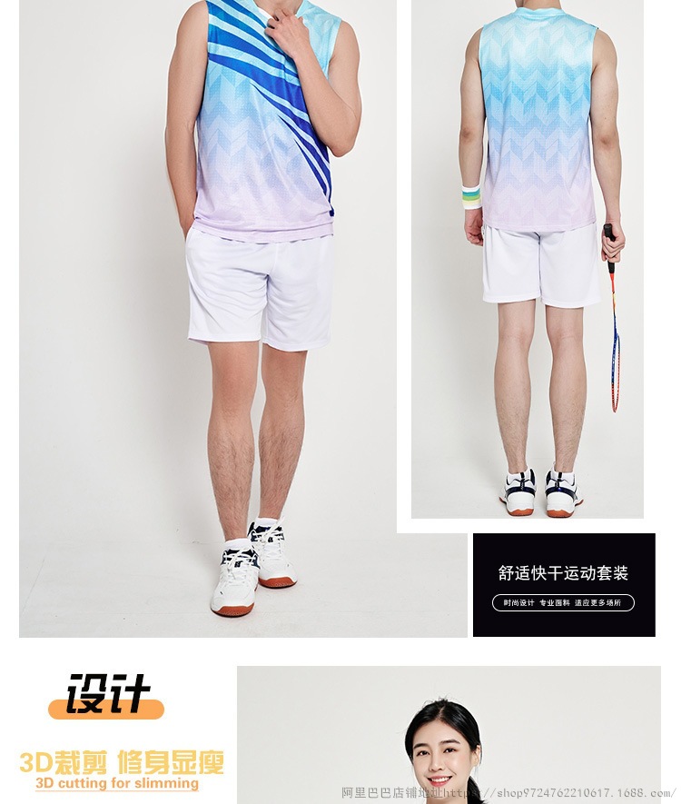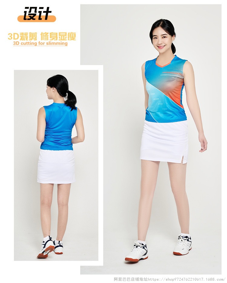 배드민턴 의류 세트 남자와 여자 여름 민소매 티셔츠 V-넥 훈련 빠른 건조 탁구 의류 배구 셔츠 스커트 바지스토어 가기