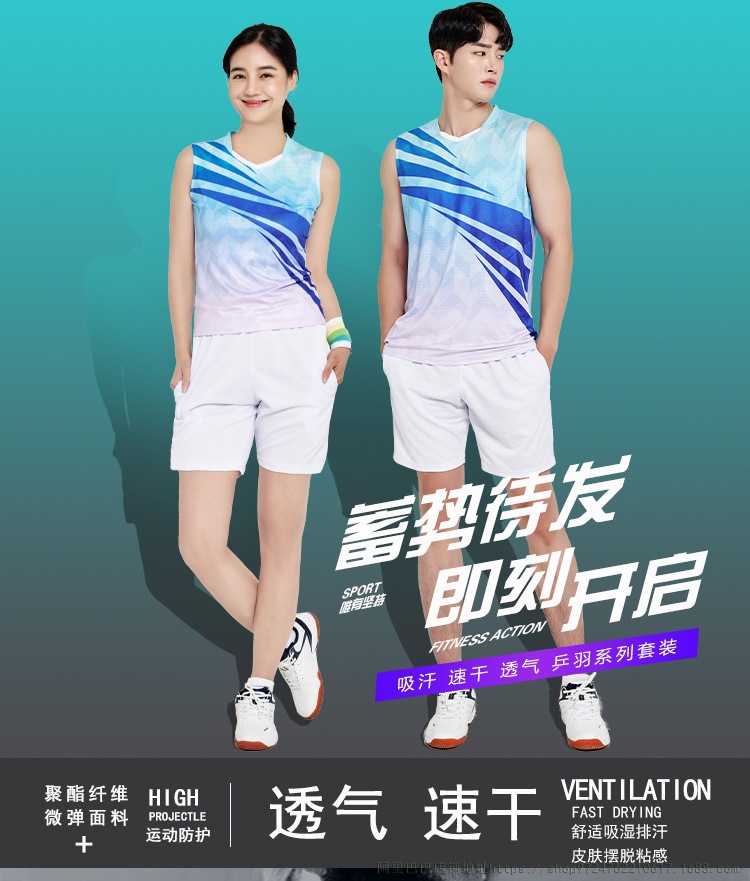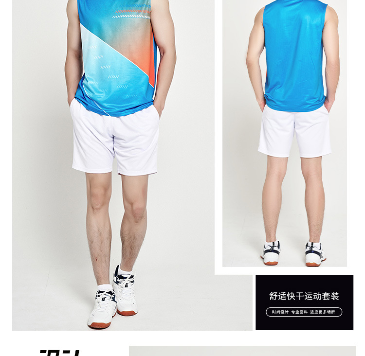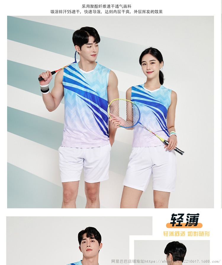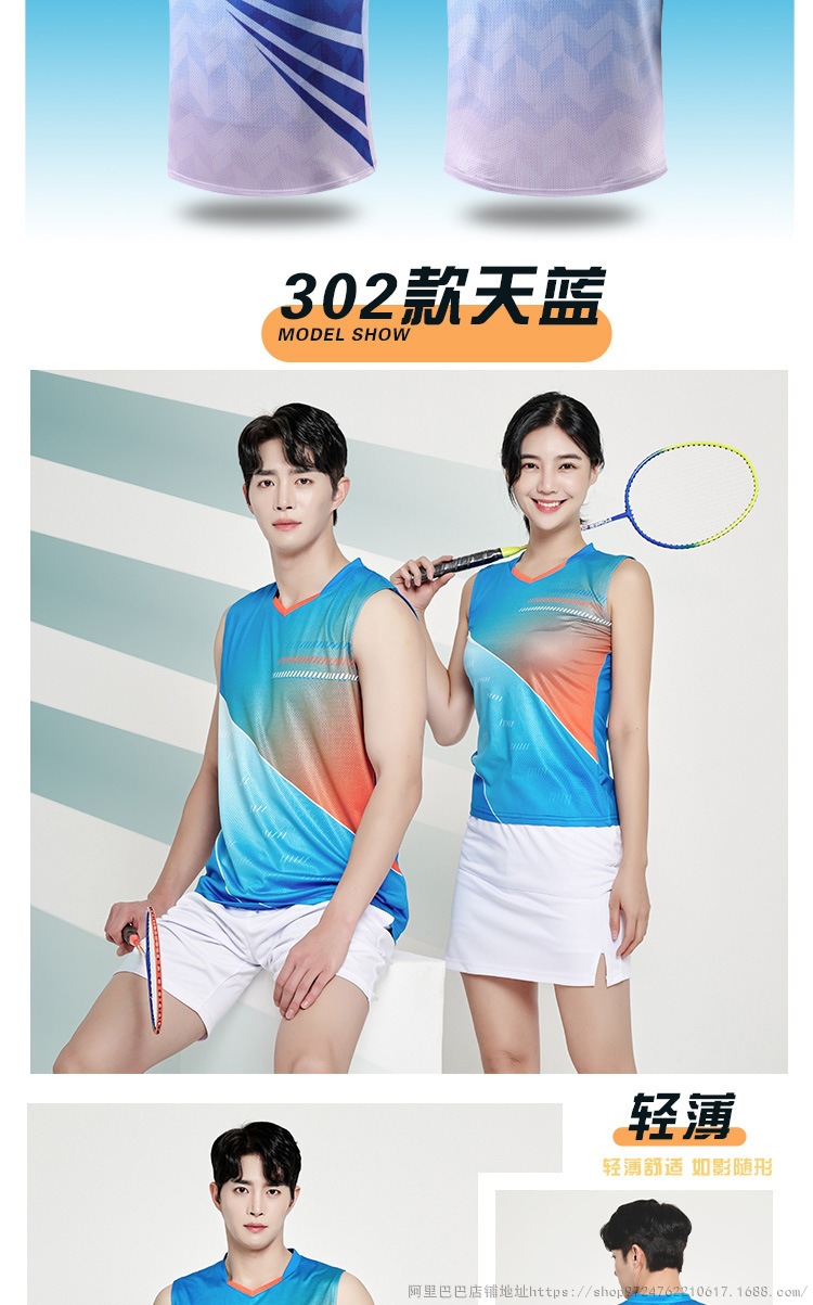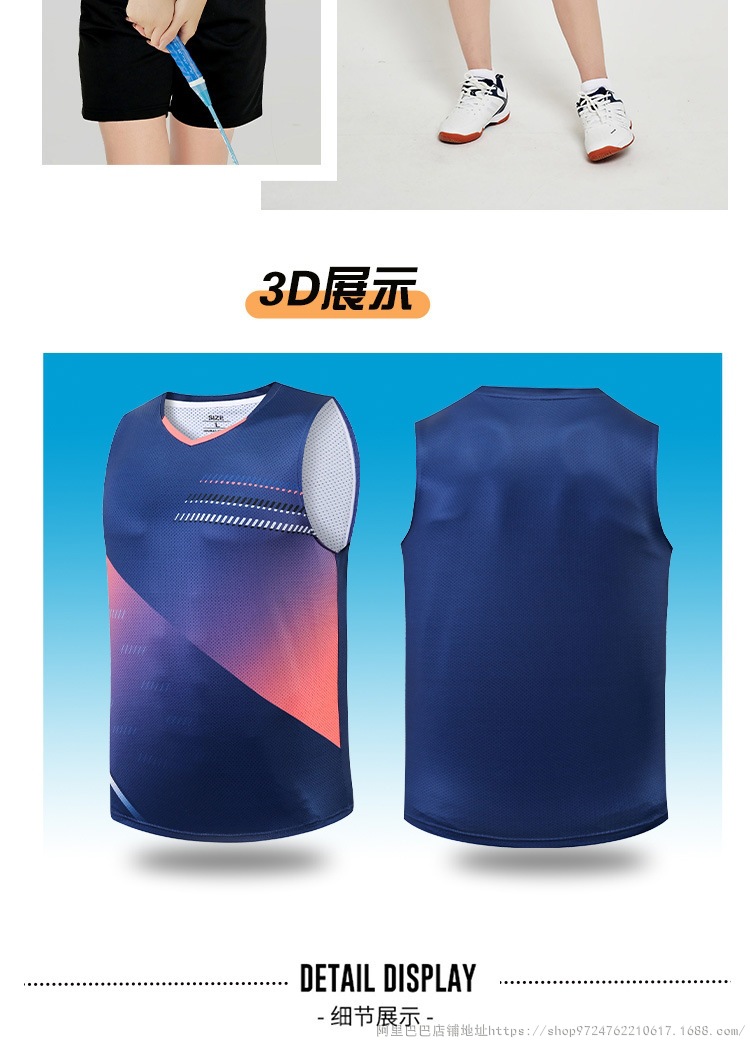 배드민턴 의류 세트 남자와 여자 여름 민소매 티셔츠 V-넥 훈련 빠른 건조 탁구 의류 배구 셔츠 스커트 바지스토어 가기
