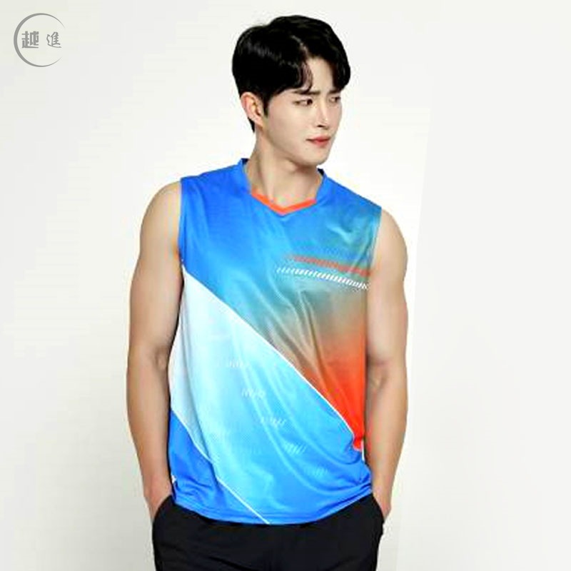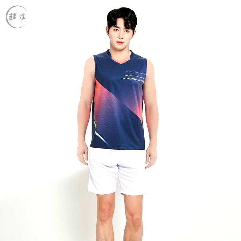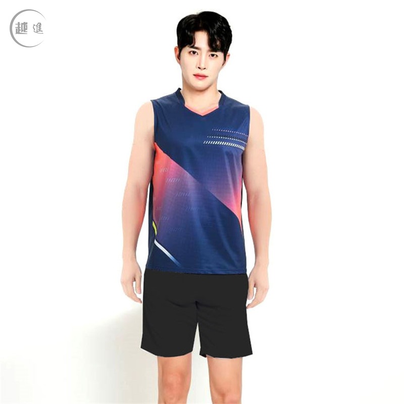배드민턴 의류 세트 남자와 여자 여름 민소매 티셔츠 V-넥 훈련 빠른 건조 탁구 의류 배구 셔츠 스커트 바지