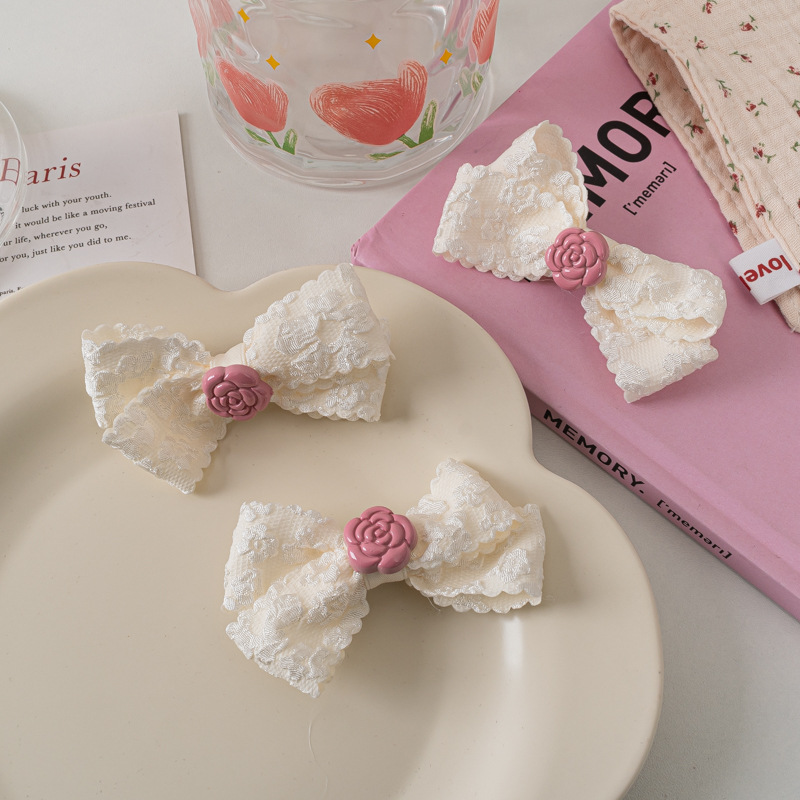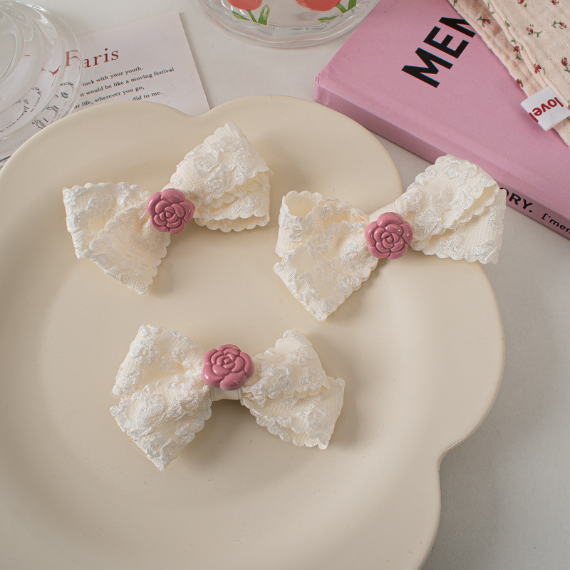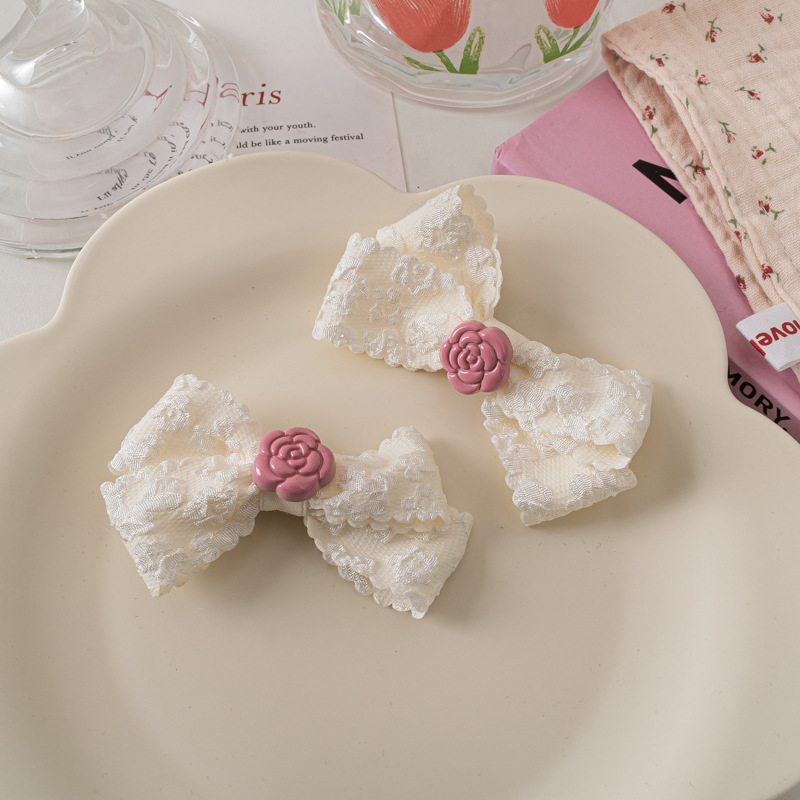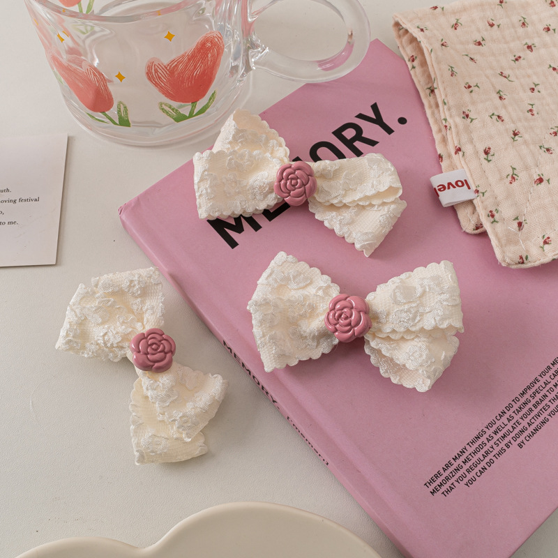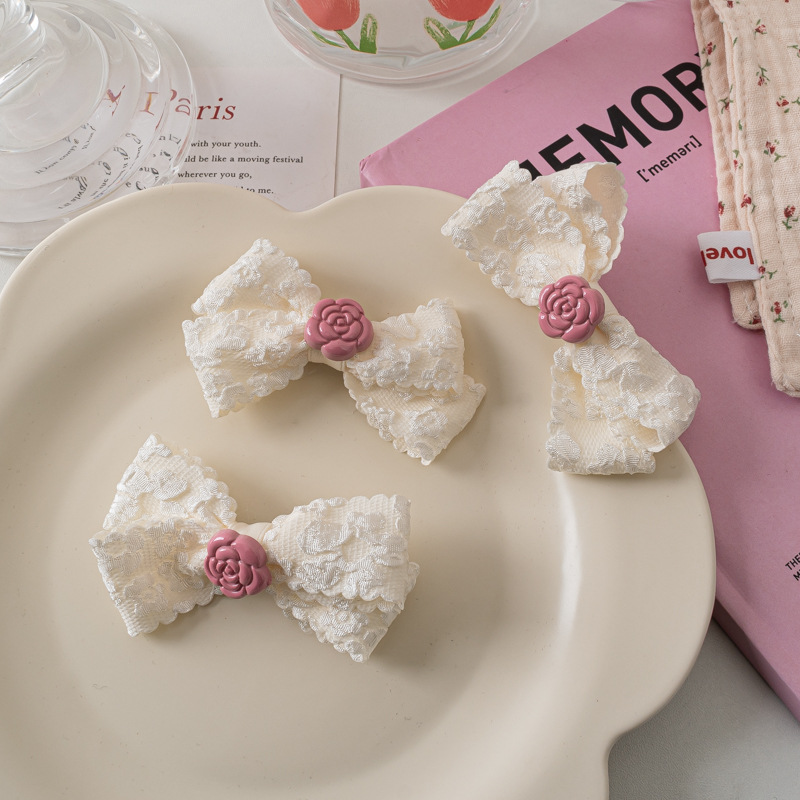 레이스 활 헤어핀 달콤한 핑크 동백 Bangs 클립 사이드 클립 한국식 꽃 헤어핀 헤어 액세서리