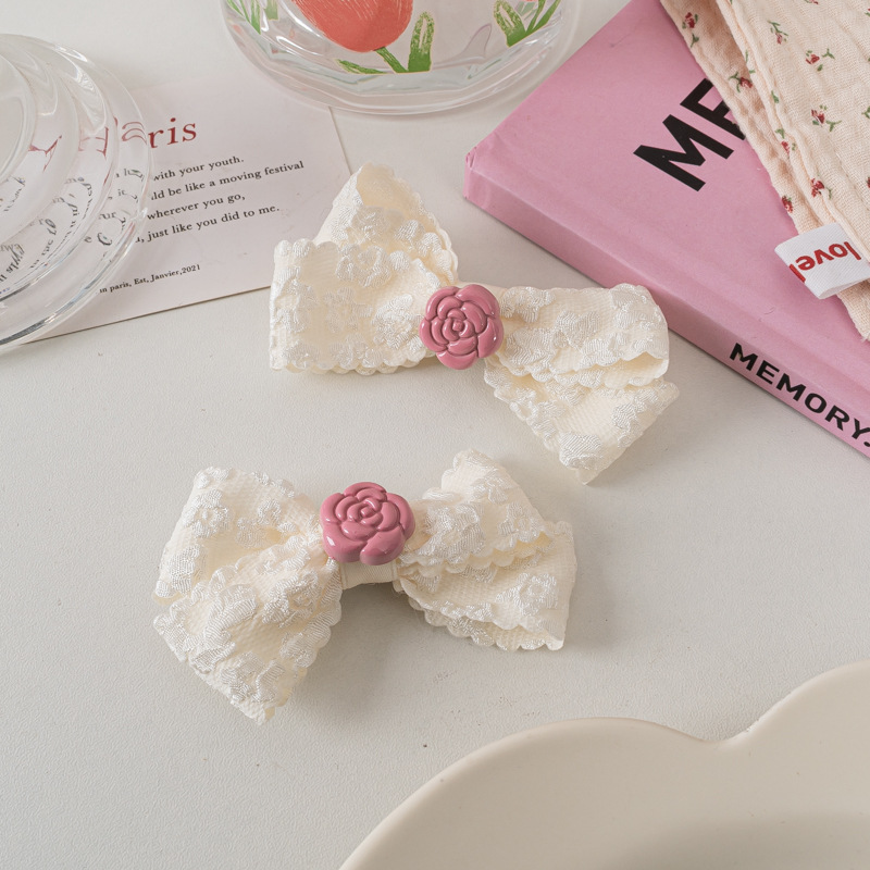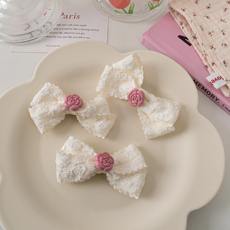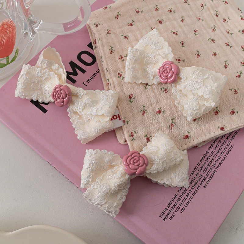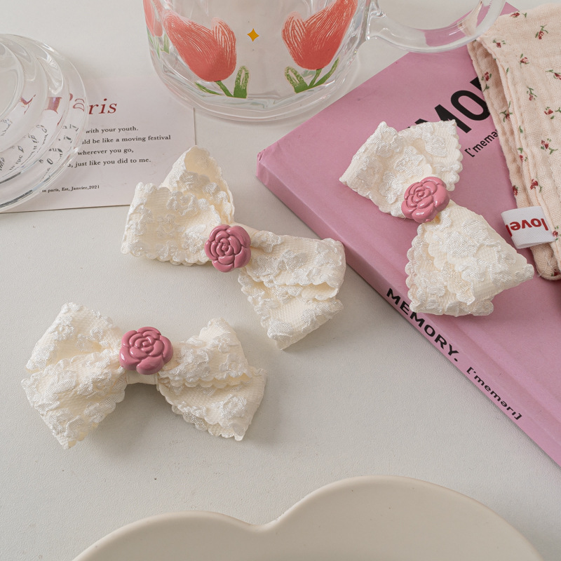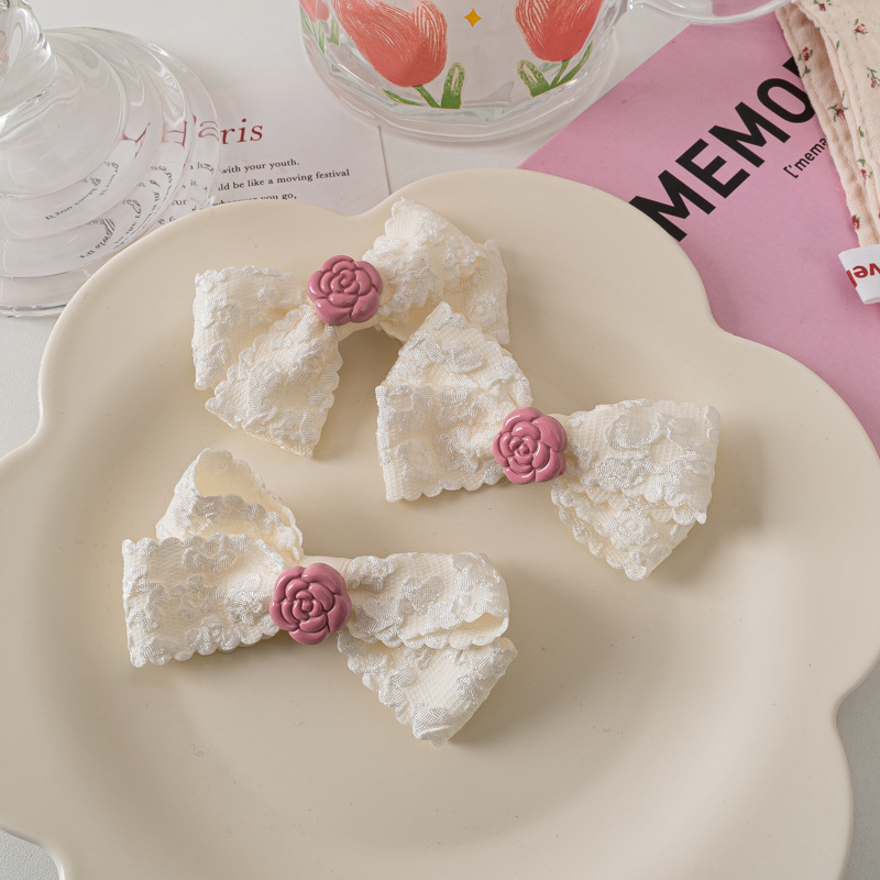 레이스 활 헤어핀 달콤한 핑크 동백 Bangs 클립 사이드 클립 한국식 꽃 헤어핀 헤어 액세서리