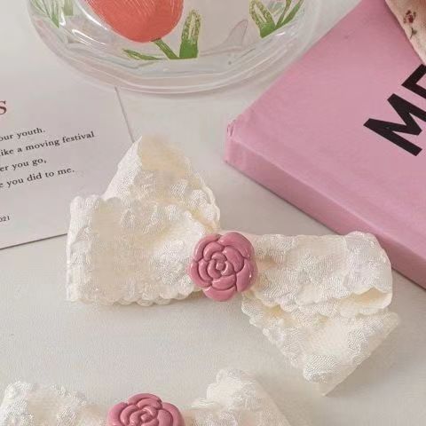레이스 활 헤어핀 달콤한 핑크 동백 Bangs 클립 사이드 클립 한국식 꽃 헤어핀 헤어 액세서리스토어 가기