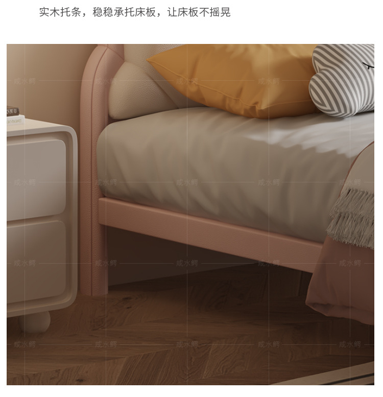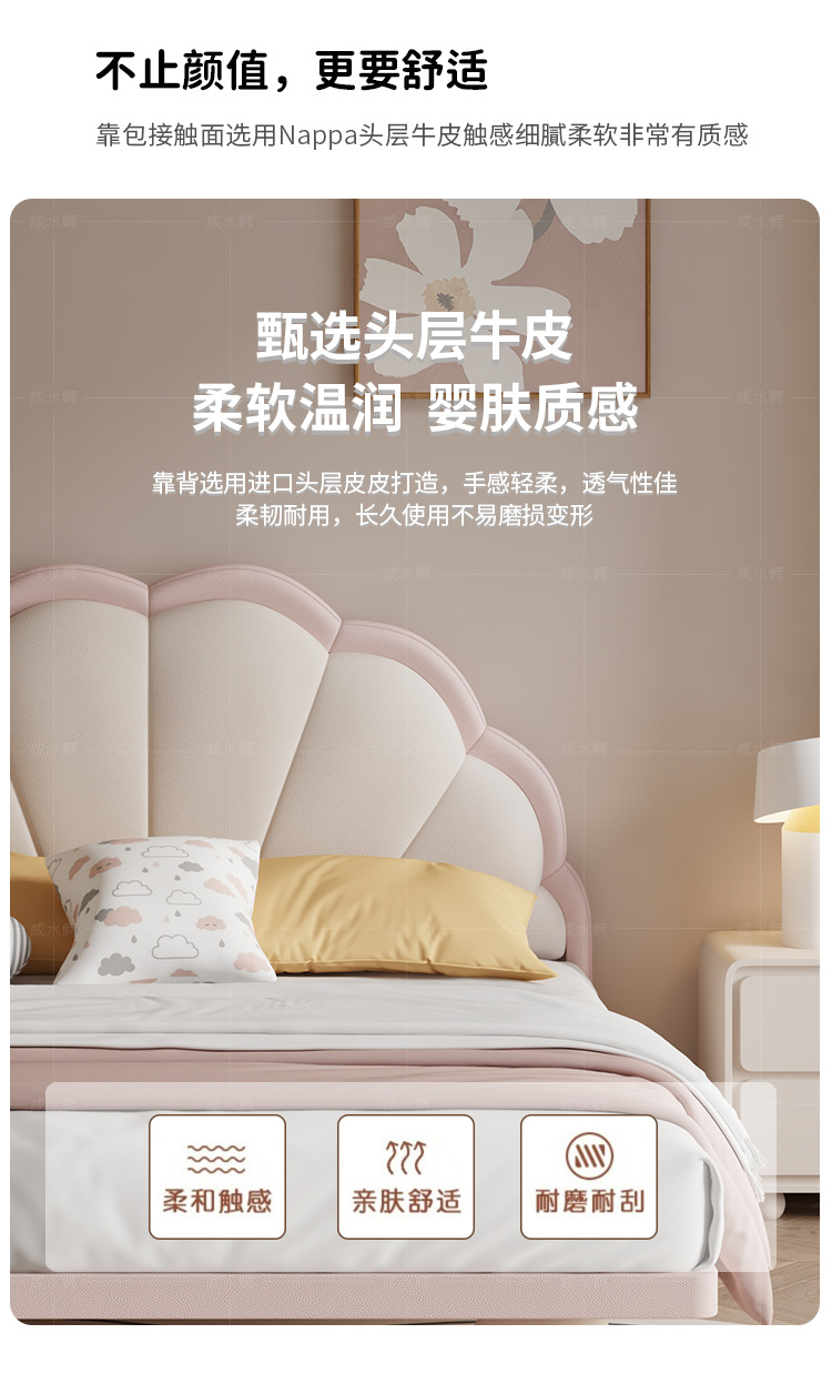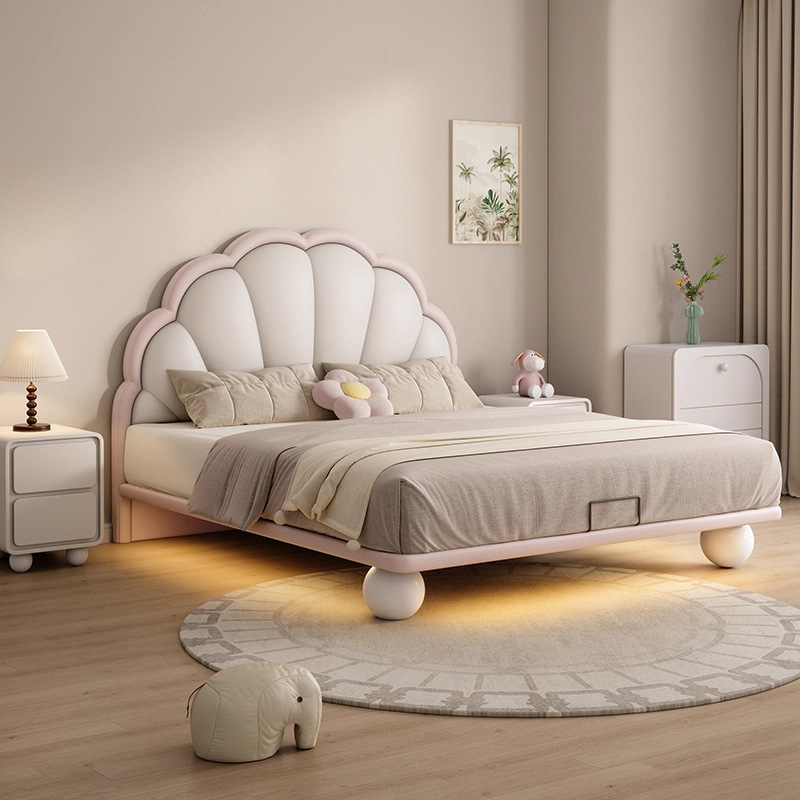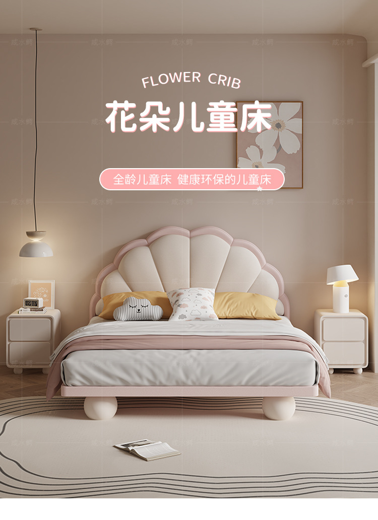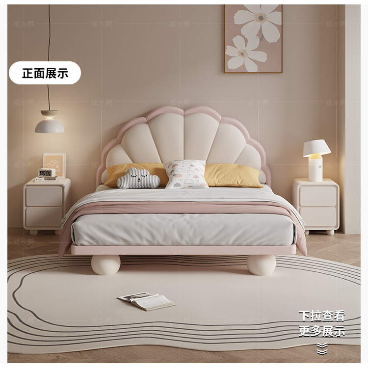 크림 바람 어린이 침대 소녀 공주 침대 그물 빨간 소녀 침대 단단한 나무 꽃잎 침대 1.5 미터 부드러운 가방 침대 가죽 침대스토어 가기