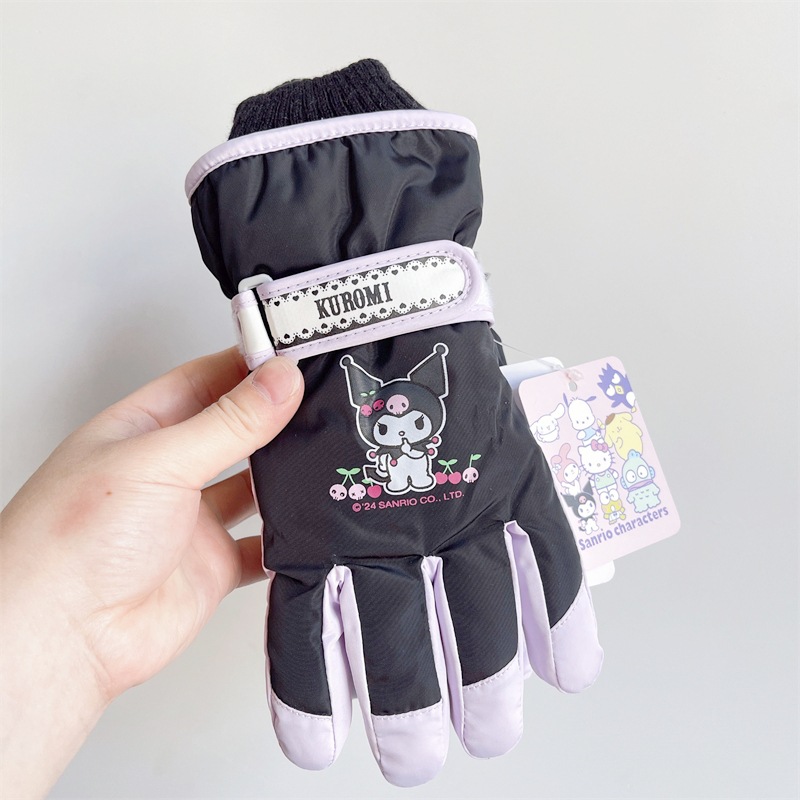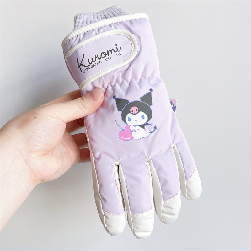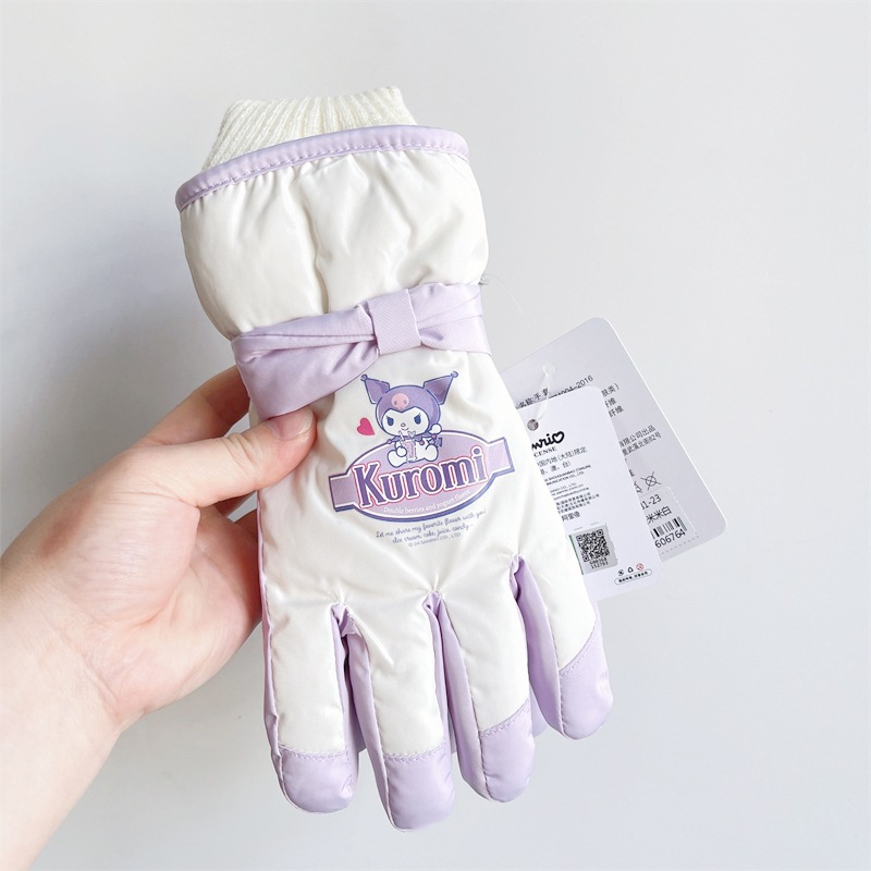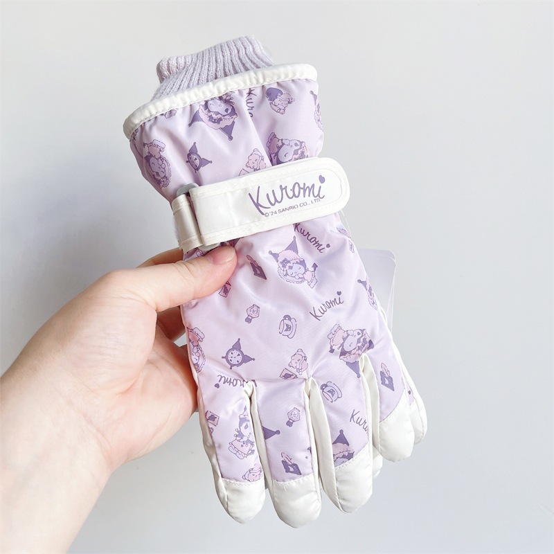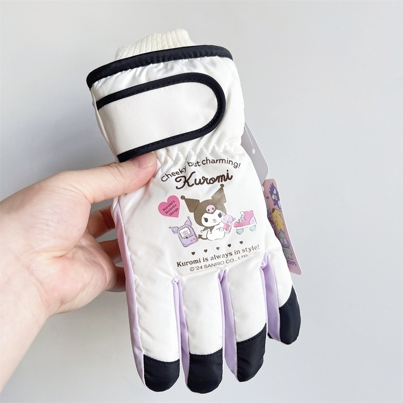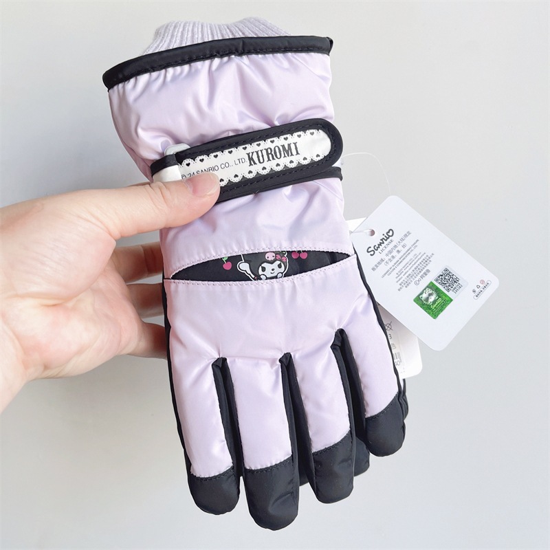 정품 Sanrio Kulomi 어린이 스키 장갑 겨울 따뜻한 한랭 기모 두꺼운 놀이 눈 방수스토어 가기