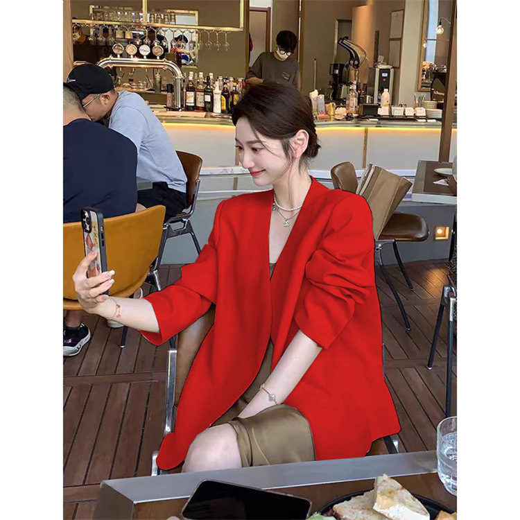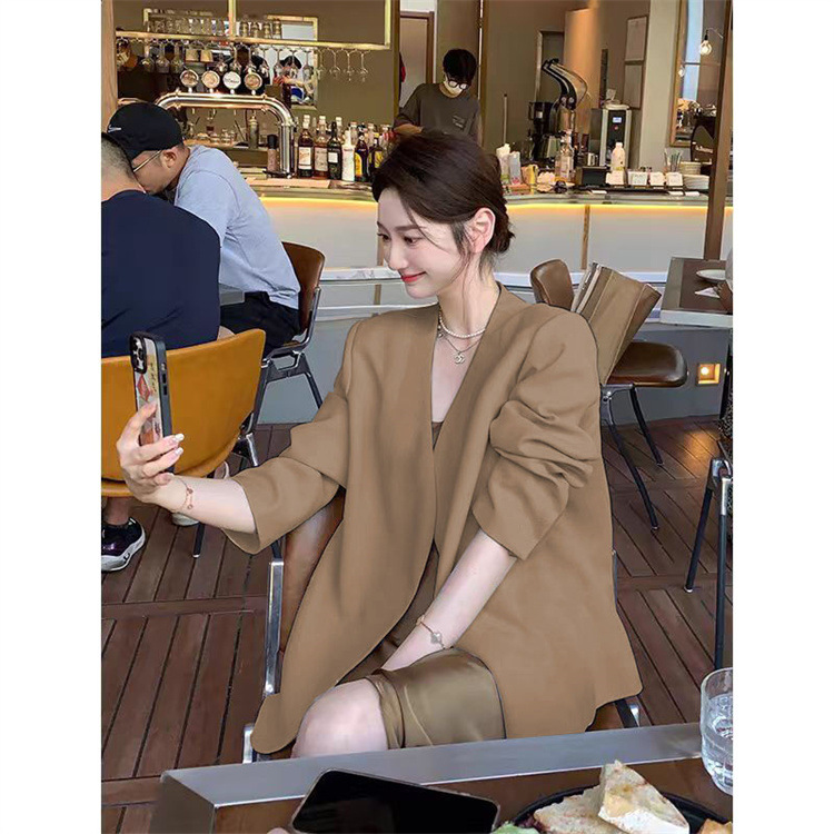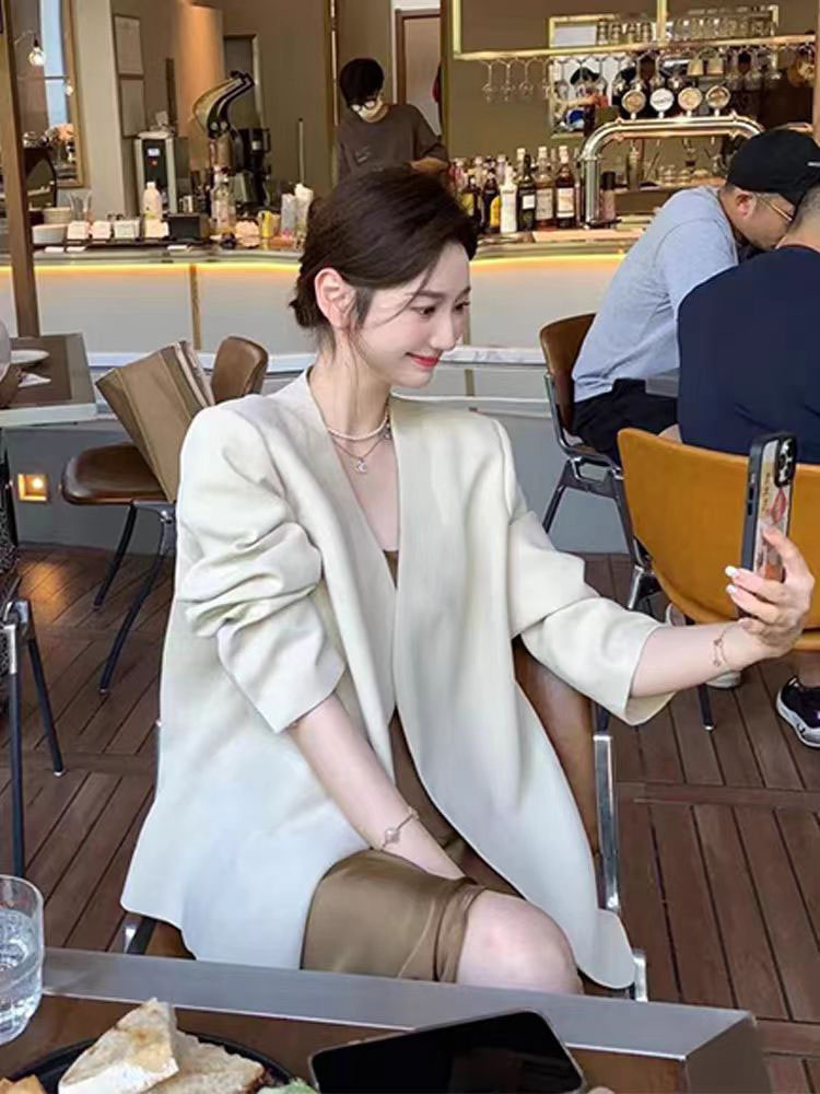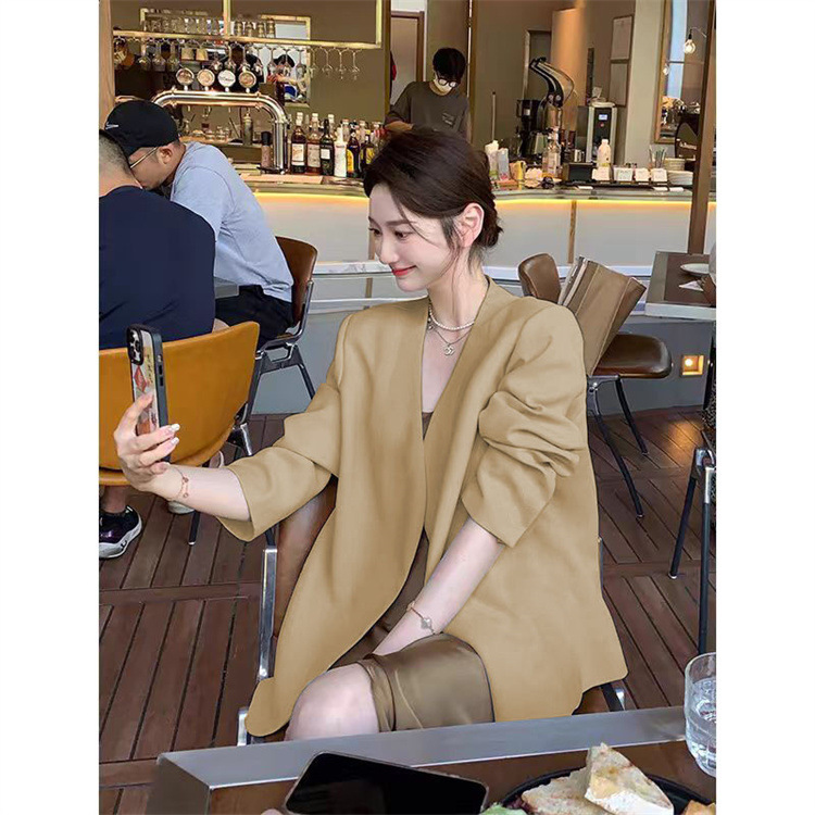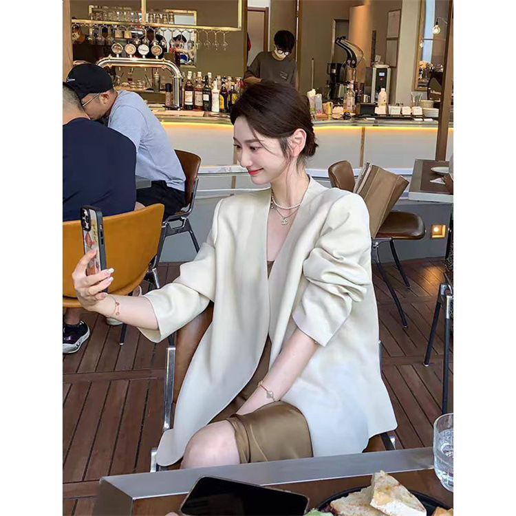 2026 봄 가을 신상 여성용 작은 정장 재킷 여성 긴팔 캐주얼 베이지색 정장 한국 스타일 상의스토어 가기