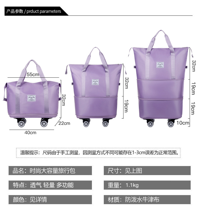 2025년 새로운 슬라이딩 휠이 있는 여행 가방, 건식 및 습식 분리 확장형 휴대용 수하물 가방, 여성용 단거리 하이킹 탑승 가방