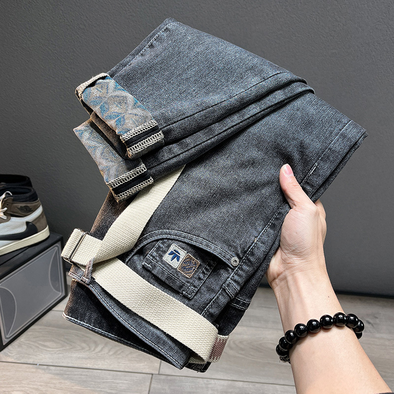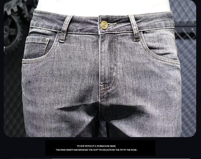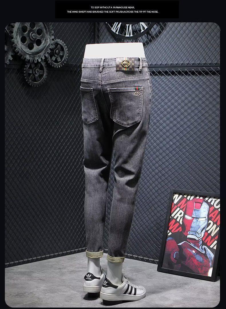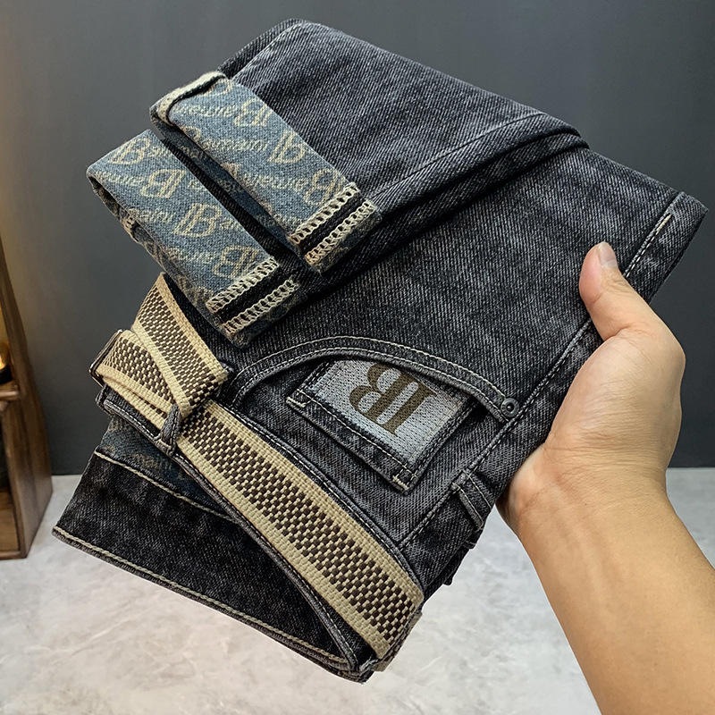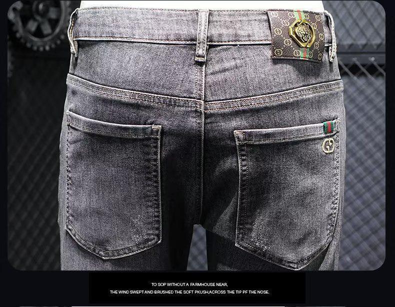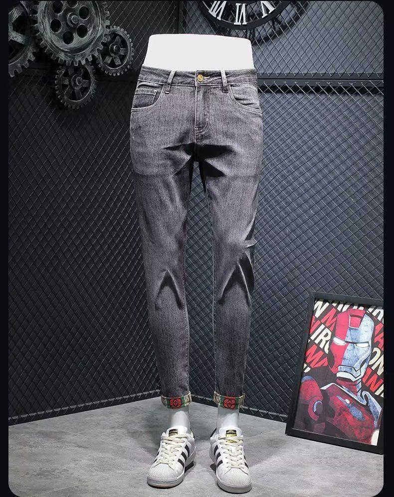 봄과 여름 하이 엔드 라이트 럭셔리 뉴 청바지 남성 인기 슬림 핏 작은 발 슬림 우아한 홍콩 스타일 슬림 핏 캐주얼 바지