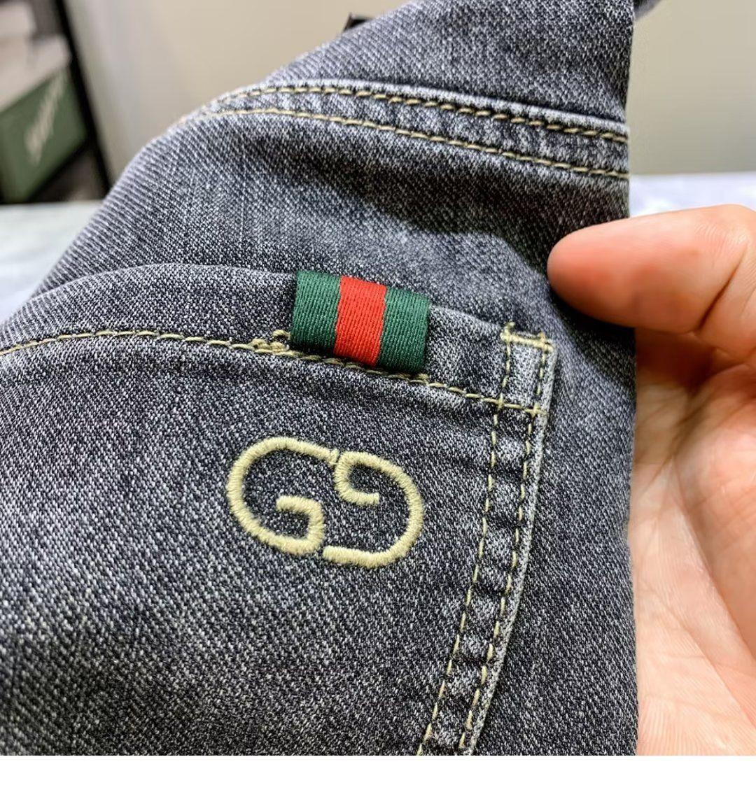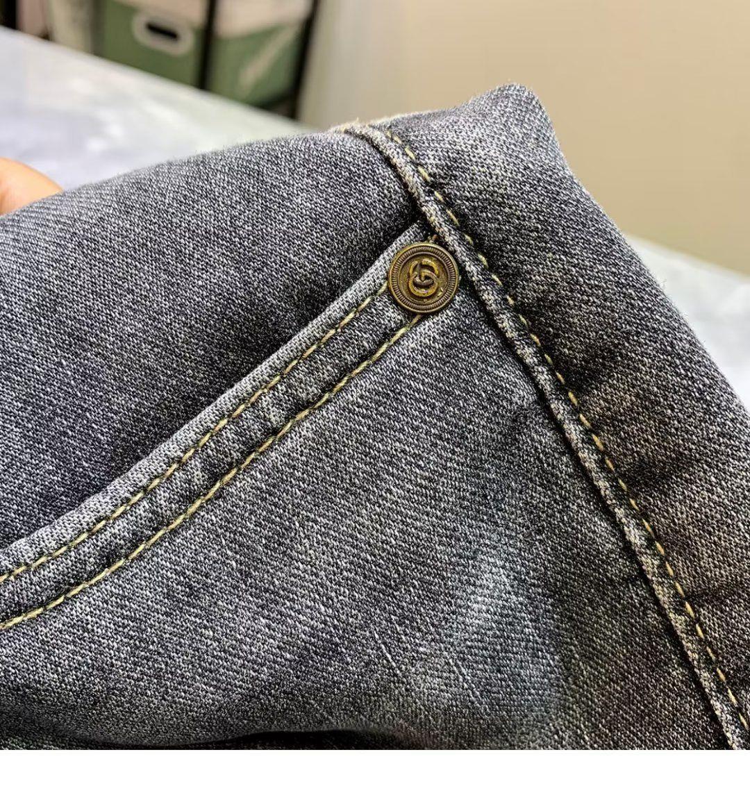봄과 여름 하이 엔드 라이트 럭셔리 뉴 청바지 남성 인기 슬림 핏 작은 발 슬림 우아한 홍콩 스타일 슬림 핏 캐주얼 바지스토어 가기