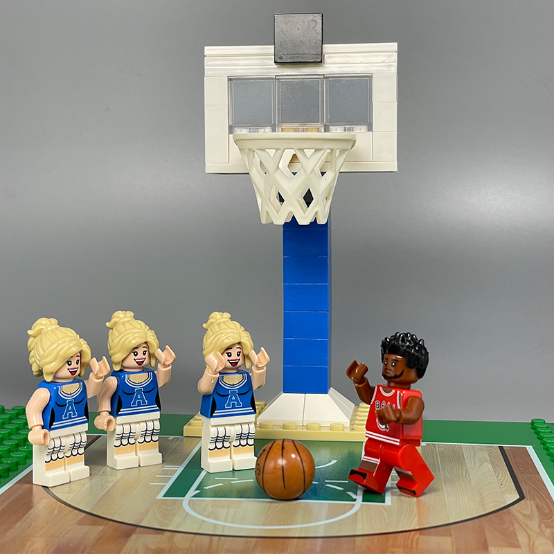MOC 작은 입자 조립 건물 블록 장난감 농구 랙 NBA 농구 스포츠 장면 장식 호환