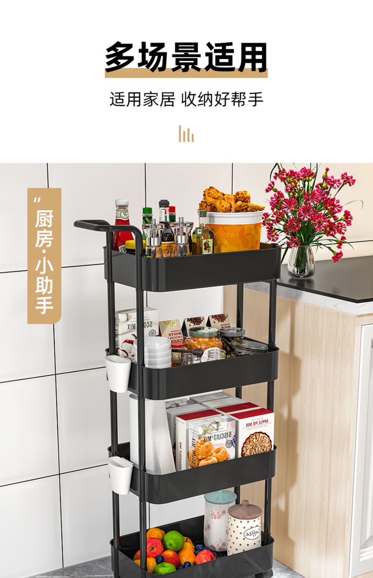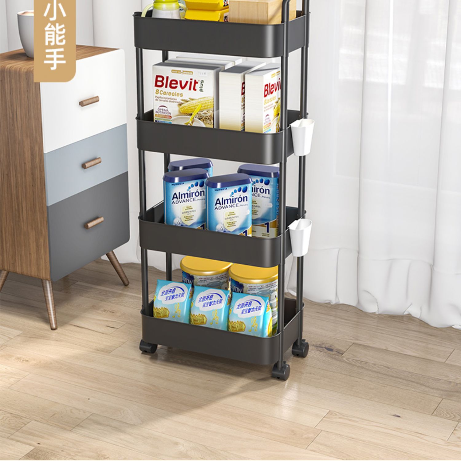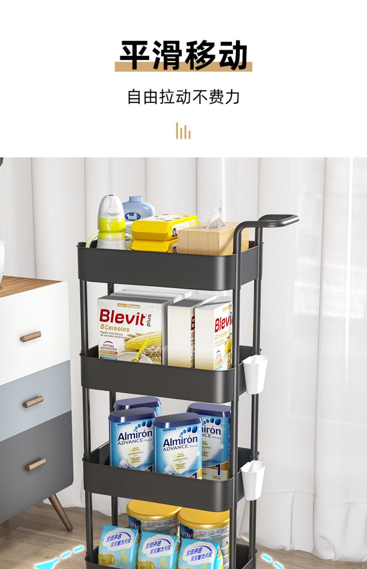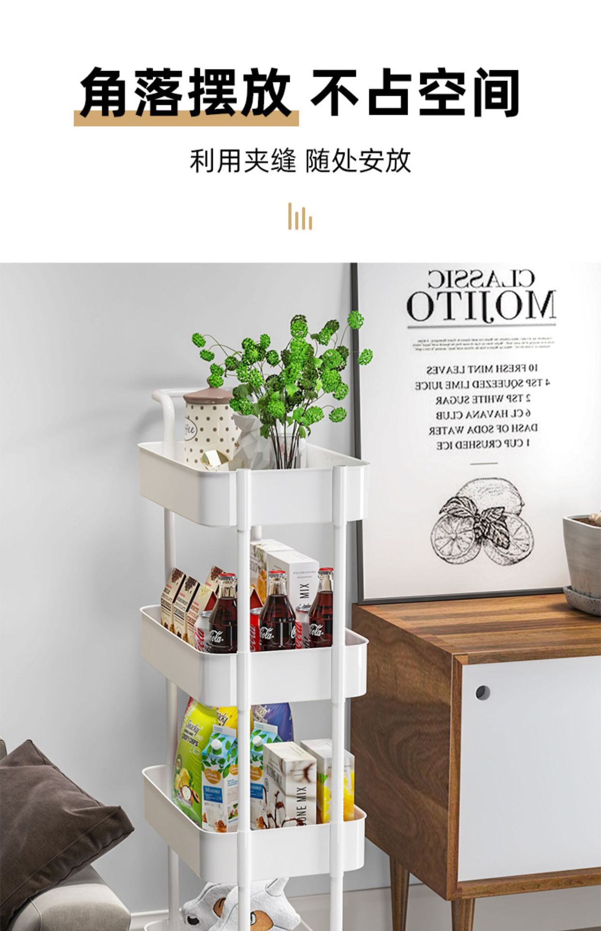 모바일 책장 보관 선반 바닥 다층 바퀴 거실 침실 기숙사 어린이 작은 책장 트롤리 보관 랙