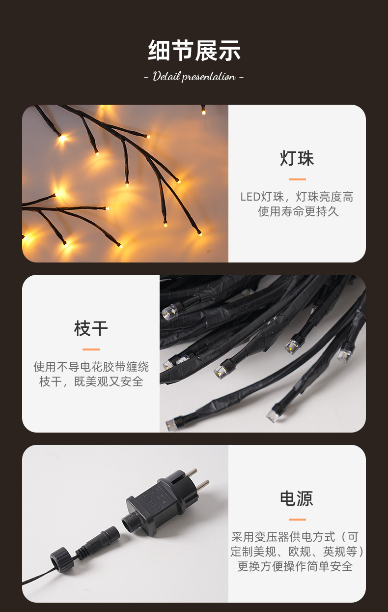 • UKCA 영국 게이지 8 기능 2.3 미터 길이 144LED 등나무 빛