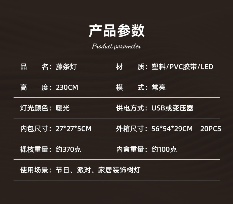• UL 미국 표준 길이 2.444m LED 등나무 램프 - 항상 켜짐