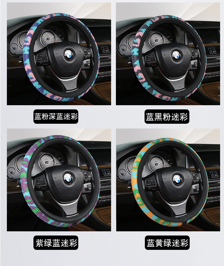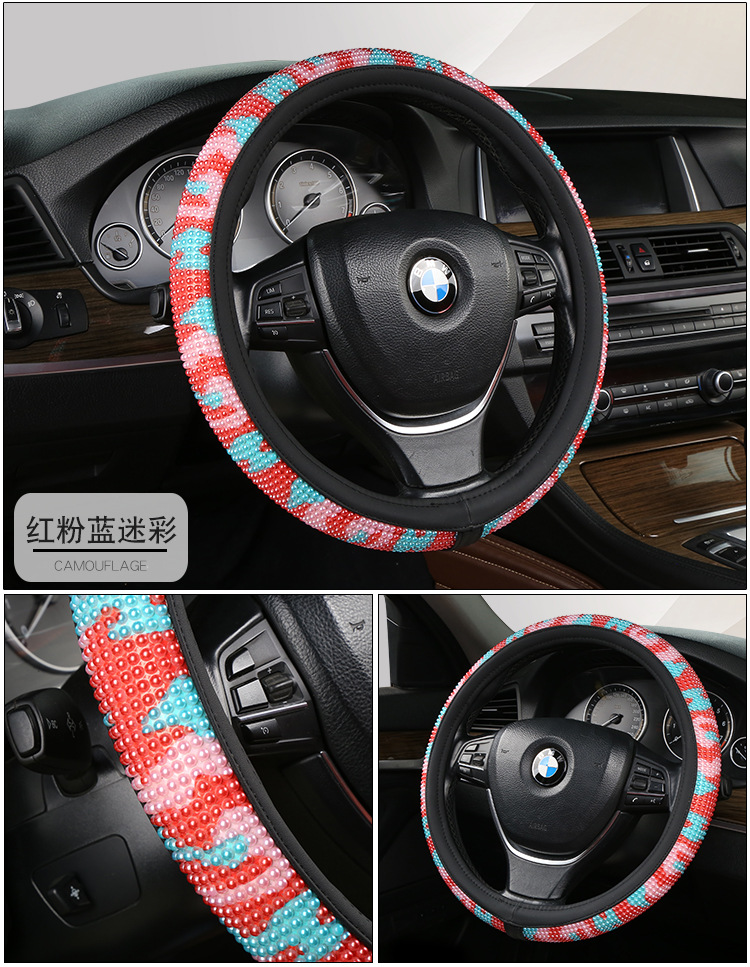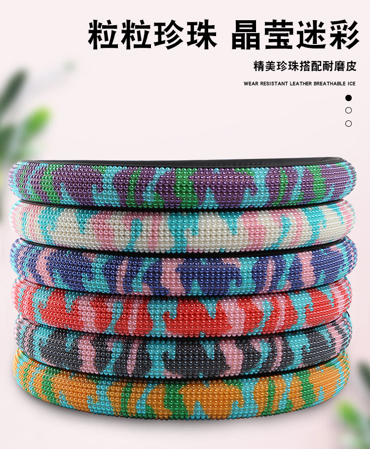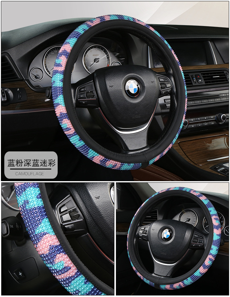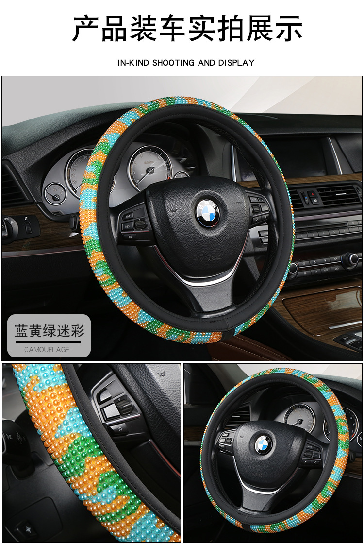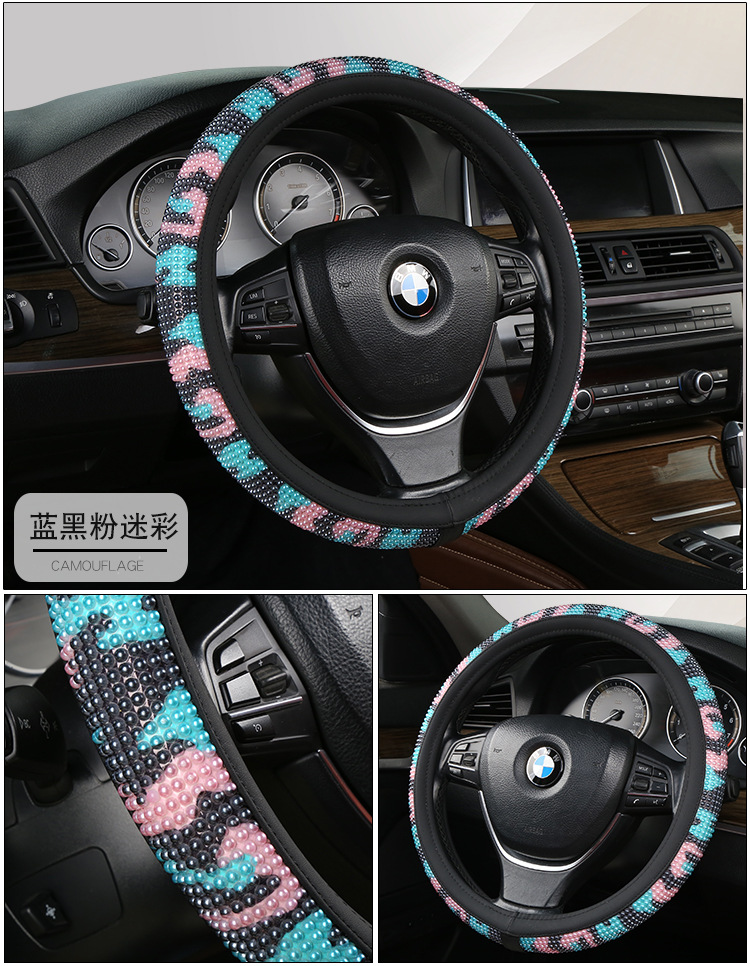 새로운 패션 비즈 미끄럼 방지 스티어링 휠 커버, 다용도, 사계절 범용, 위장 및 편안한 자동차 핸들 커버스토어 가기