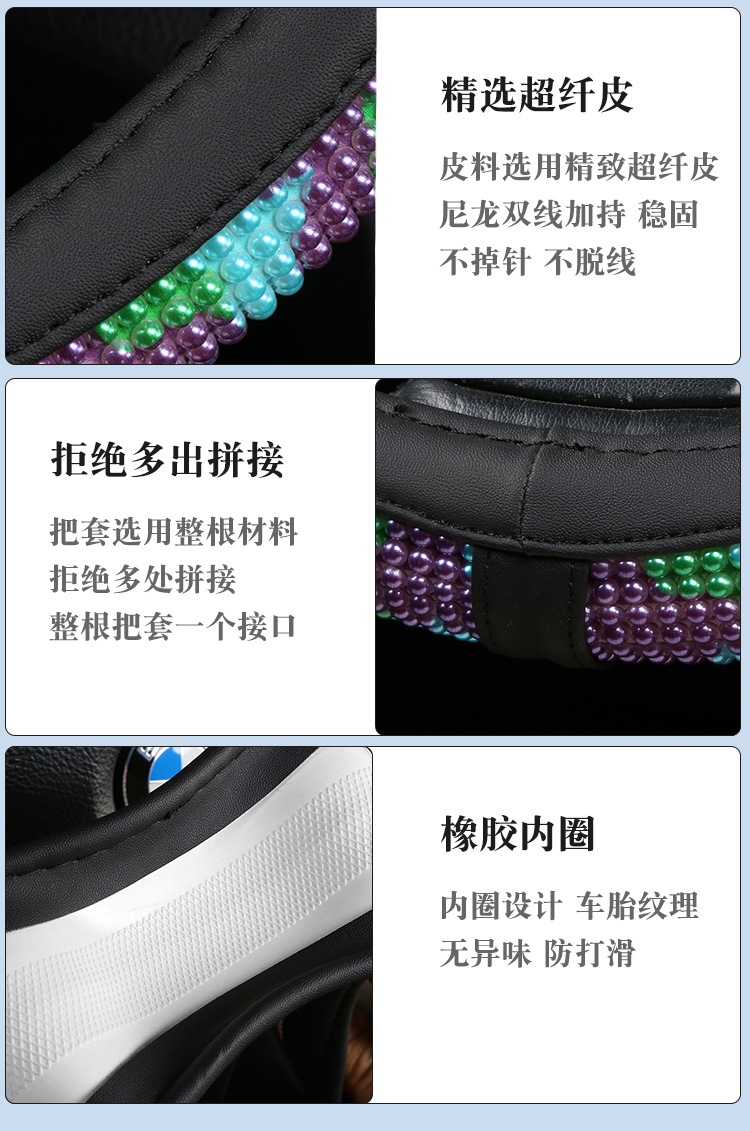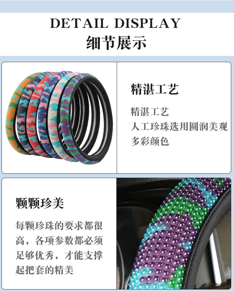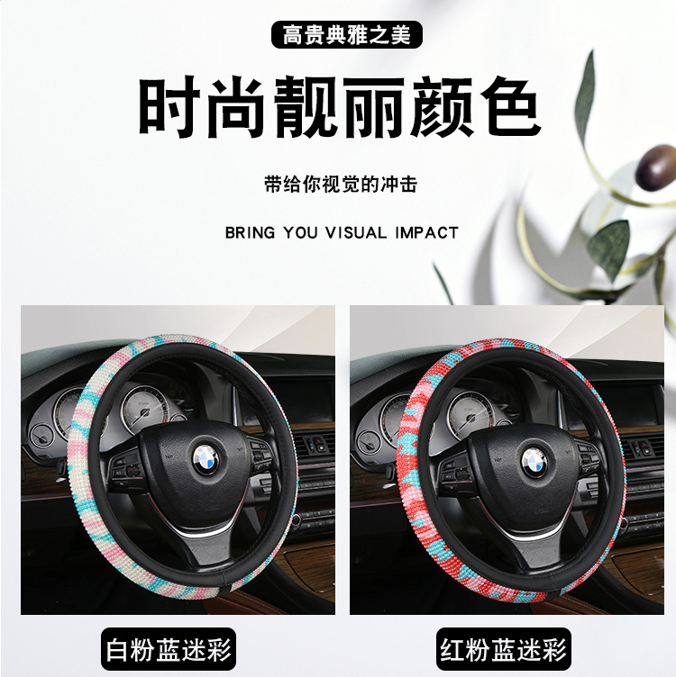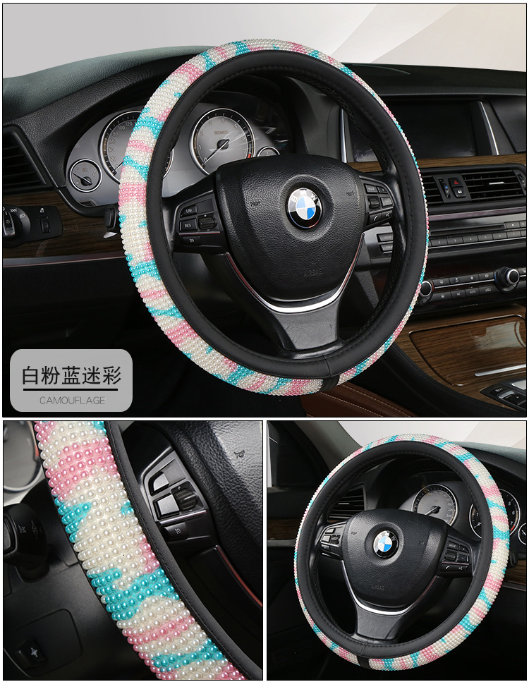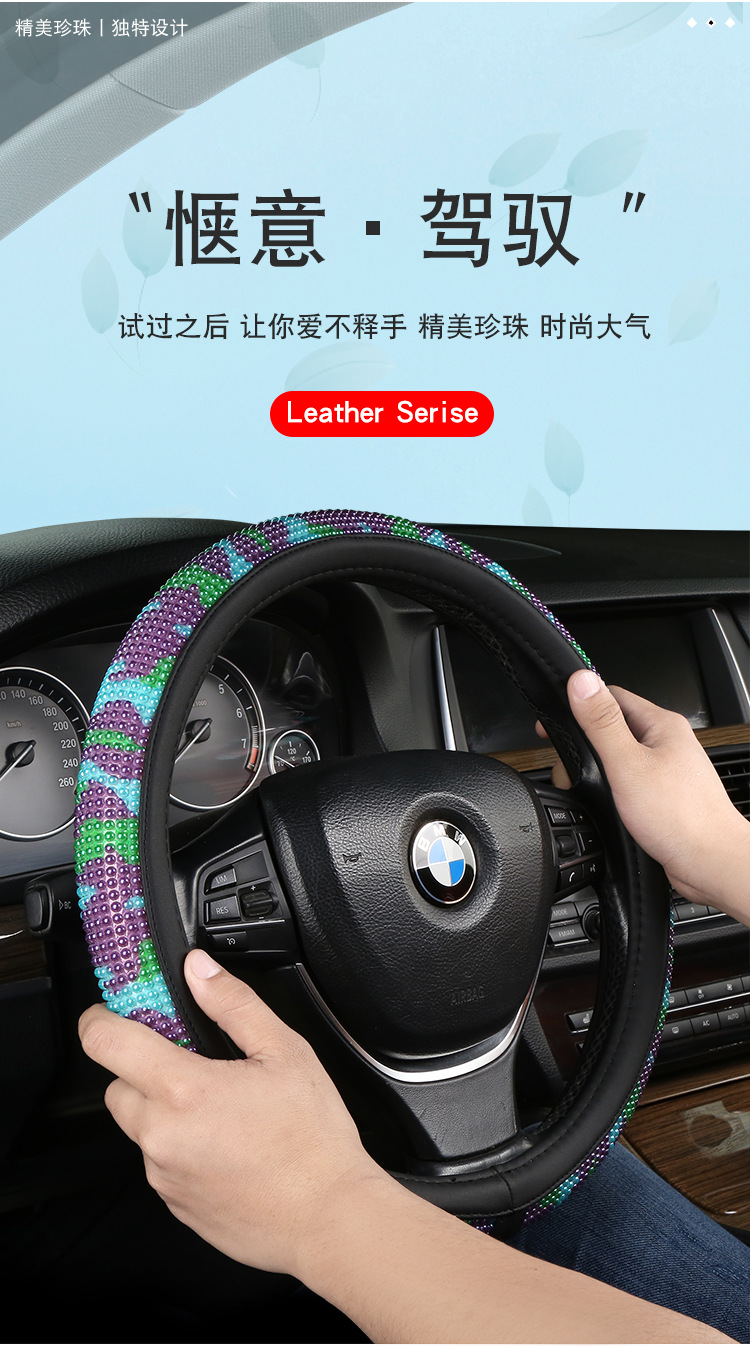 새로운 패션 비즈 미끄럼 방지 스티어링 휠 커버, 다용도, 사계절 범용, 위장 및 편안한 자동차 핸들 커버스토어 가기