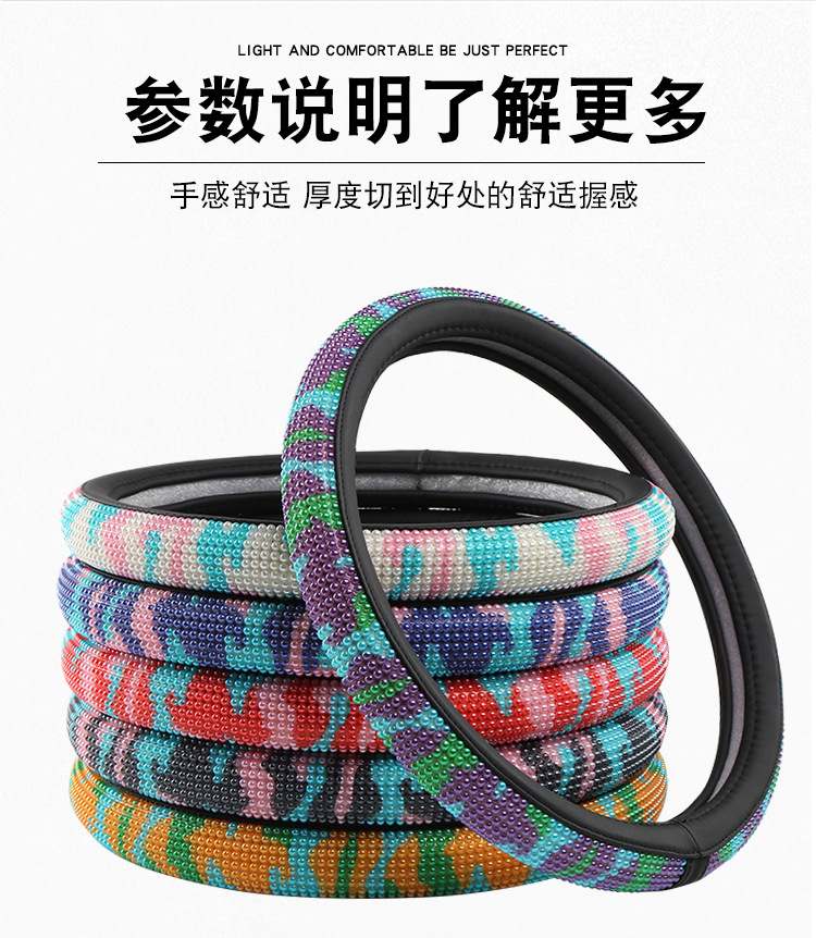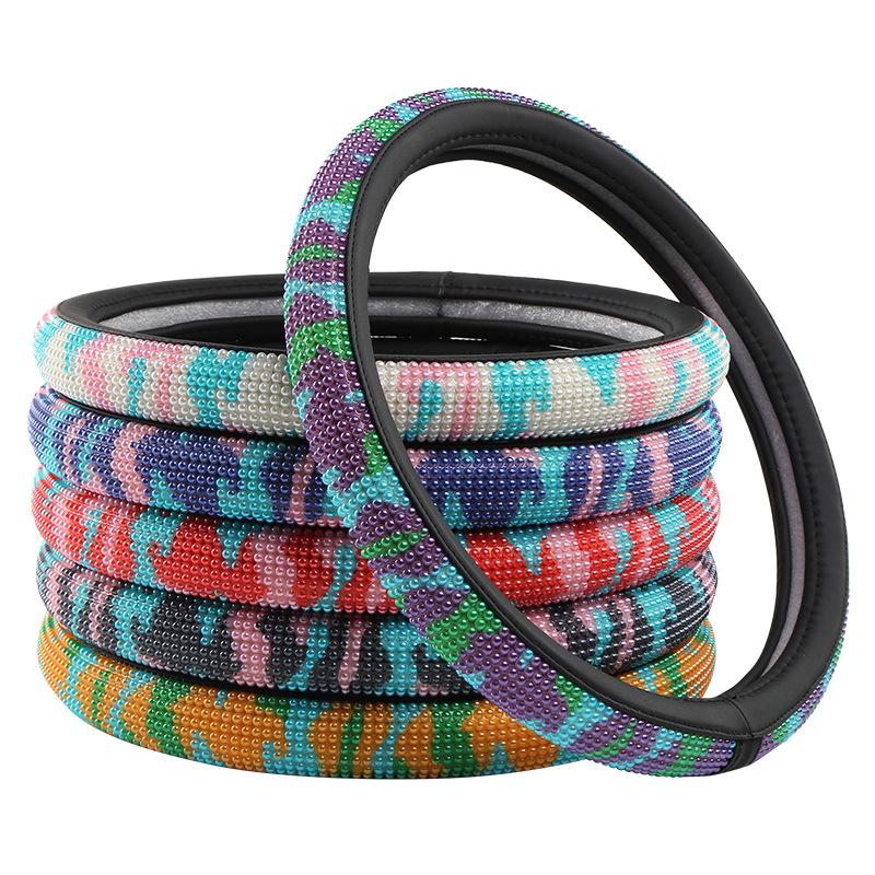 새로운 패션 비즈 미끄럼 방지 스티어링 휠 커버, 다용도, 사계절 범용, 위장 및 편안한 자동차 핸들 커버