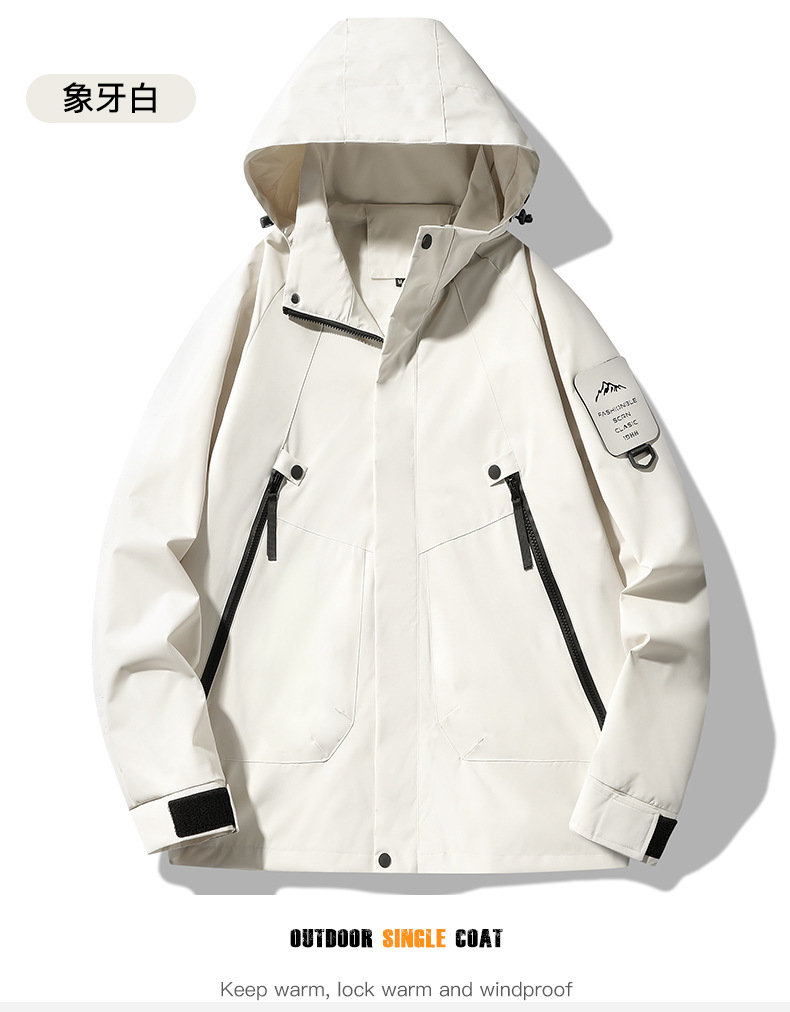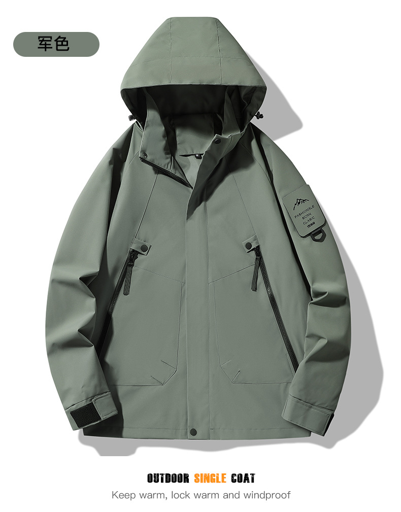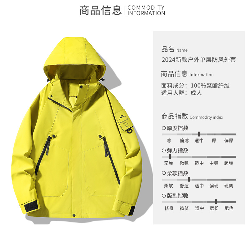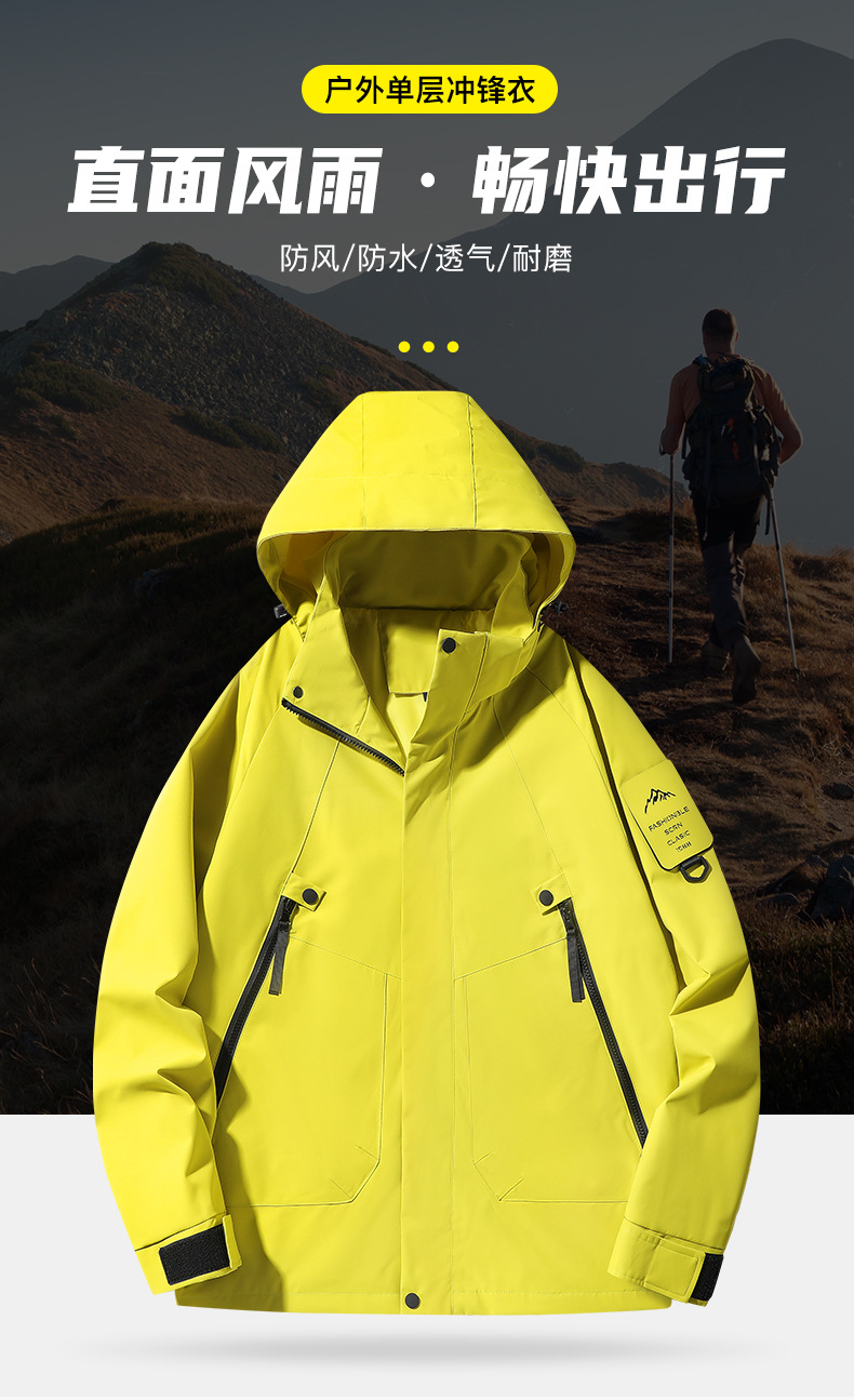 봄, 가을용 싱글 레이어 아웃도어 일본식 단색 방풍 방수 등산복 여성용, 남성용 긴팔 아우터 (내부 안감 없음)스토어 가기