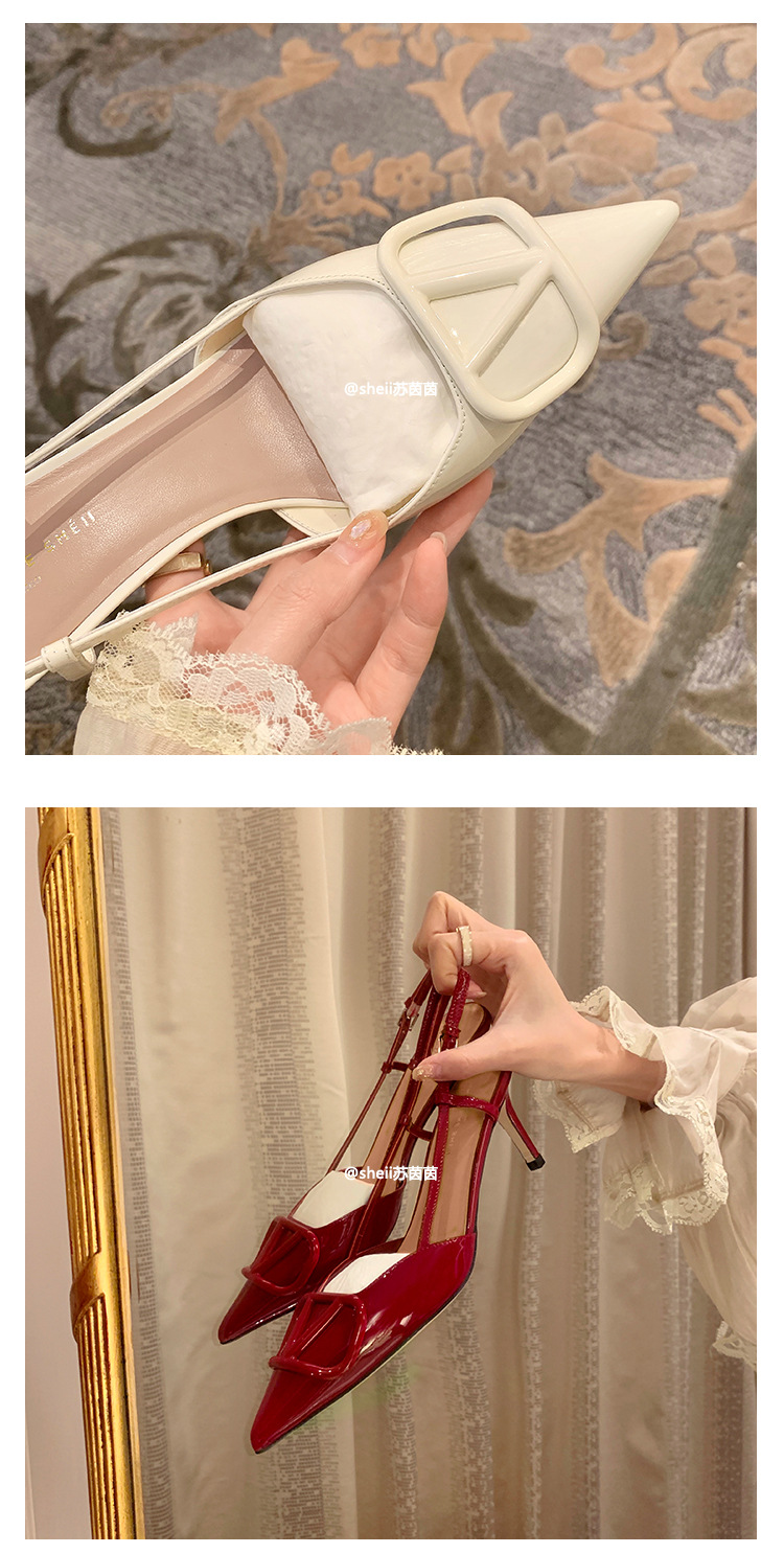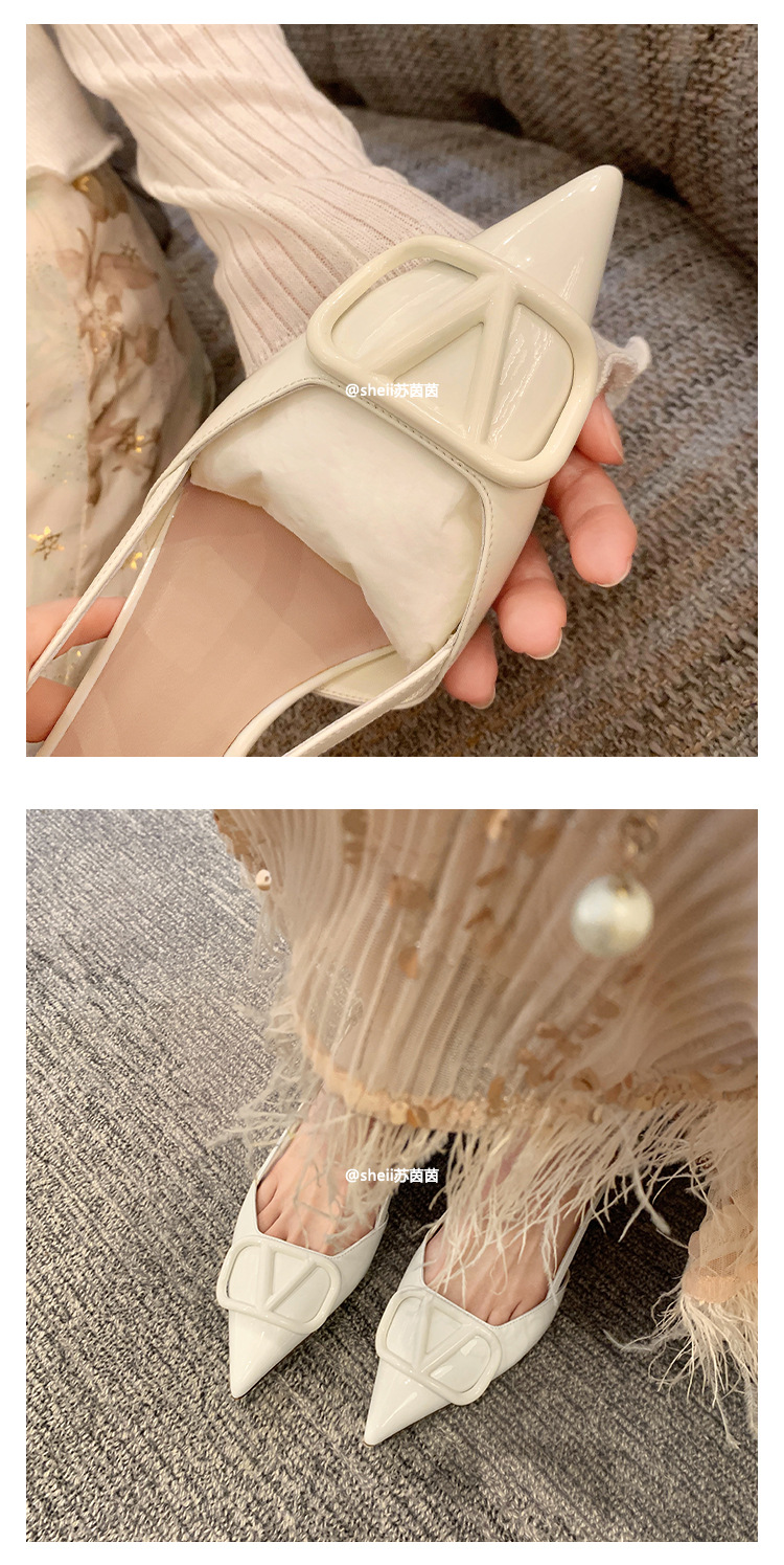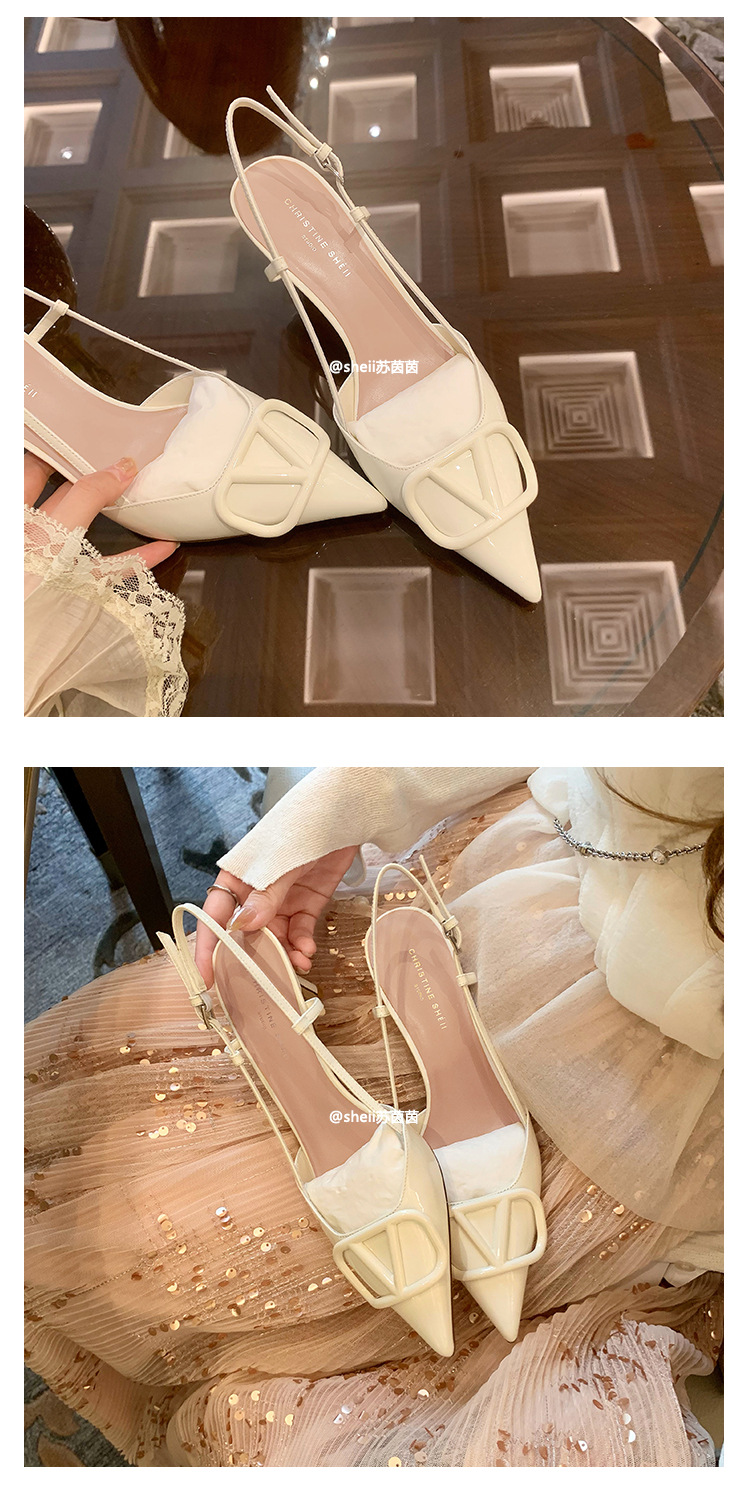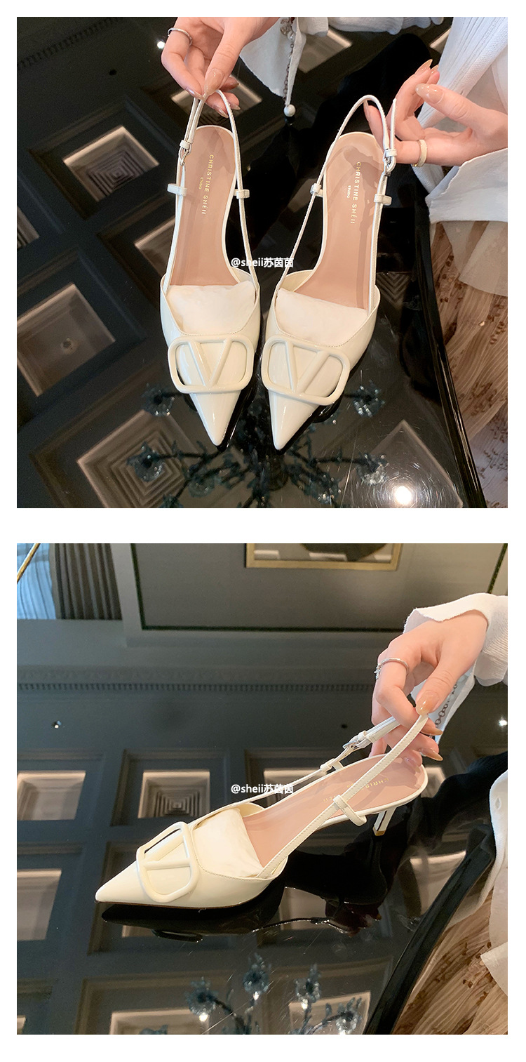 [Sheii Su Yinyin] 비교 ~ 뾰족한 V 버튼 가죽 Baotou 스틸레토 신발 통근 용 여성용 빈 샌들