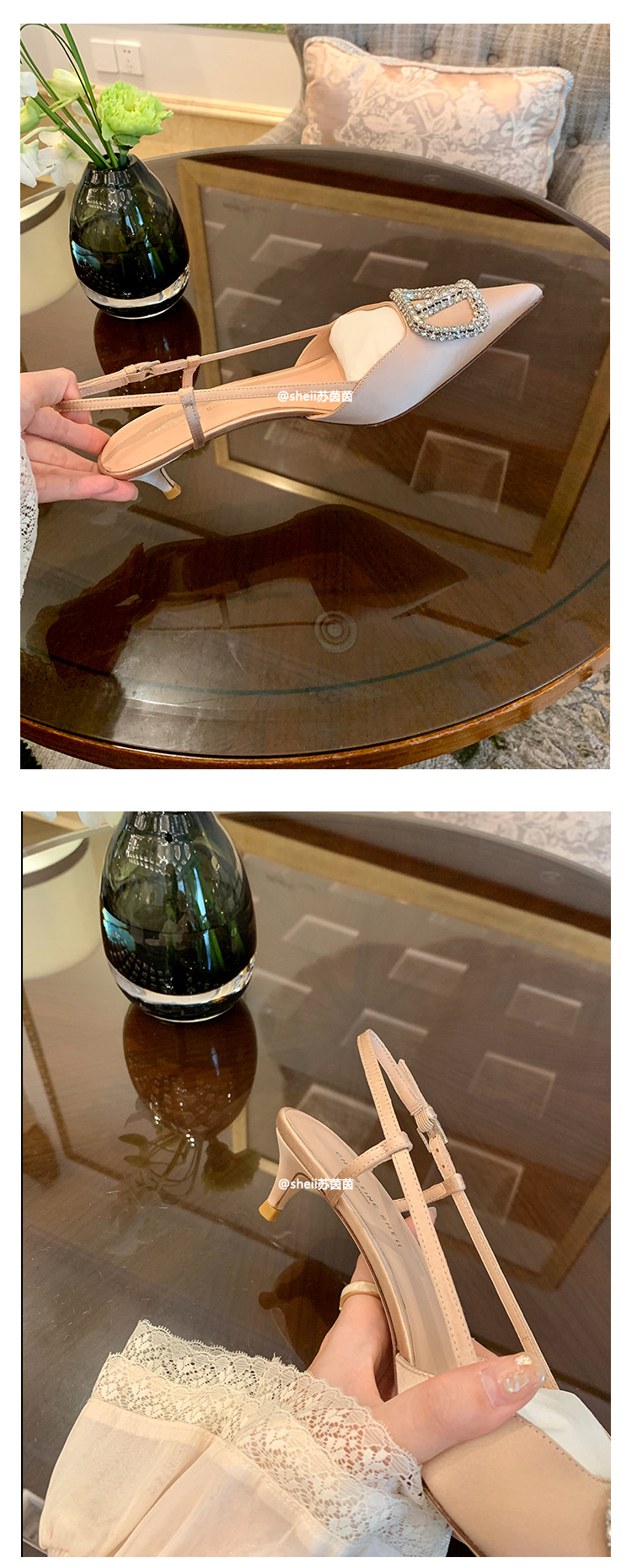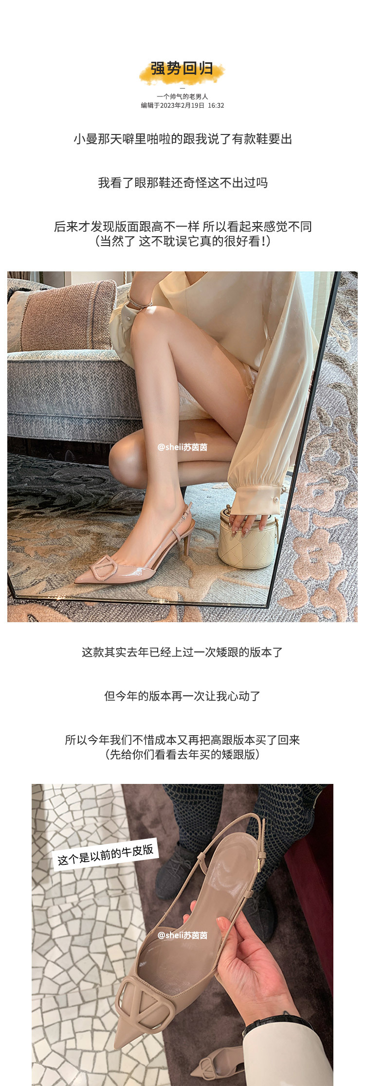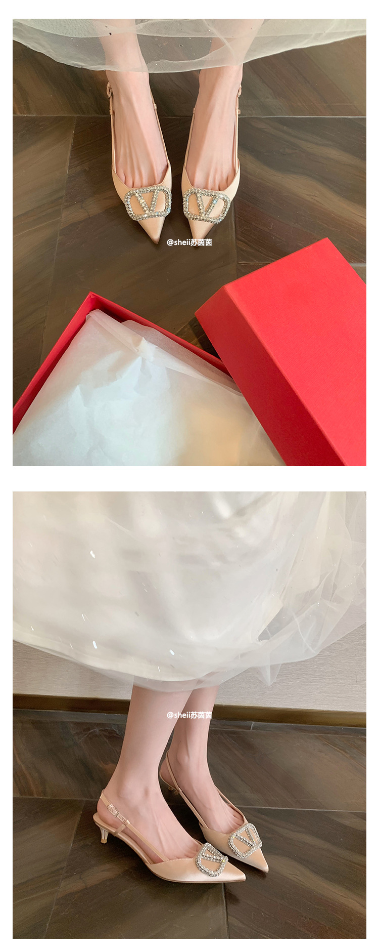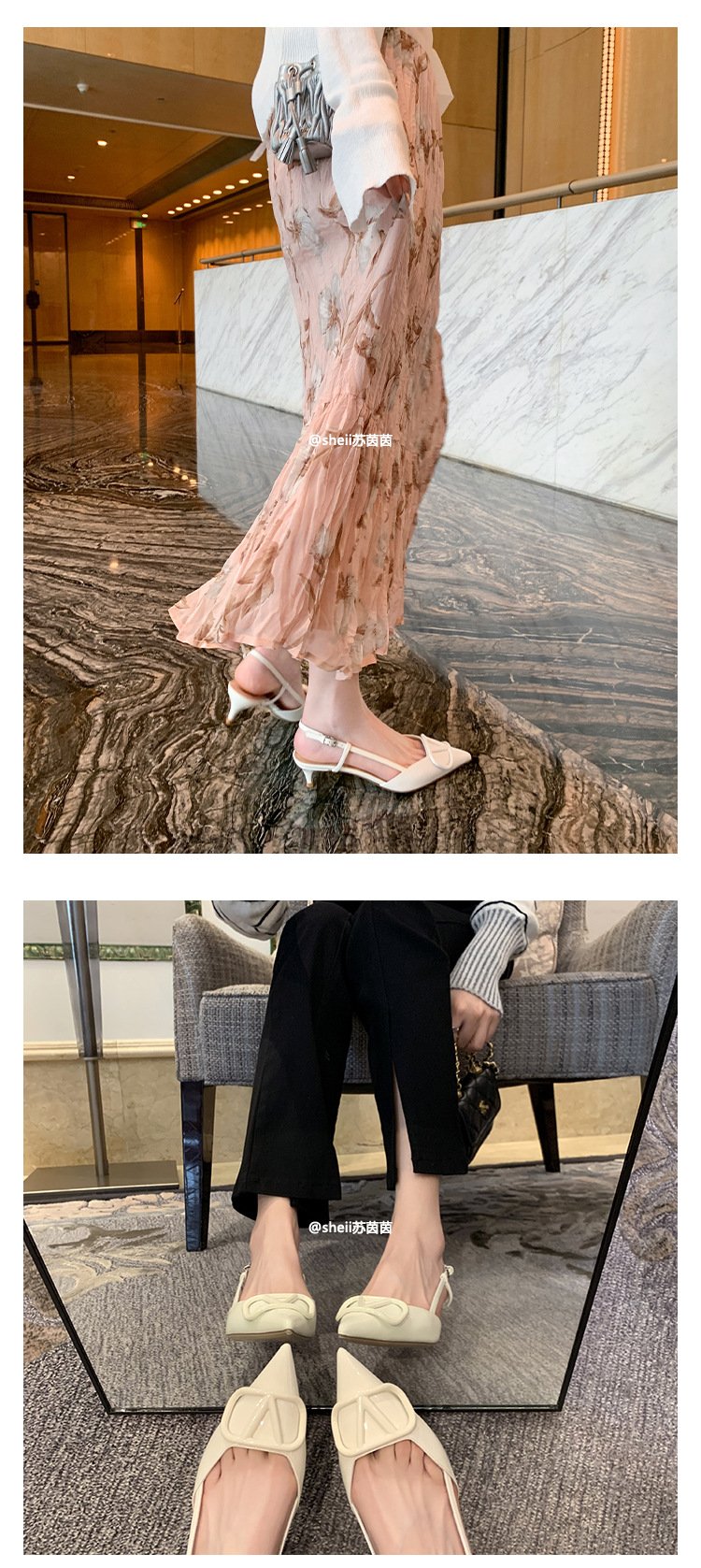 [Sheii Su Yinyin] 비교 ~ 뾰족한 V 버튼 가죽 Baotou 스틸레토 신발 통근 용 여성용 빈 샌들