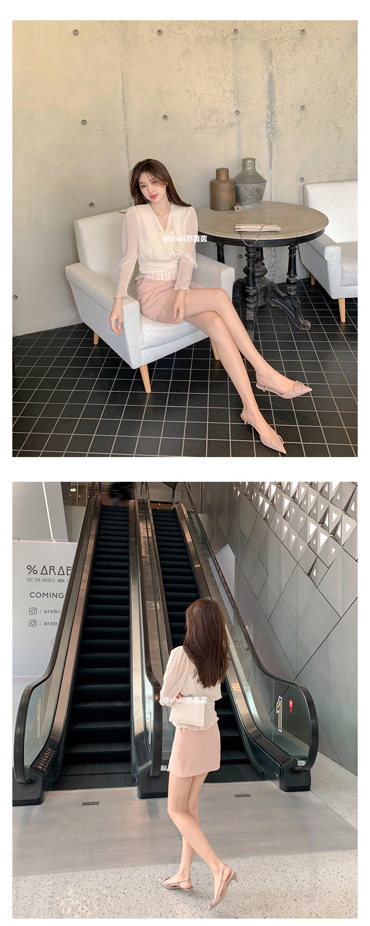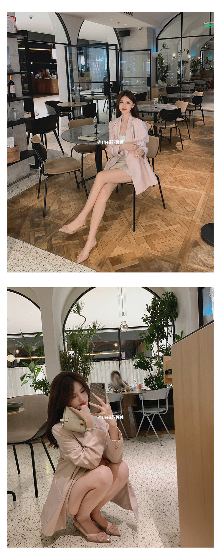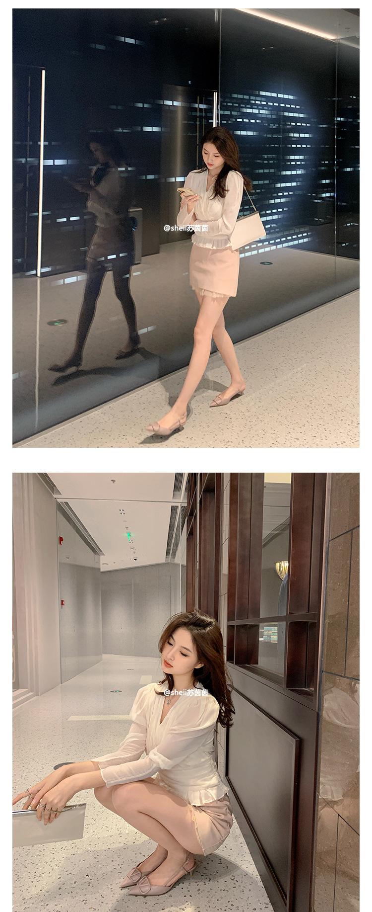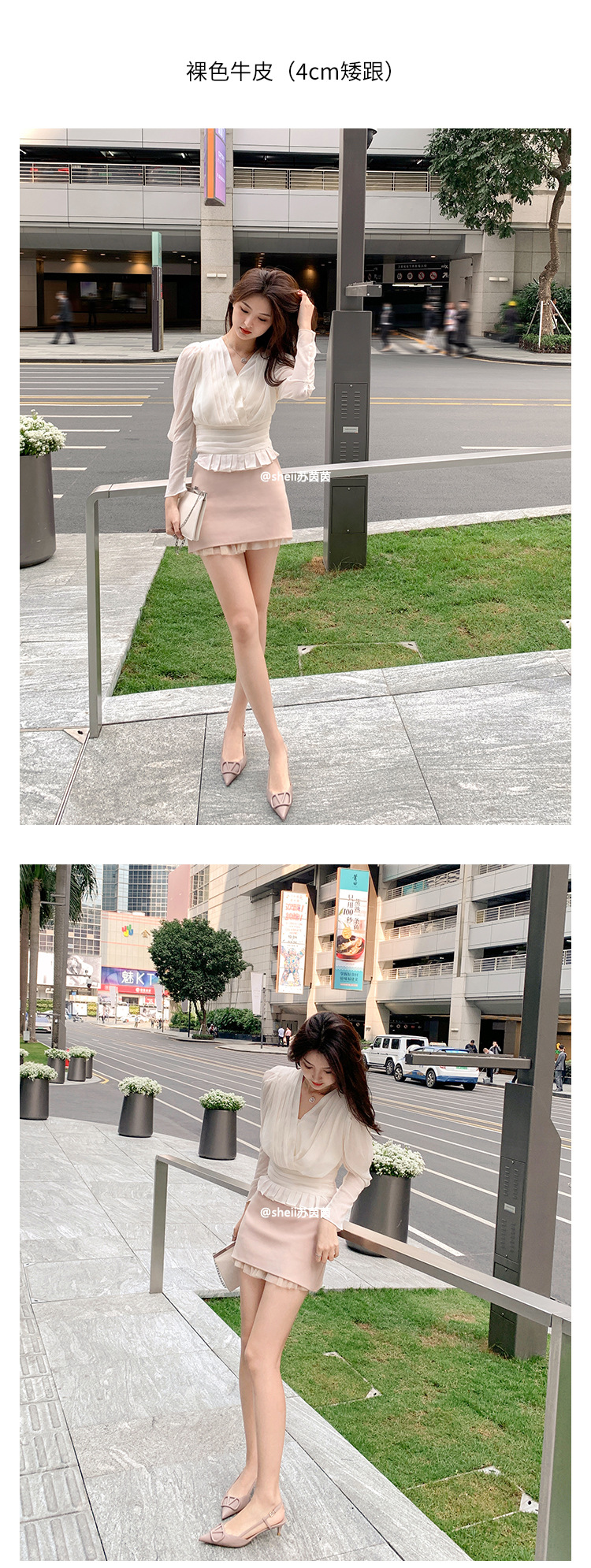 [Sheii Su Yinyin] 비교 ~ 뾰족한 V 버튼 가죽 Baotou 스틸레토 신발 통근 용 여성용 빈 샌들