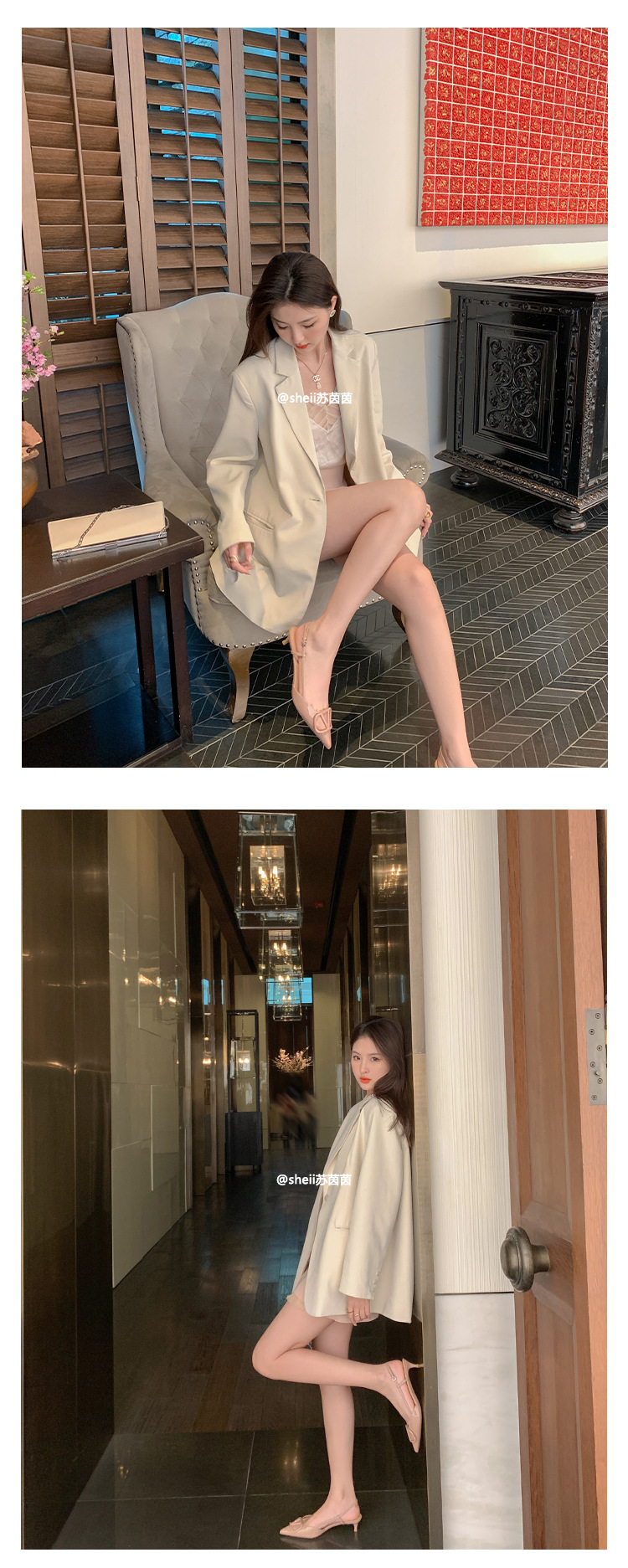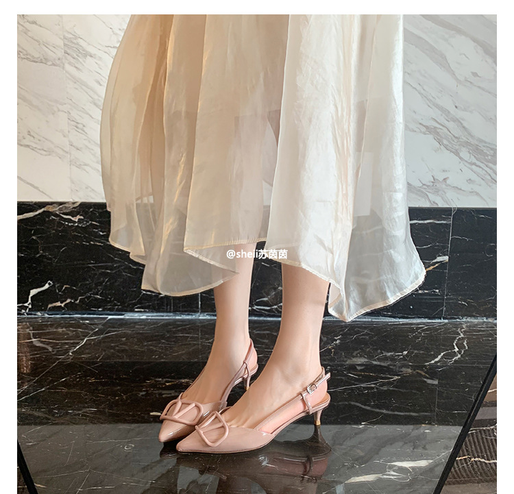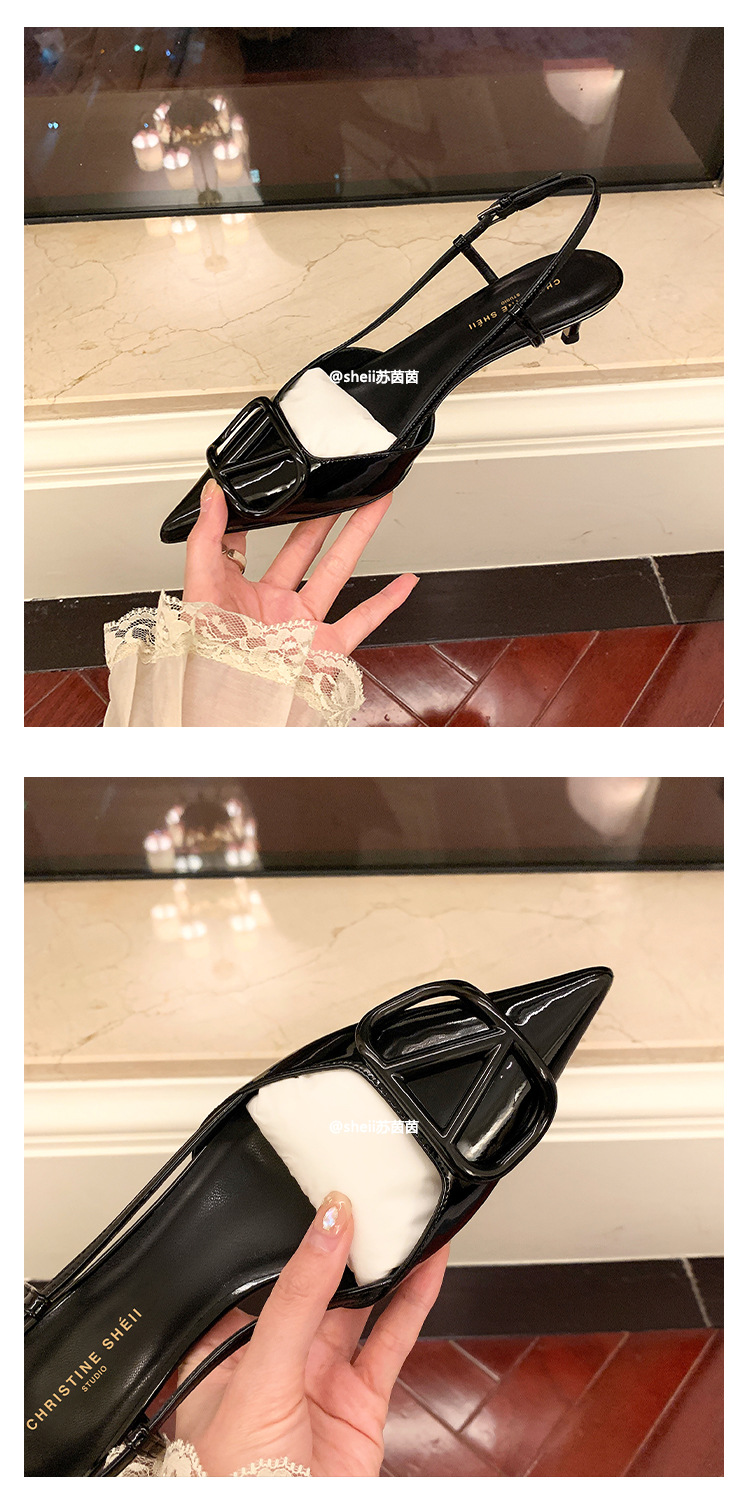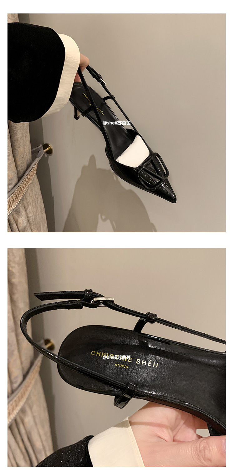 [Sheii Su Yinyin] 비교 ~ 뾰족한 V 버튼 가죽 Baotou 스틸레토 신발 통근 용 여성용 빈 샌들스토어 가기