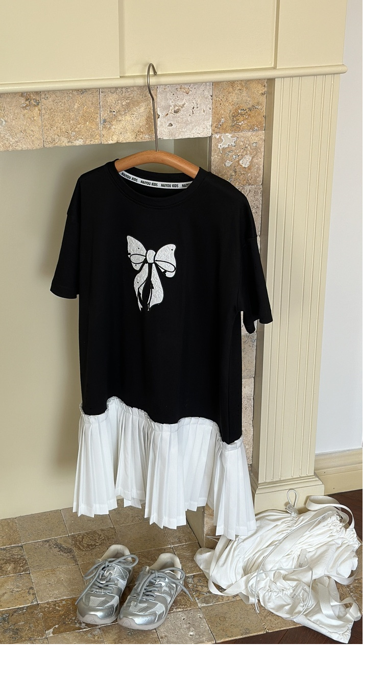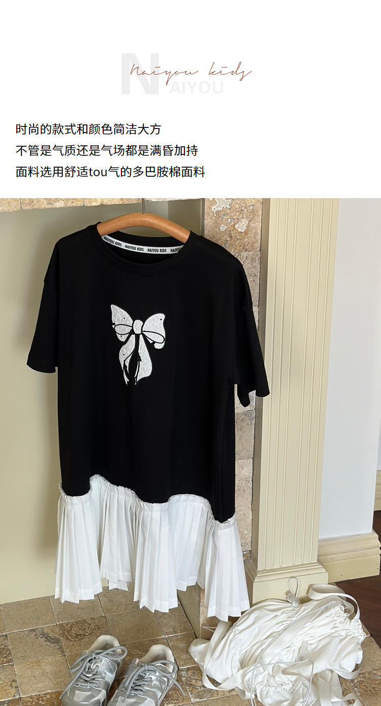 아동 의류 소녀 스커트 대학 스타일 주름 치마 2025 여름 새로운 어린이 드레스 스플 라이스 서양식 공주 스커트스토어 가기