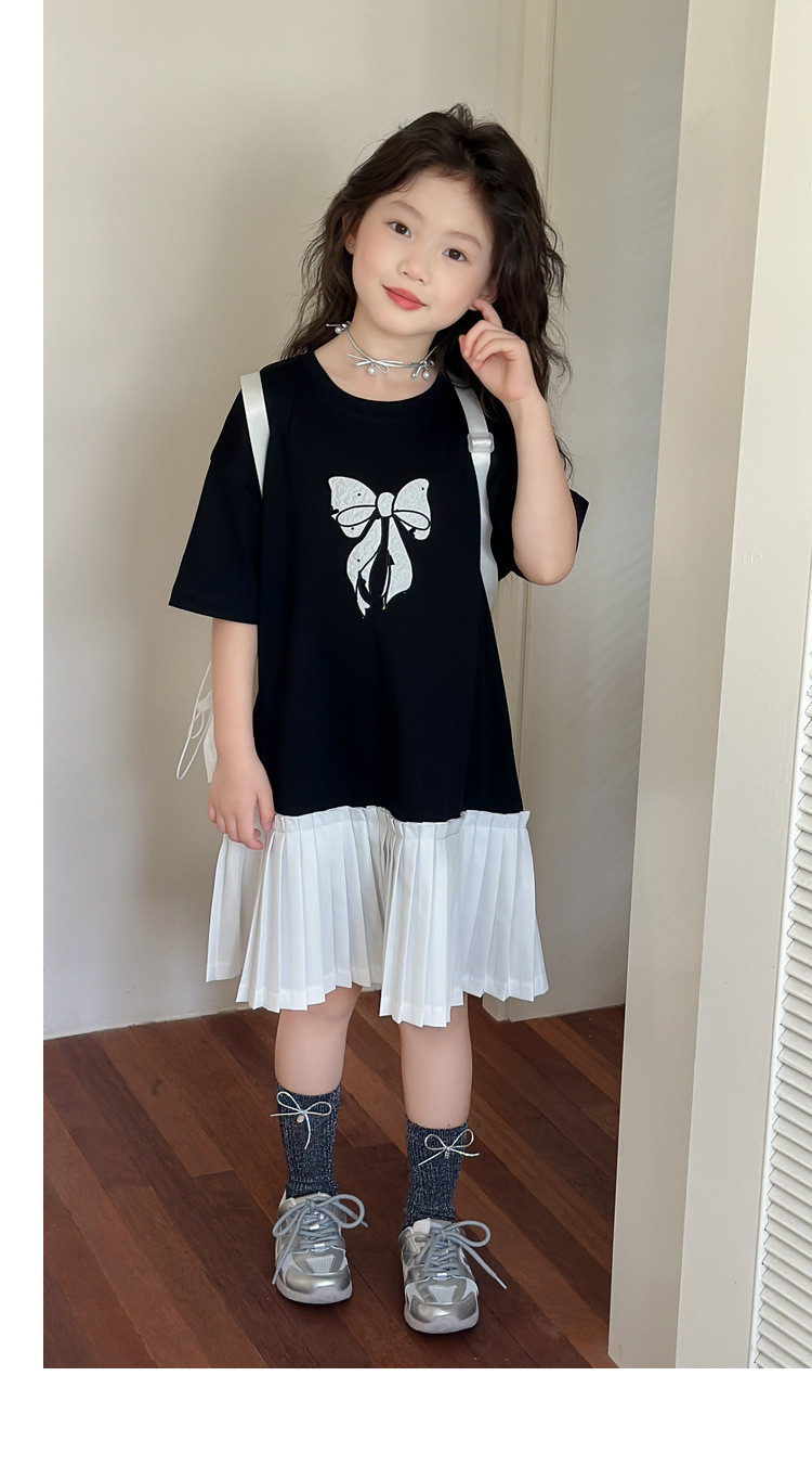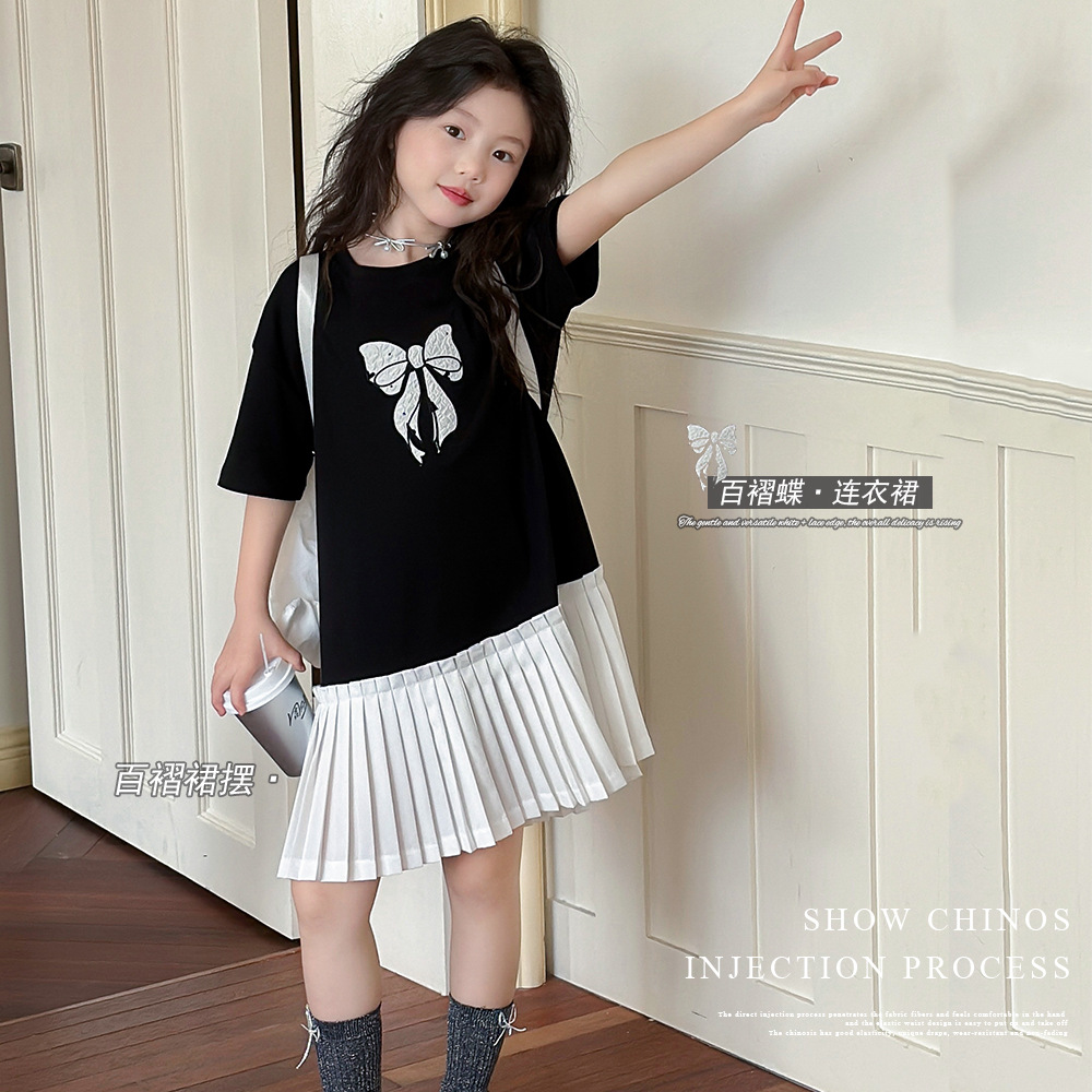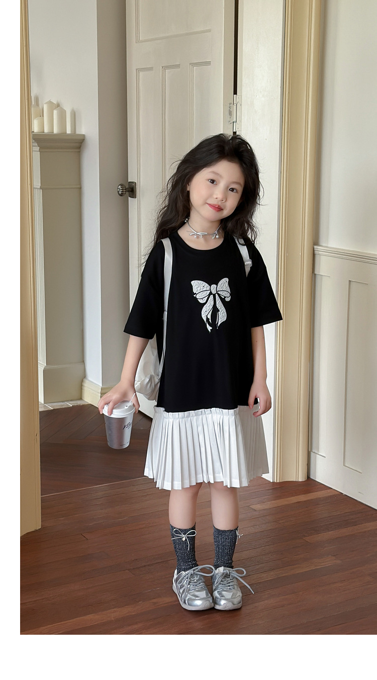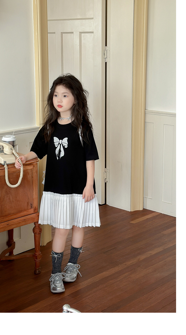 아동 의류 소녀 스커트 대학 스타일 주름 치마 2025 여름 새로운 어린이 드레스 스플 라이스 서양식 공주 스커트