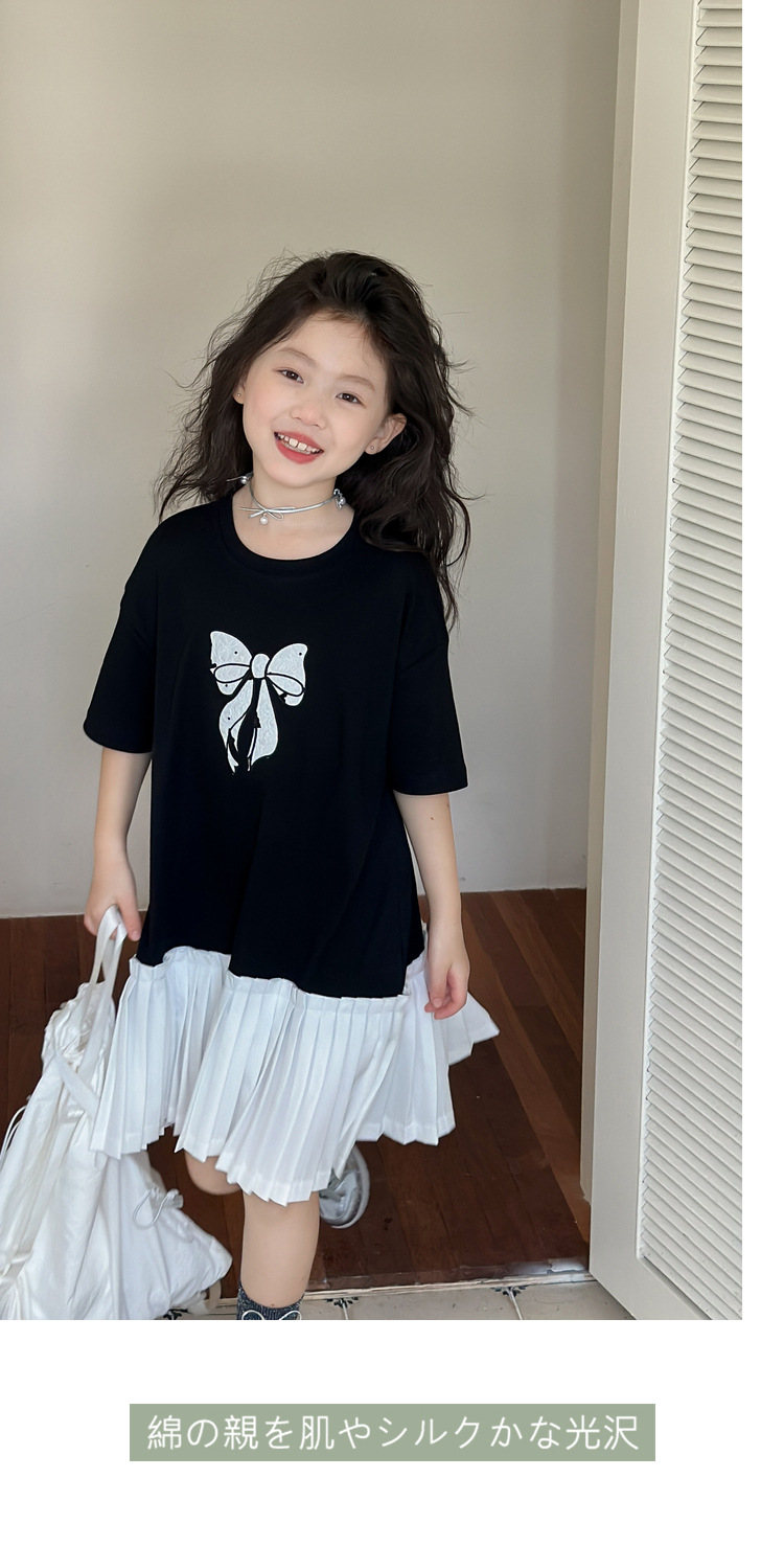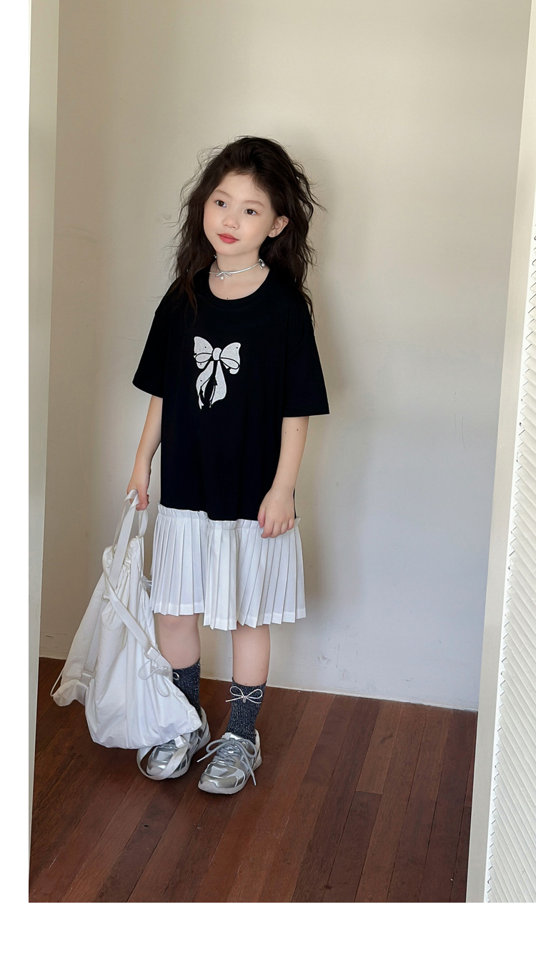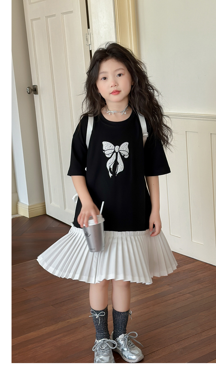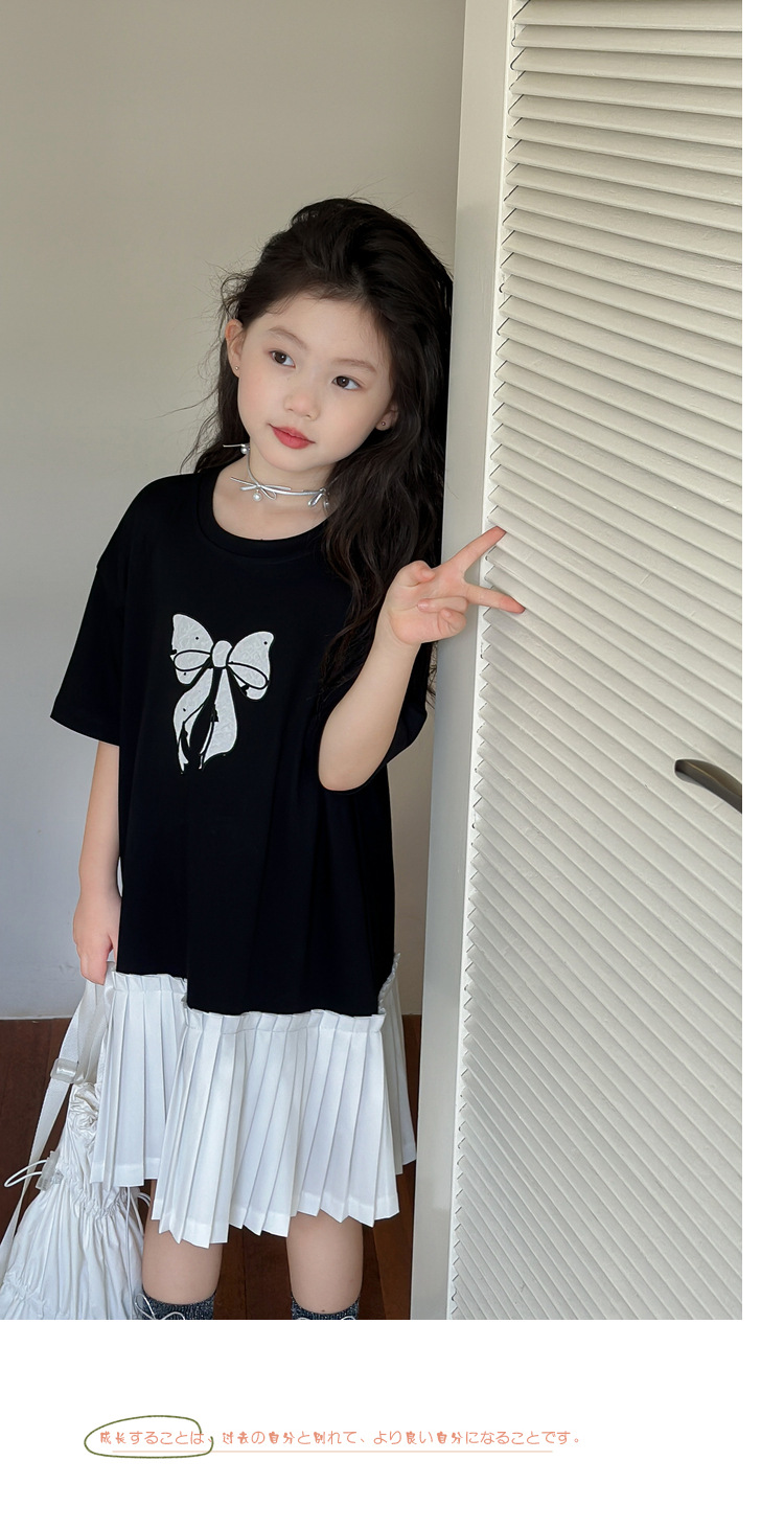 아동 의류 소녀 스커트 대학 스타일 주름 치마 2025 여름 새로운 어린이 드레스 스플 라이스 서양식 공주 스커트