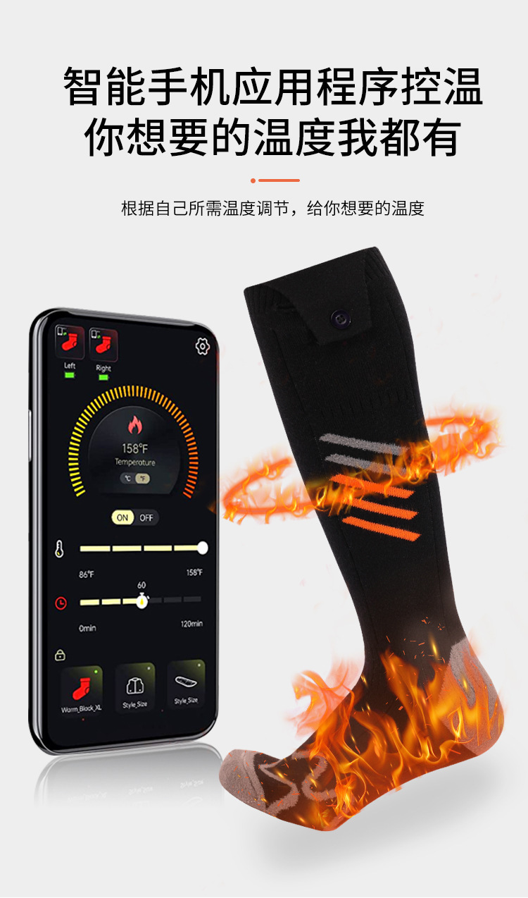 공장 맞춤형 국경 간 APP 가열 양말 Amazon 전용 가열 양말 스키 전기 가열 양말스토어 가기