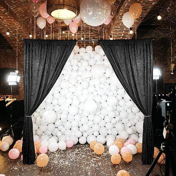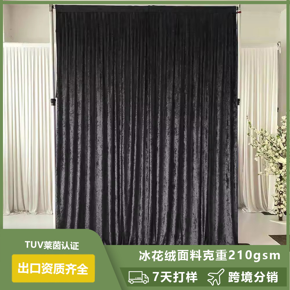 결혼식 생일 파티 무대 배경 레이아웃 검은 검은 천 얼음 꽃 벨벳 빛 흡수 커튼 배경 커튼스토어 가기
