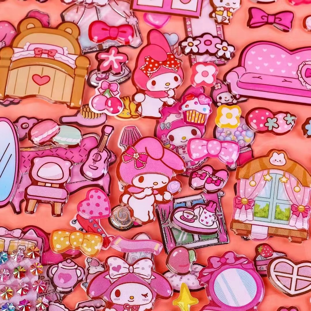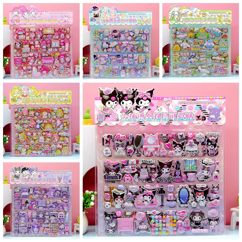 창의적이고 귀여운 어린이 더블 레이어 산리오 쿠로메 입체 버블 스티커 초등학생 장식 3D 입체 스티커스토어 가기