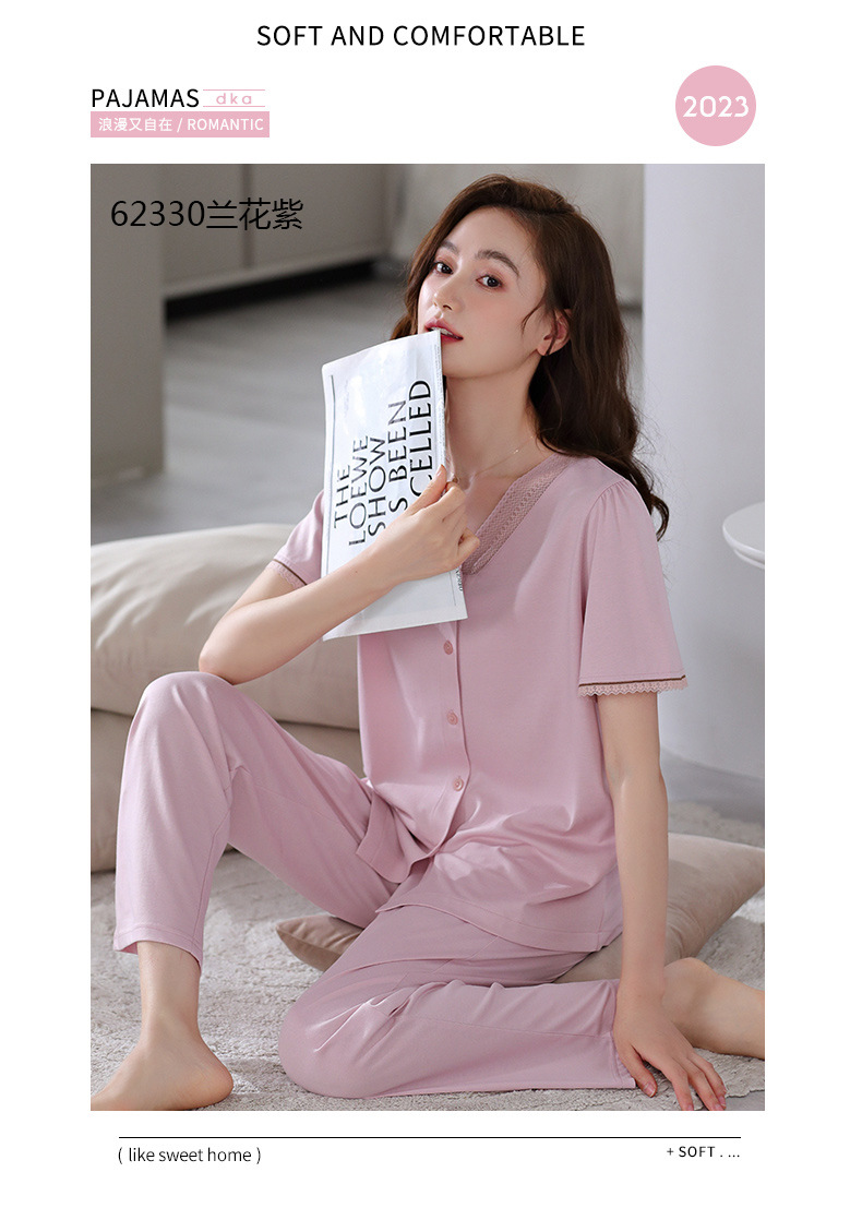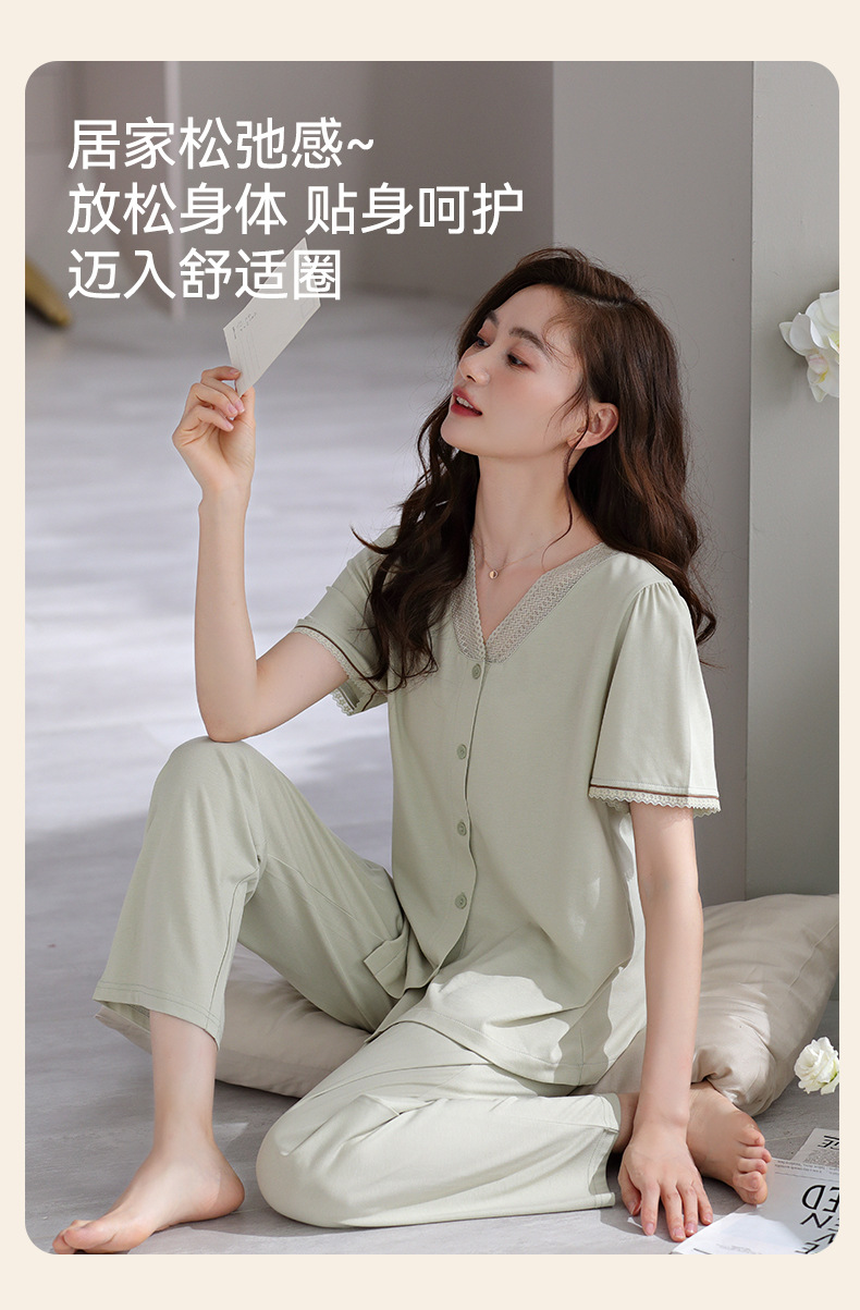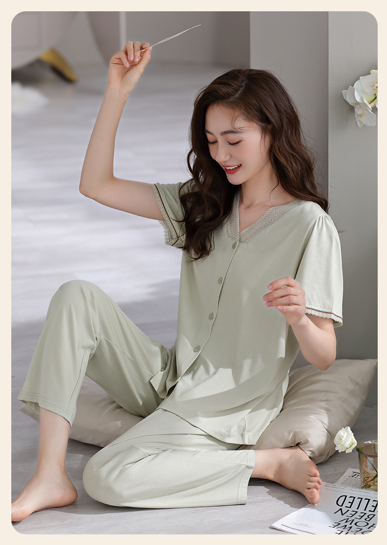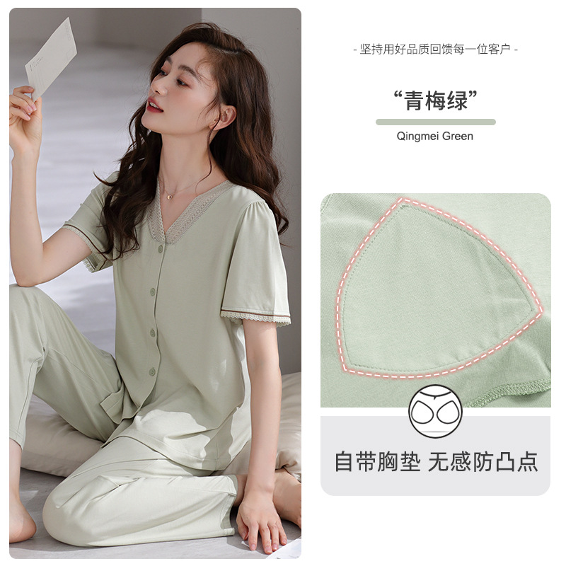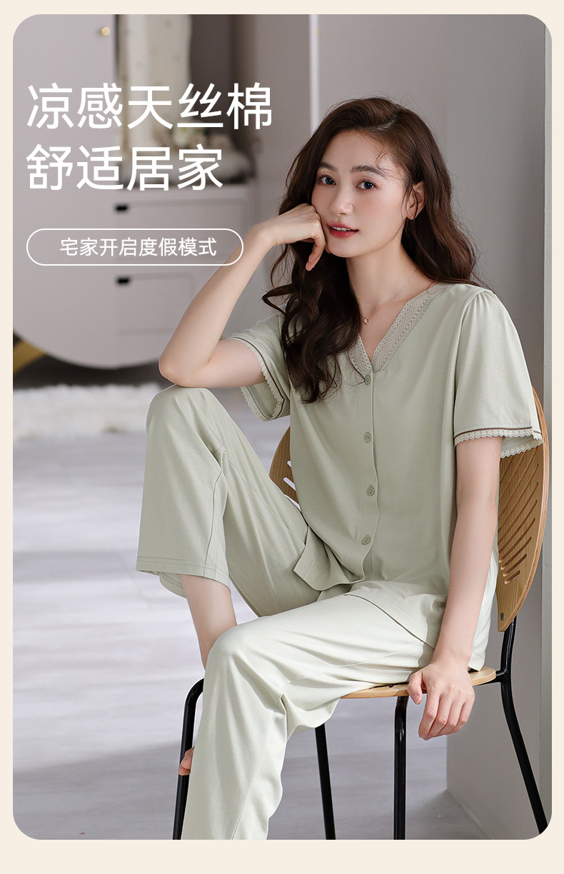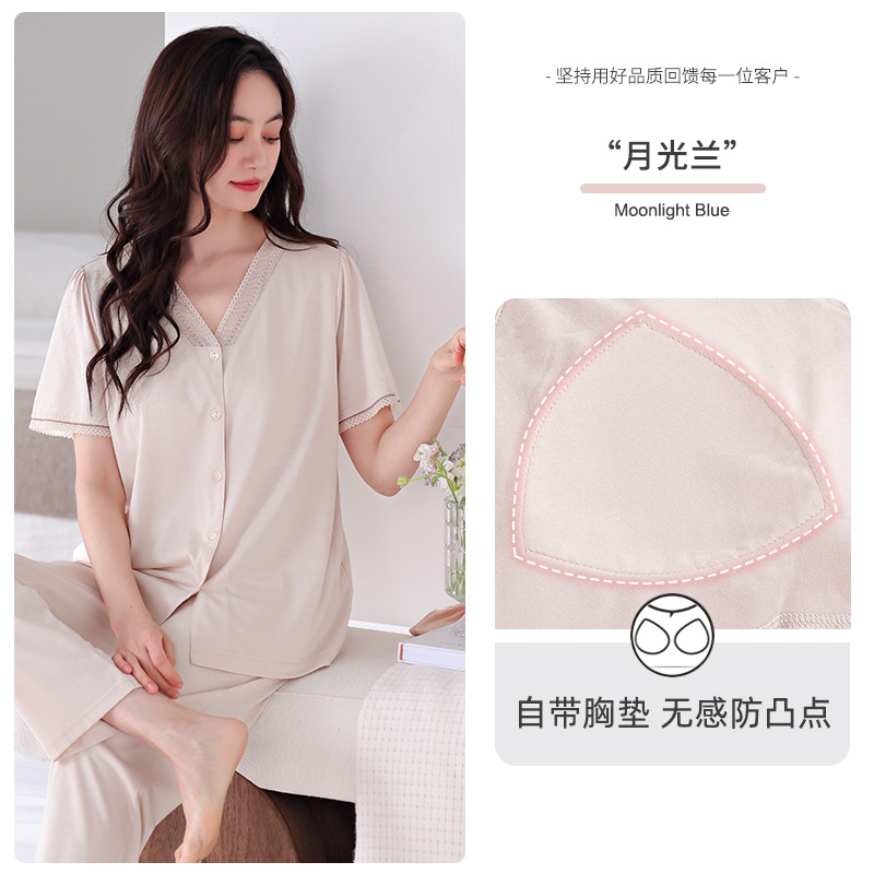 여성용 잠옷, 가슴 패드가 있는 여름 반팔 바지, 여성용 홈웨어, 여름 텐셀 면 실크 시원한 얇은 대형 세트스토어 가기