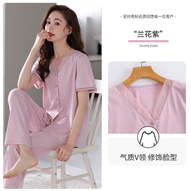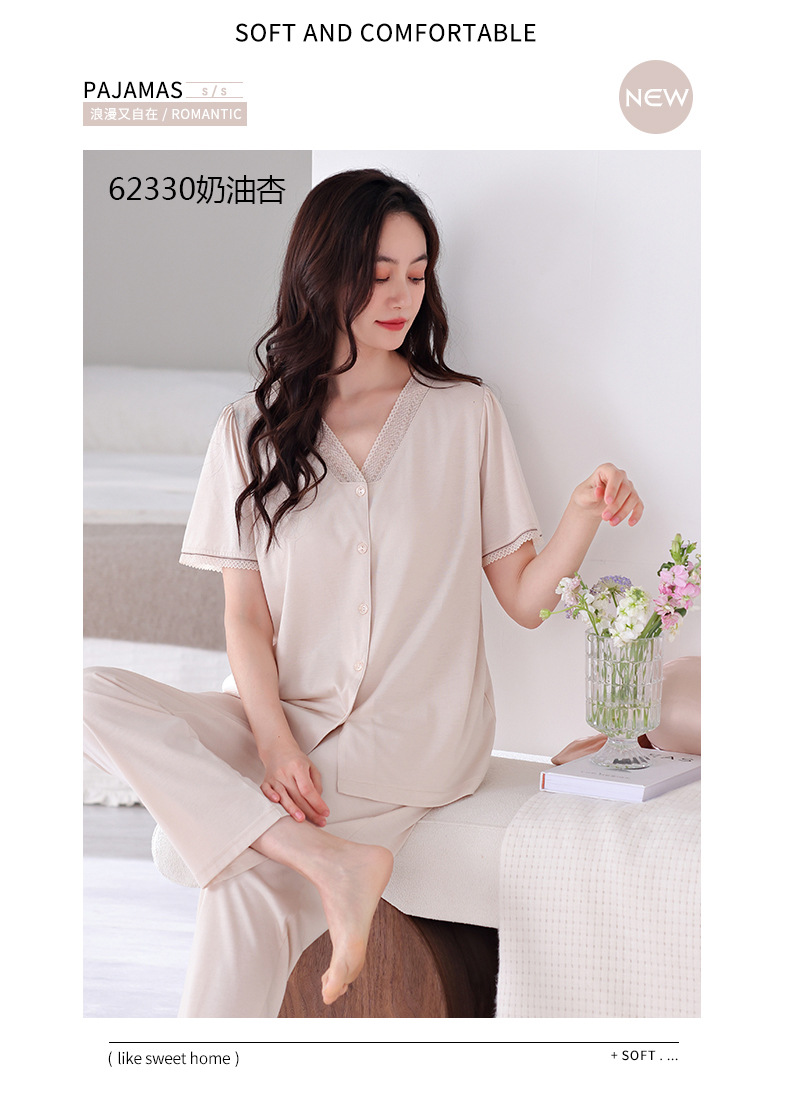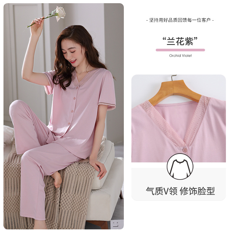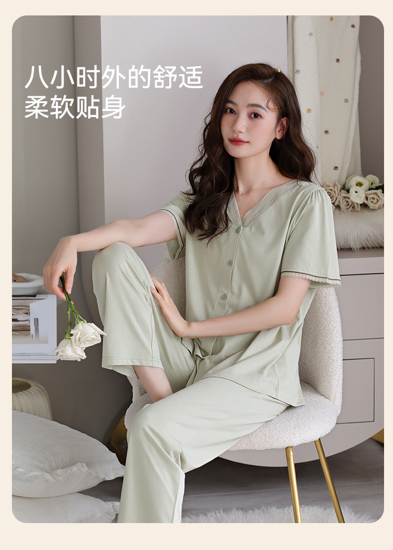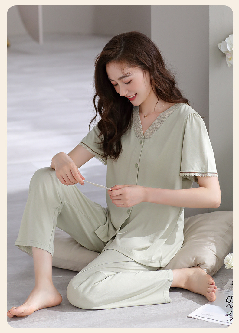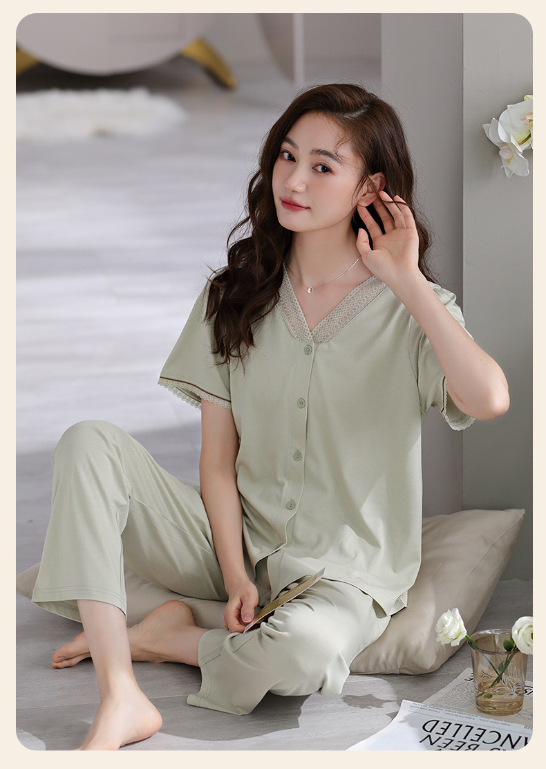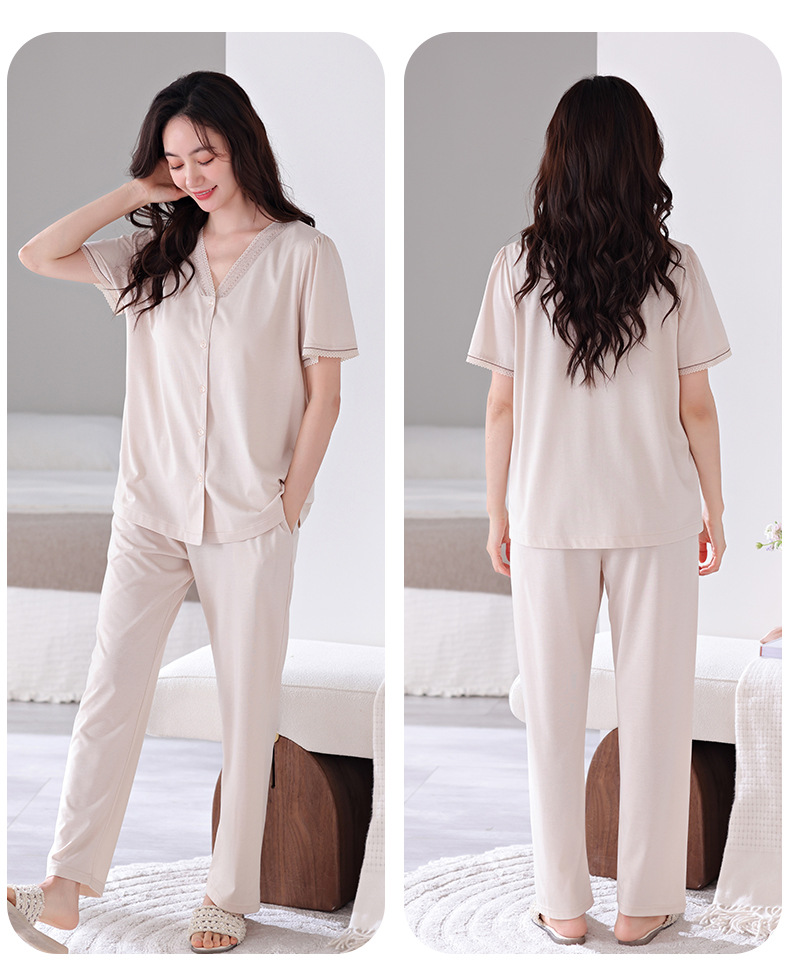 여성용 잠옷, 가슴 패드가 있는 여름 반팔 바지, 여성용 홈웨어, 여름 텐셀 면 실크 시원한 얇은 대형 세트스토어 가기