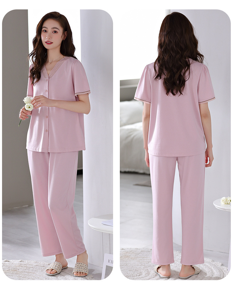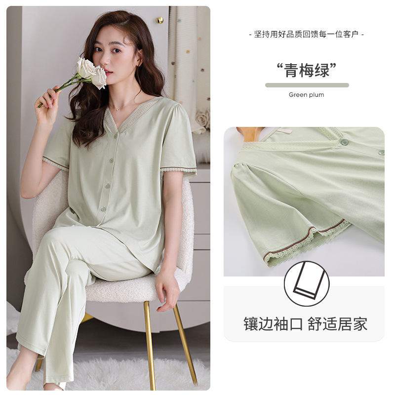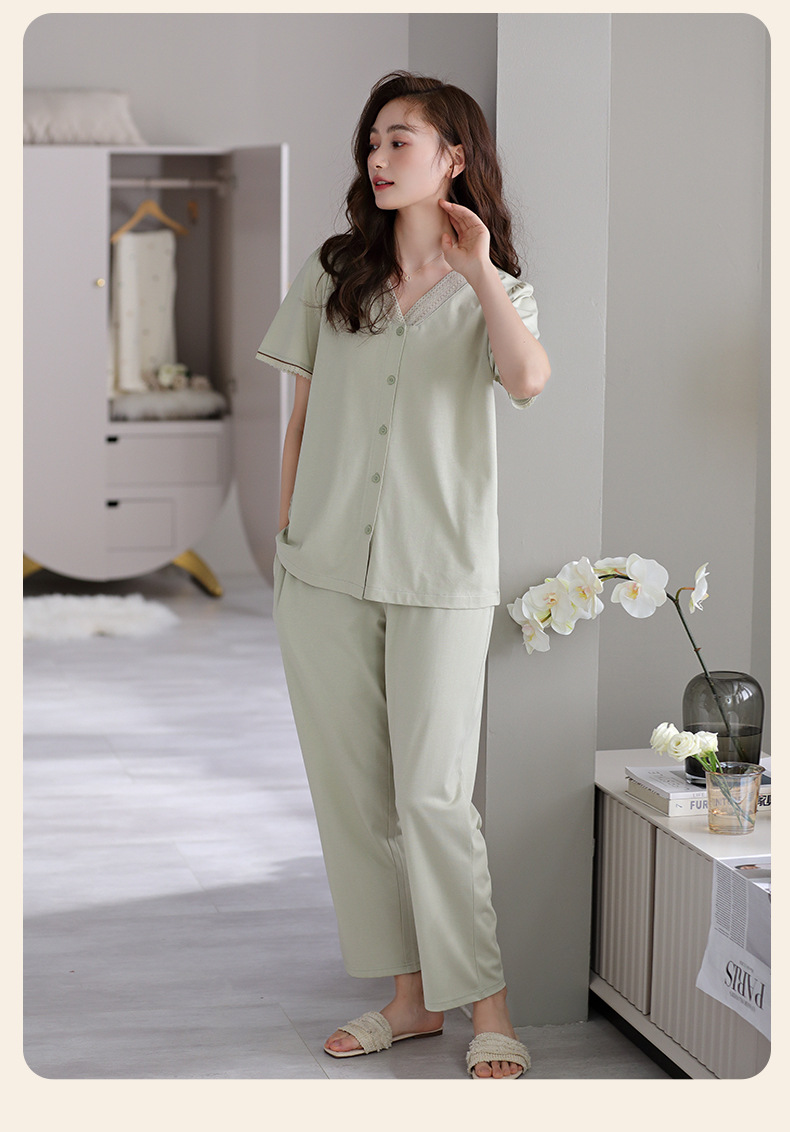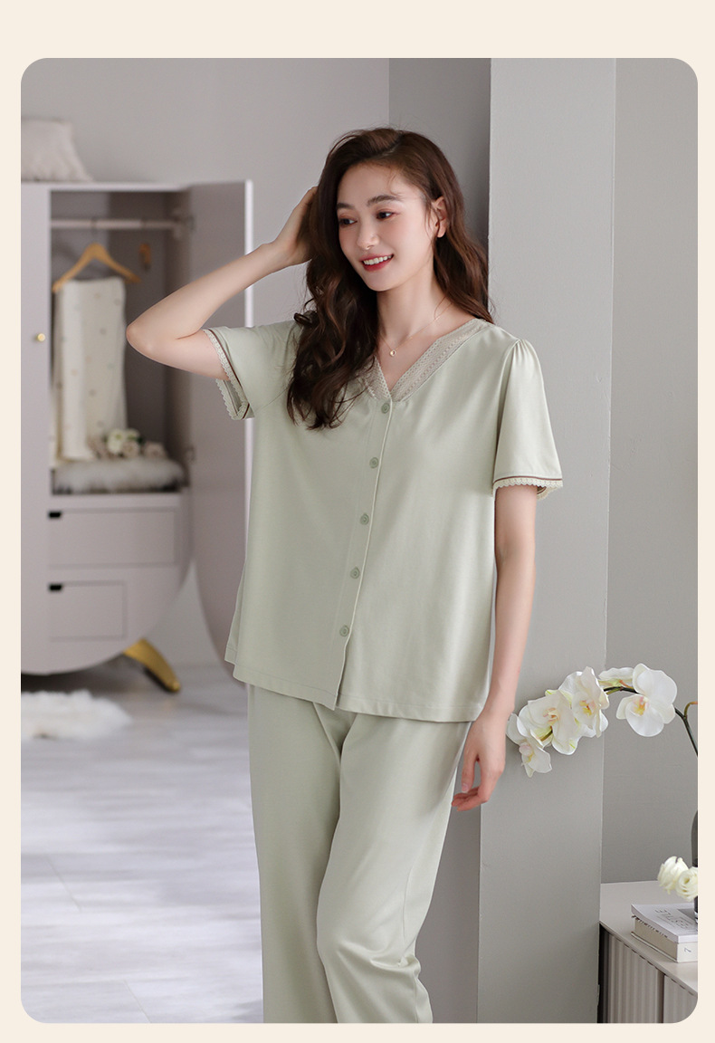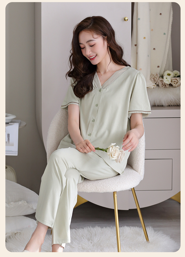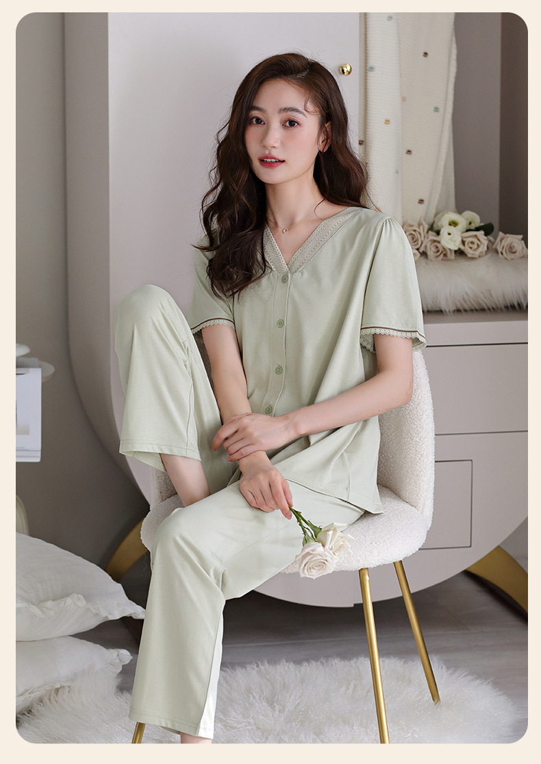 여성용 잠옷, 가슴 패드가 있는 여름 반팔 바지, 여성용 홈웨어, 여름 텐셀 면 실크 시원한 얇은 대형 세트스토어 가기