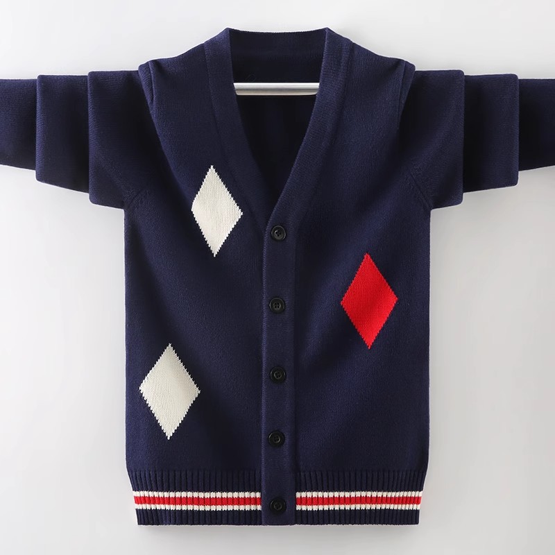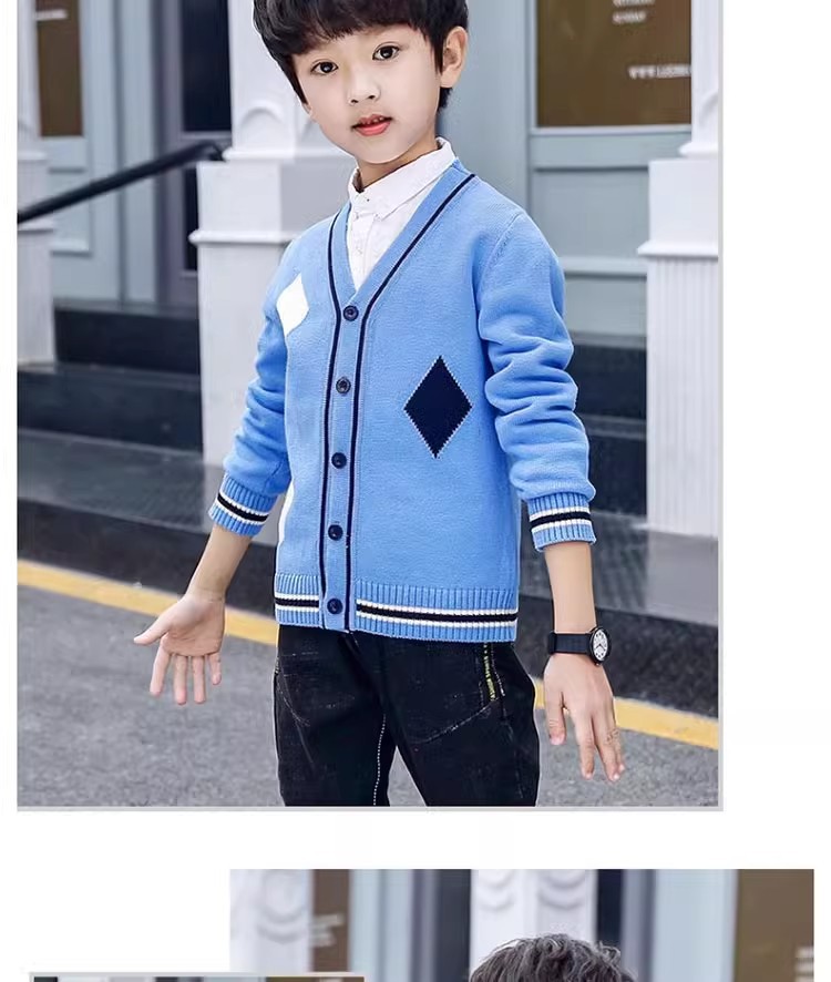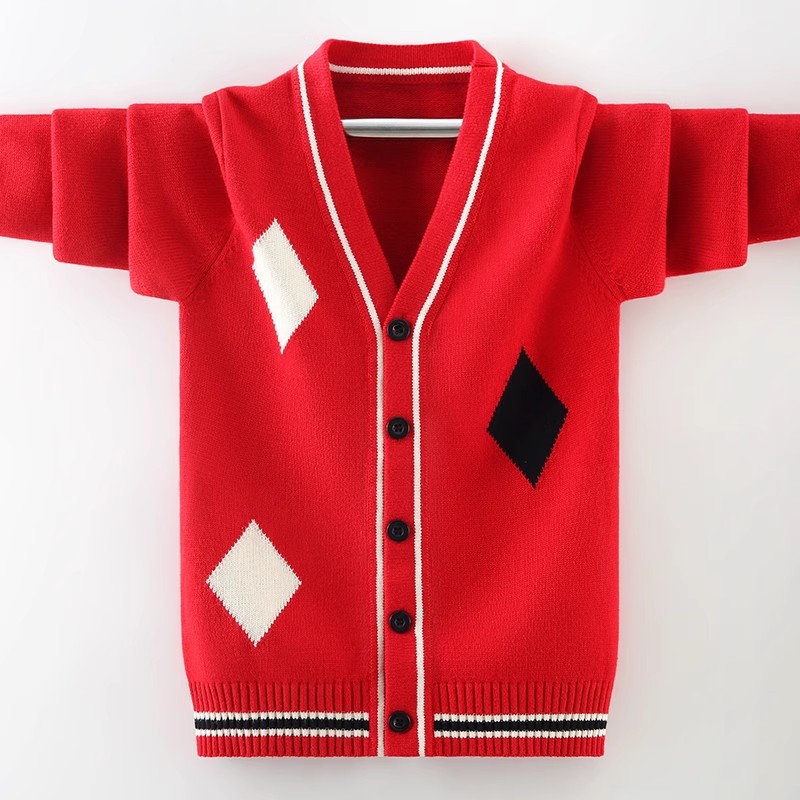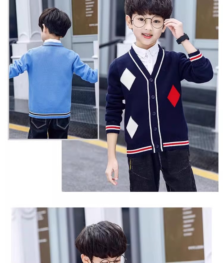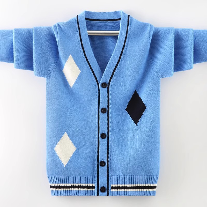 소년 스웨터 카디건 봄과 가을 소년 소녀를위한 새로운 순면 니트 코트 가을 서양식 탑스토어 가기